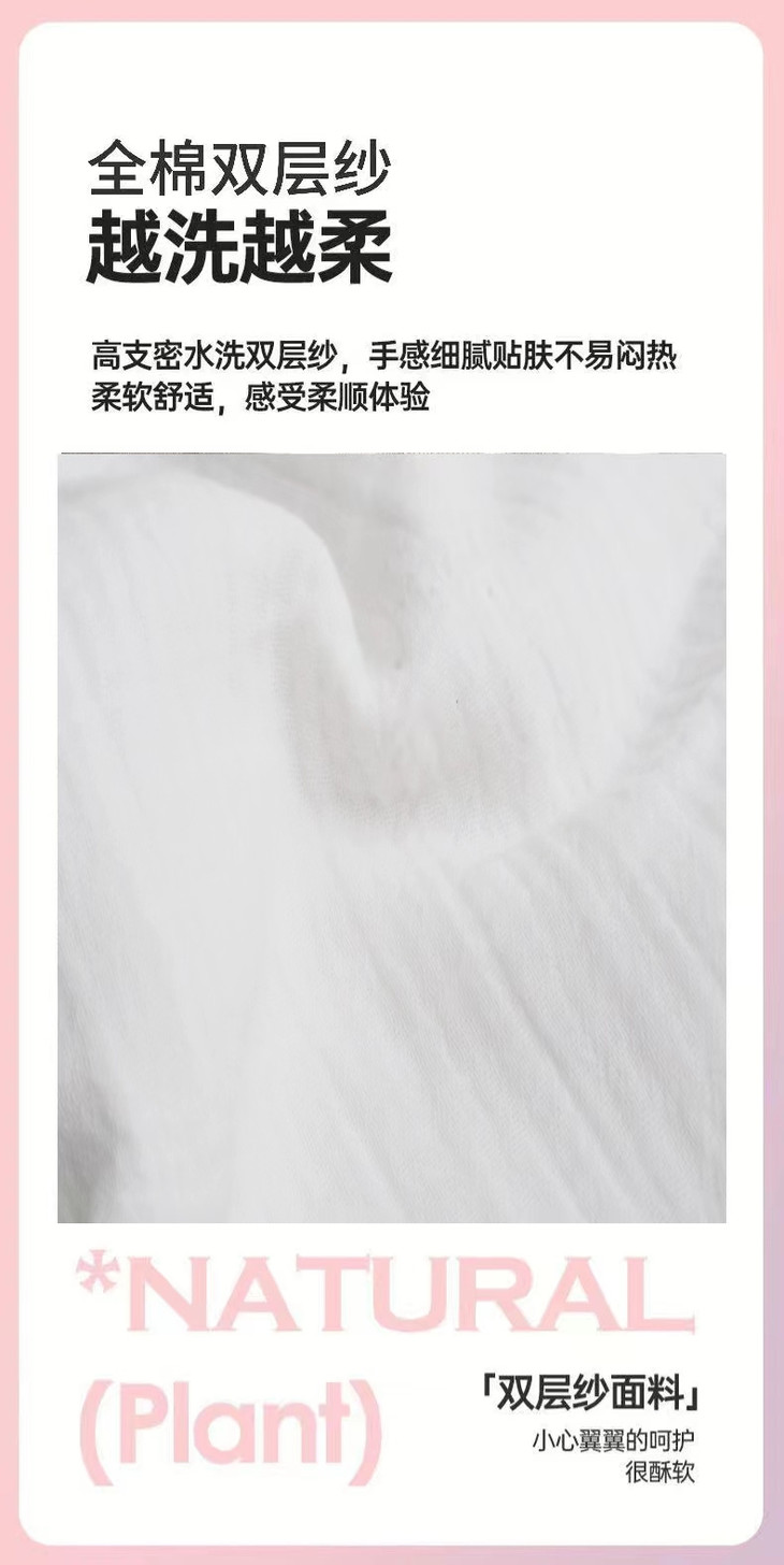 ✅【关于面料】 百分百全棉双层纱面料,轻柔、透气、舒适‼ 双层纱面料也被亲切的称作“宝宝棉”宝宝口水巾同款材质! 轻薄透气,柔软亲肤,越洗越软 健康、舒适!!是宝宝也能使用的轻柔面料