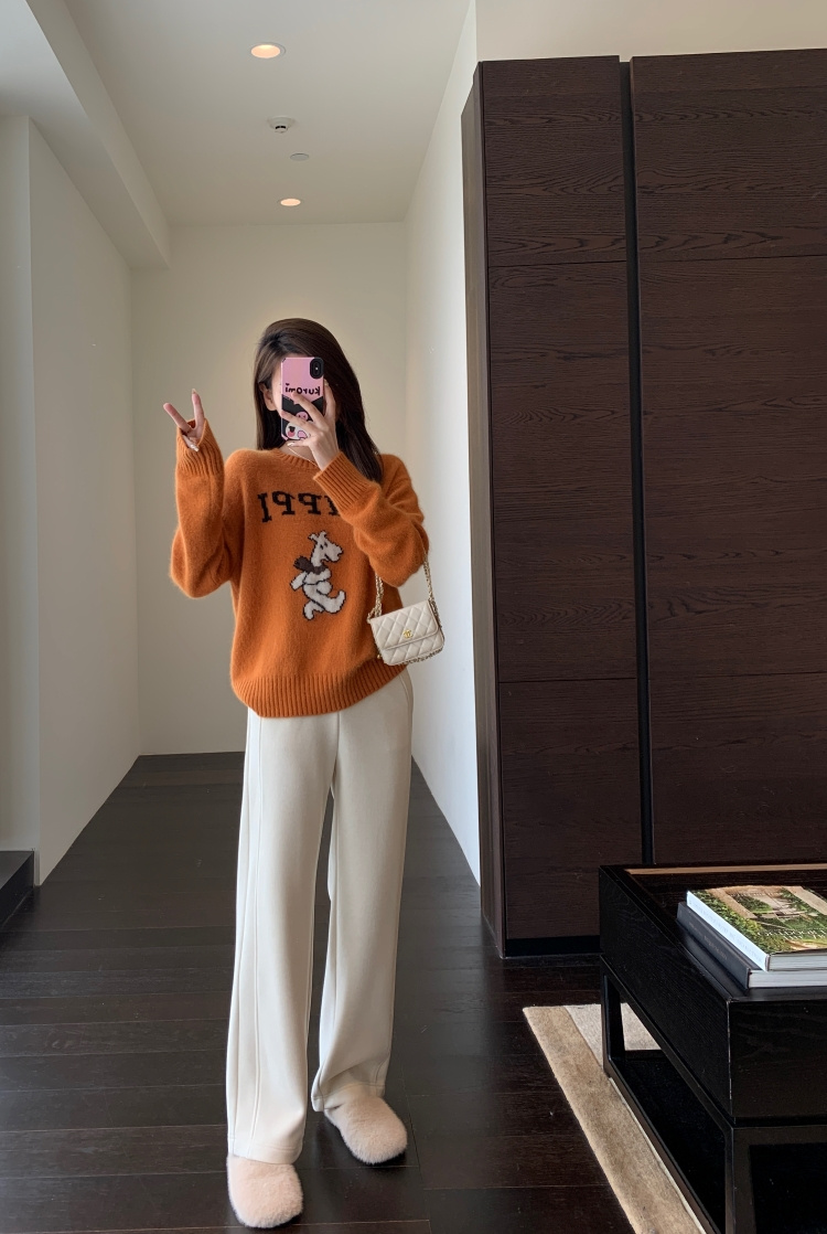 超显嫩❗️卫衣裤套装一套入👍【梅茵凯琳Meline Kaylin羚羊绒阔腿裤/印花连帽卫衣】⚠️柔软好穿,裤子一体绒设计‼️ ⚠️舒适感拉满,连帽设计慵懒防风,修饰腰身!