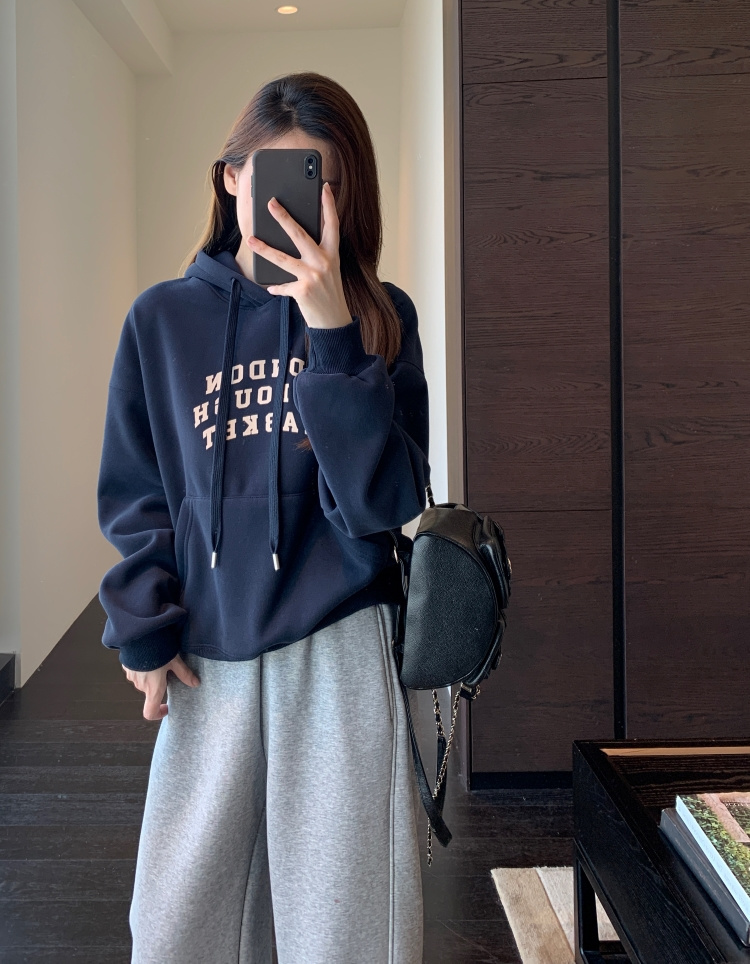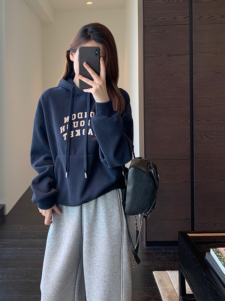 【品名】梅茵凯琳Meline Kaylin字母印花连帽卫衣