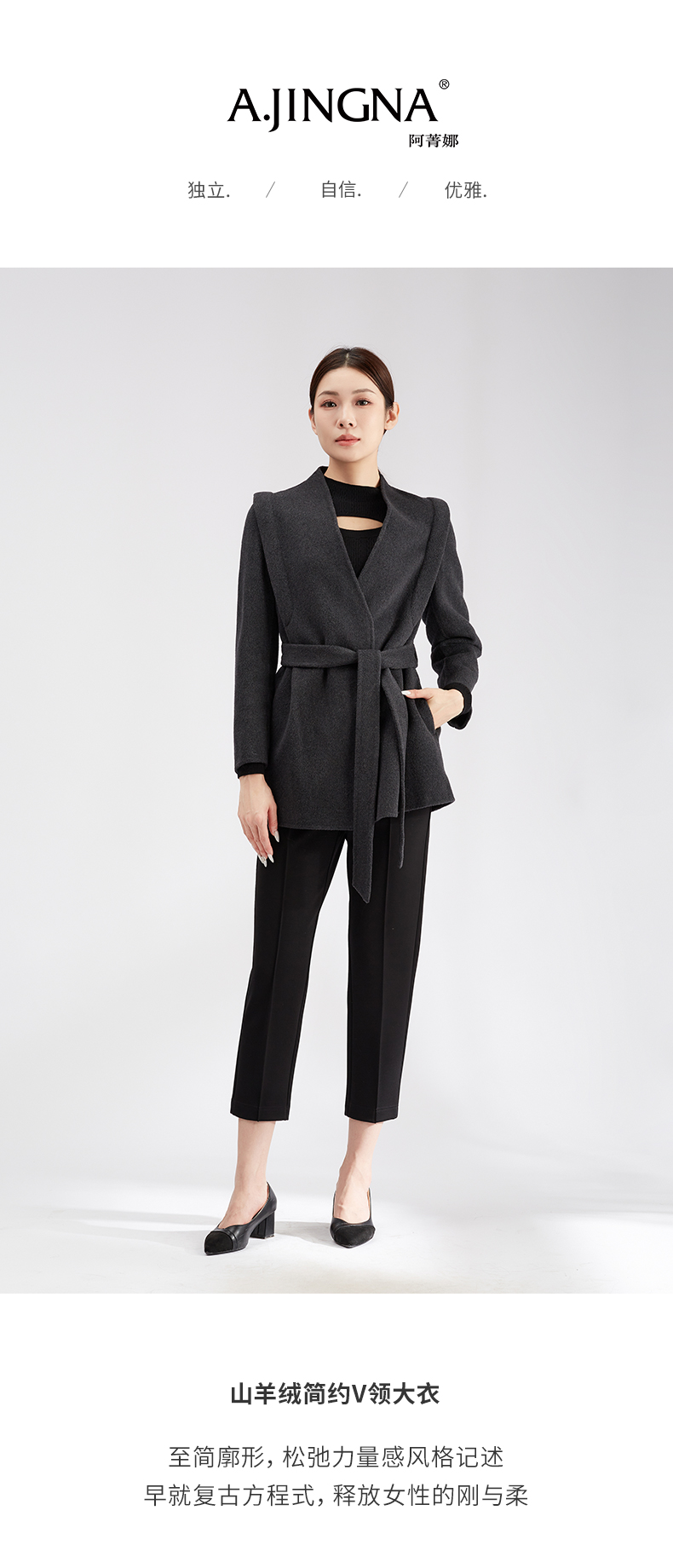 【商城同款】阿菁娜山羊绒简约V领大衣F30D211036