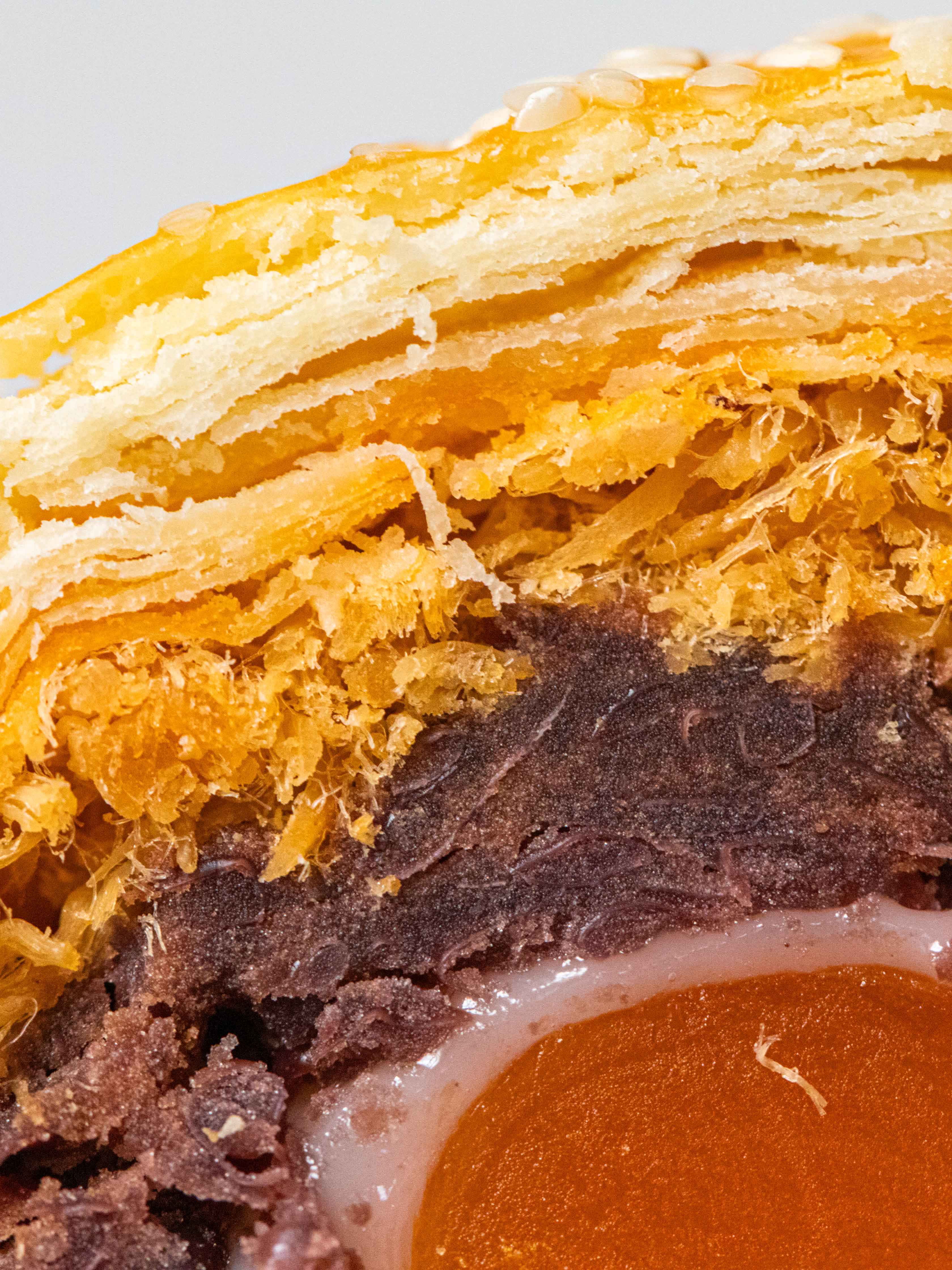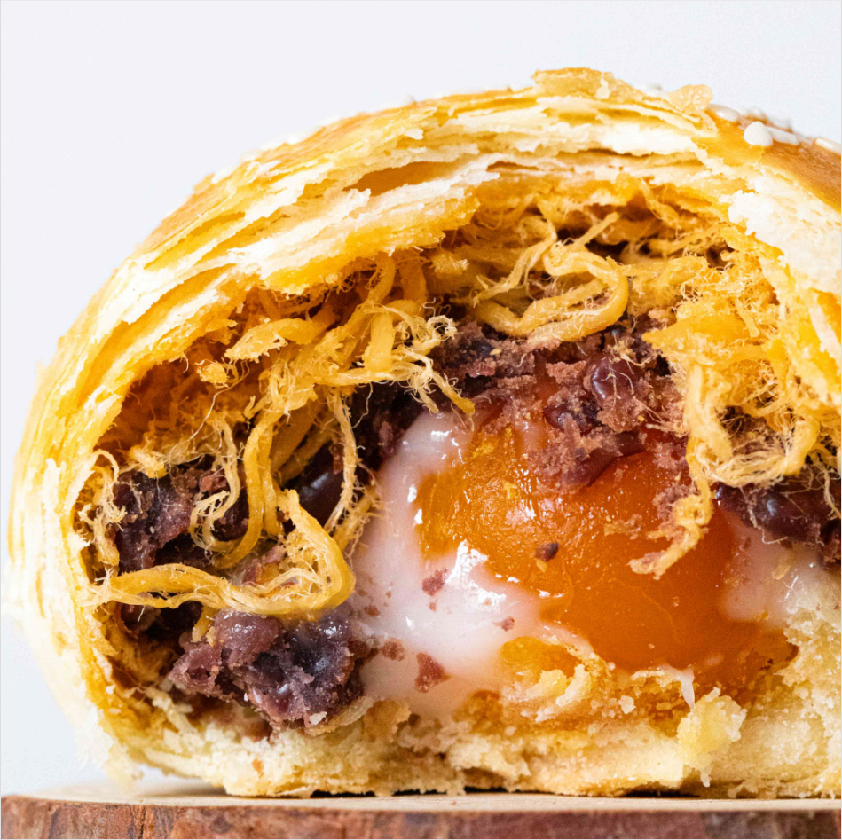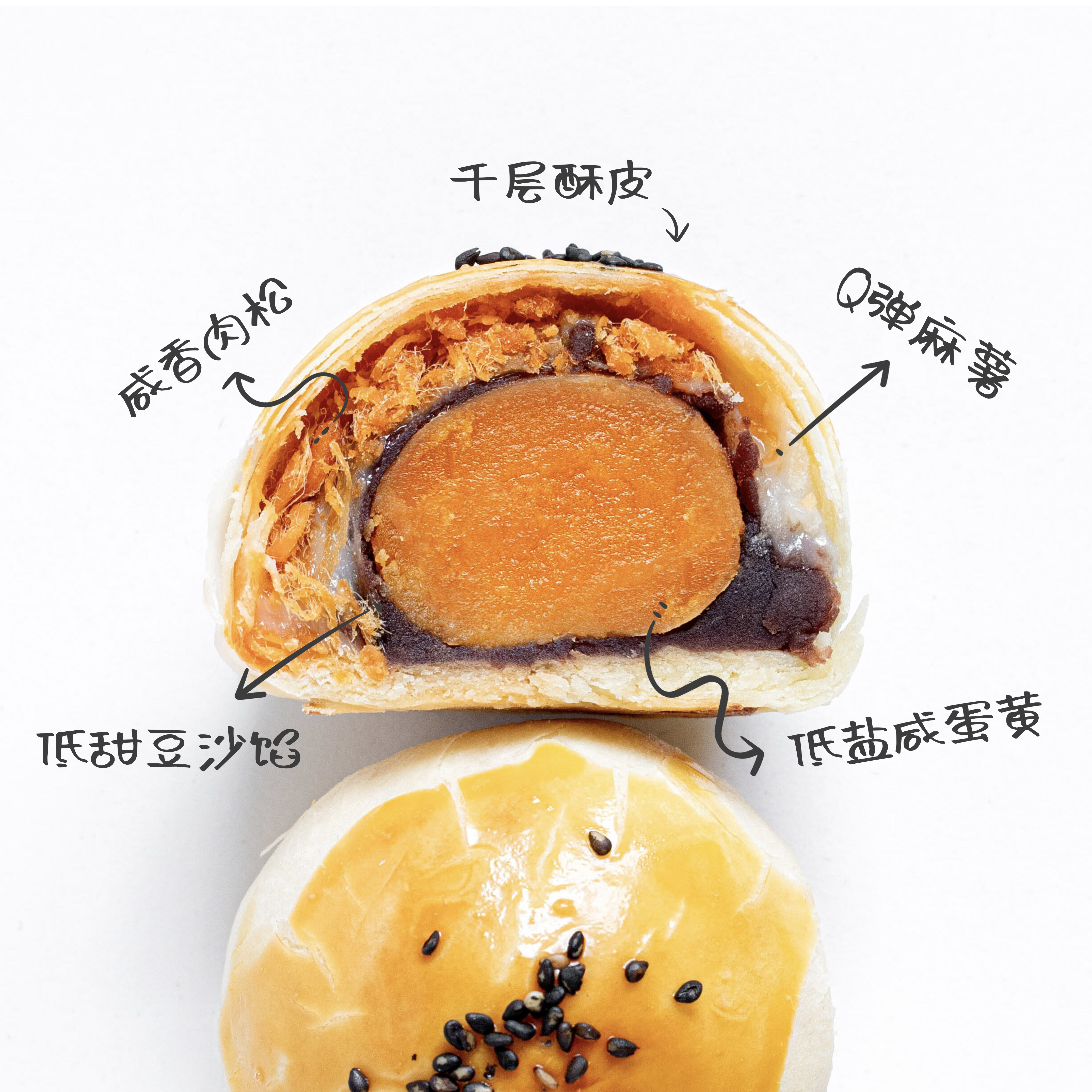 千层酥皮、鲜香肉松、绵密内馅、Q 弹麻薯、流心蛋黄… 一口下去,多重口感在舌尖爆炸,吃完一颗刚好满足,完全不腻😋