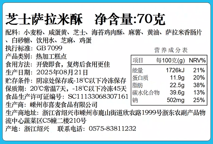保质期:20℃常温7天,-18℃以下冷冻45天