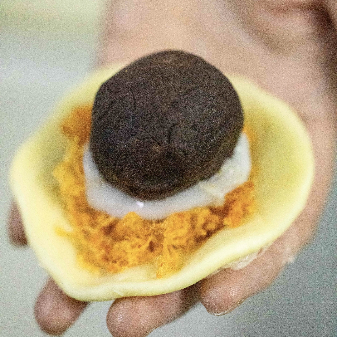 巧克力星人狂喜!🍫🍫微苦醇厚的可可酥皮包裹着丝滑巧克力内馅,搭配咸香肉松,甜中带咸,浓郁不腻,每一口都像在吃 “中式巧克力派”,层次超惊艳!✨