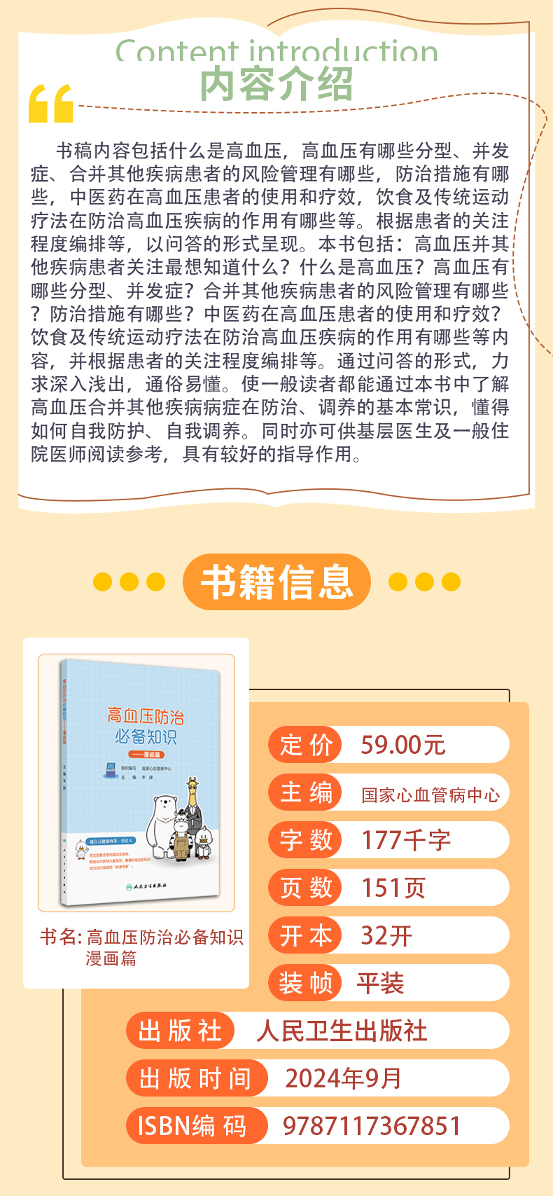 高血压防治必备知识 漫画篇 国家心血管病中心 血压及高血压的认识 高血压的危害 高血压的筛查及诊断9787117367851人民卫生出版社