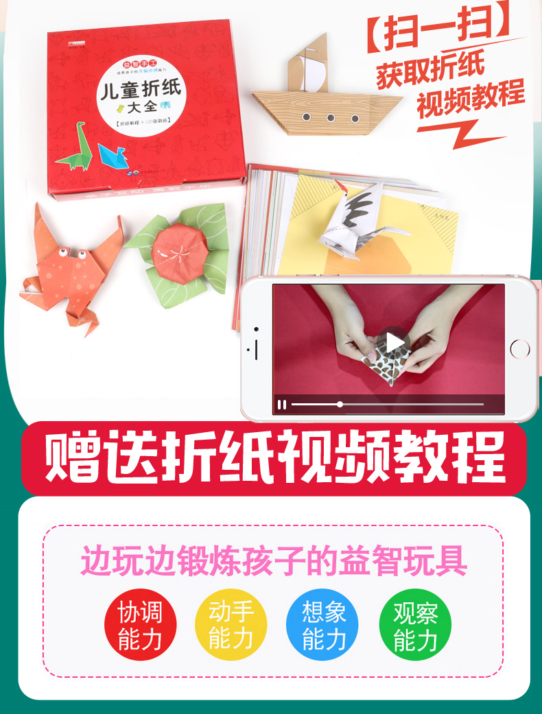 儿童折纸大全 幼儿趣味小手工3-4-5-6岁宝宝智力开发书书籍 幼儿园中班培养动手动脑益智能力手工艺折纸玩具制作书 思维游戏训练书