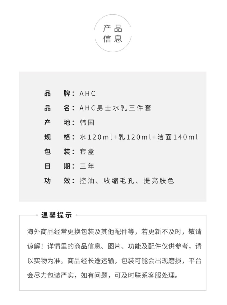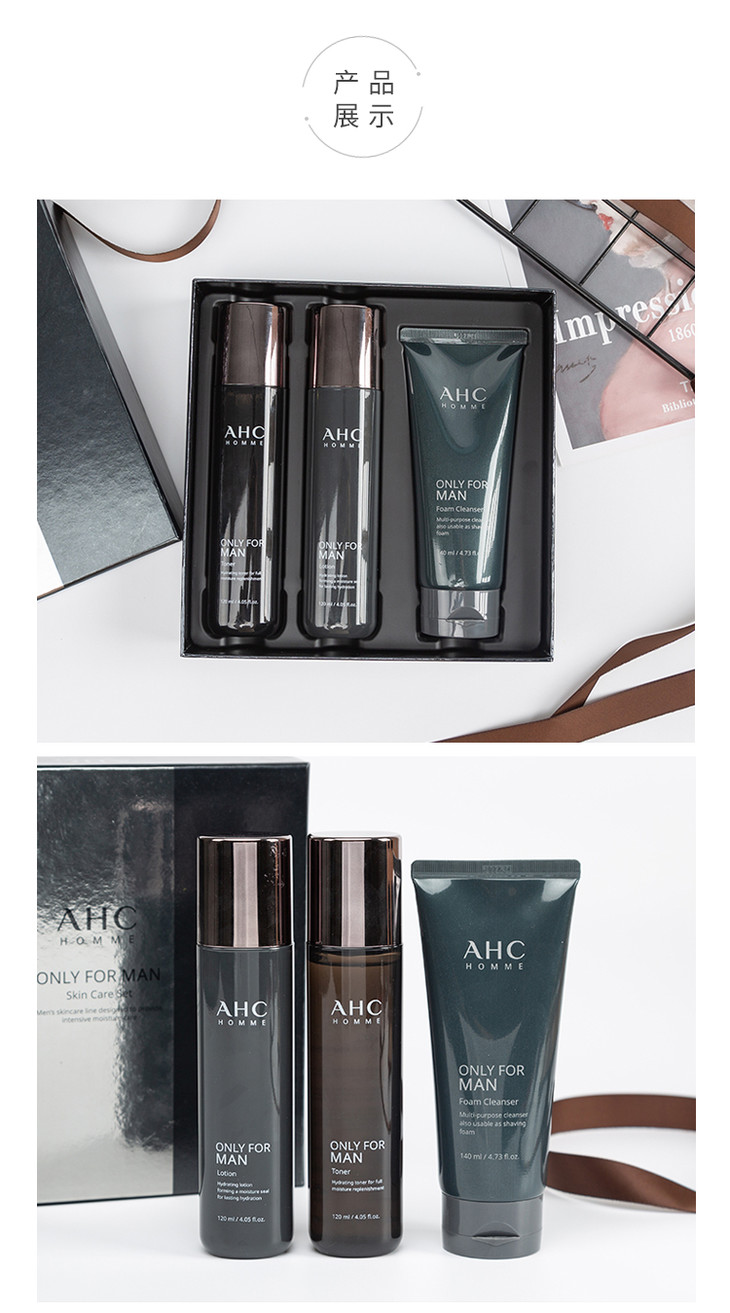 AHC/ahc 男士水乳三件套护肤水乳洗面奶套盒套装深层清洁控油