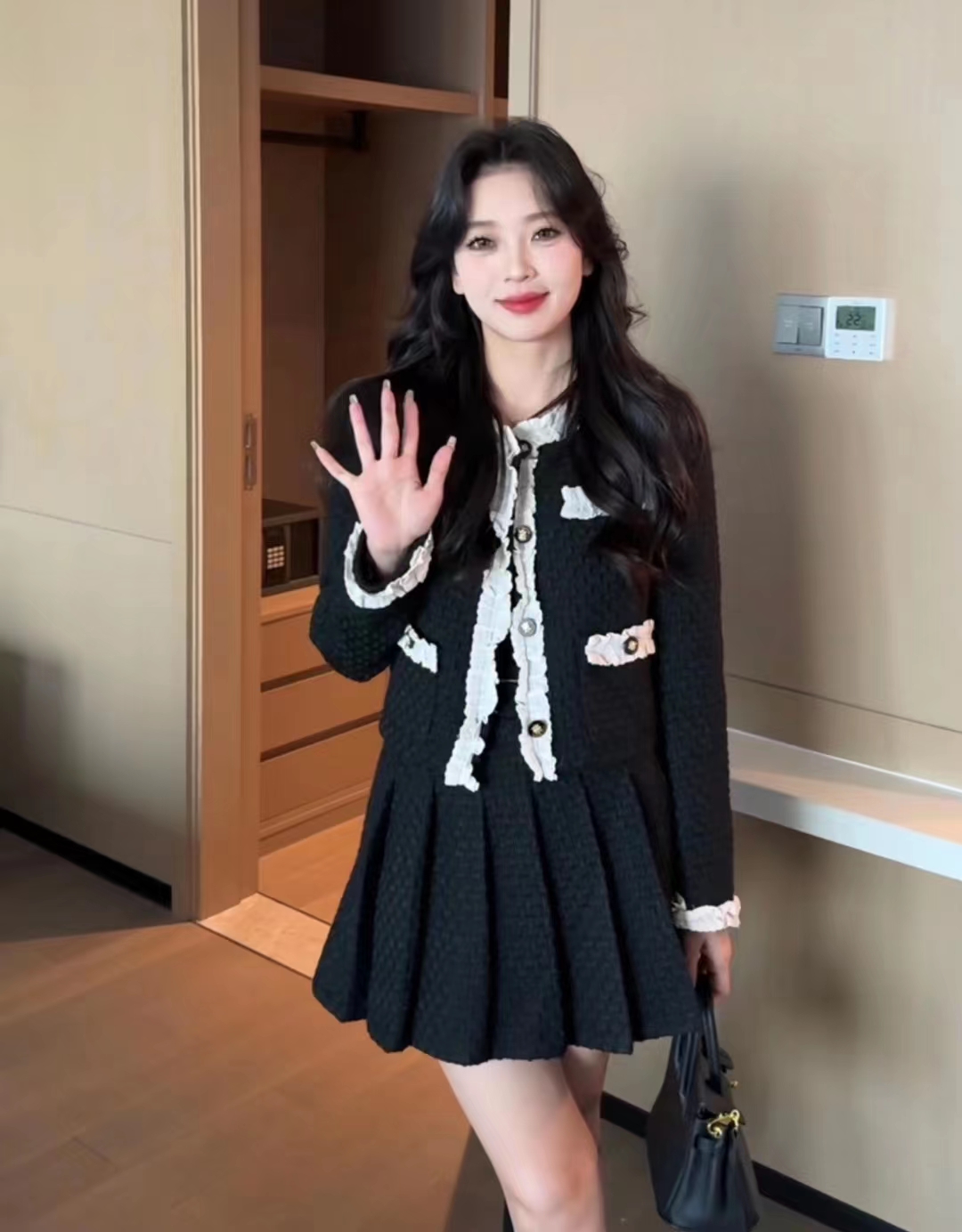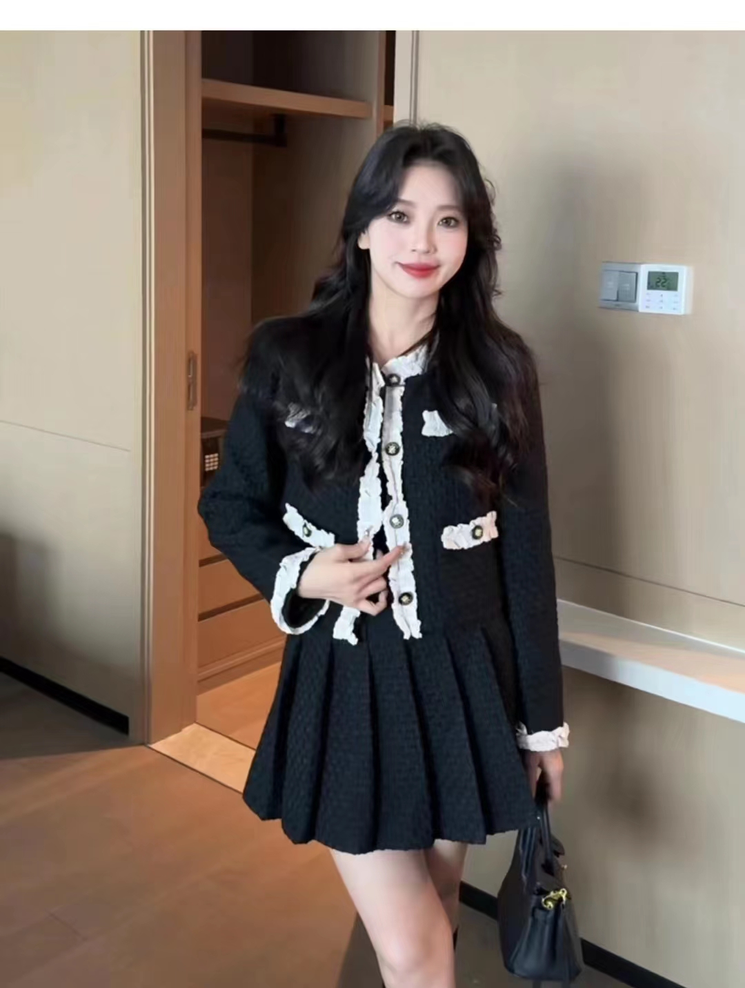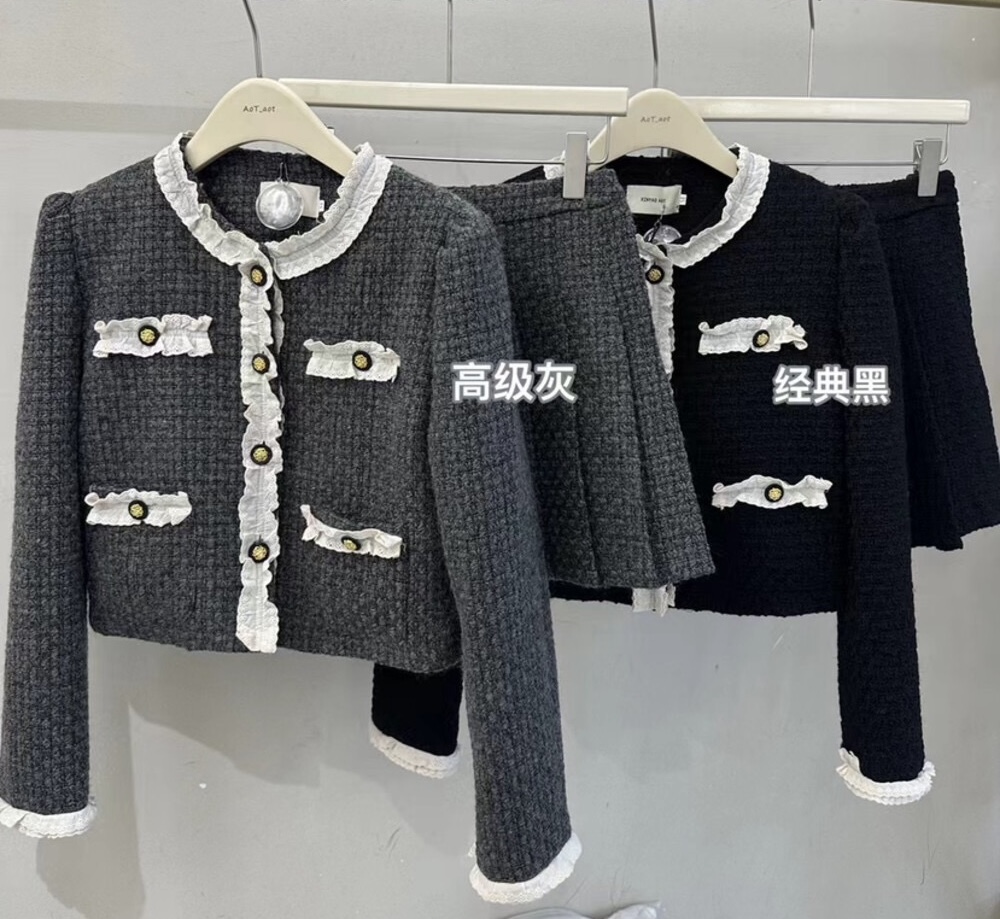 【YW】无忧购法式小香风拼接花边羽绒外套(含90%白鸭绒)+半身裙套装5767(截单后7天发货)25年清仓捡漏