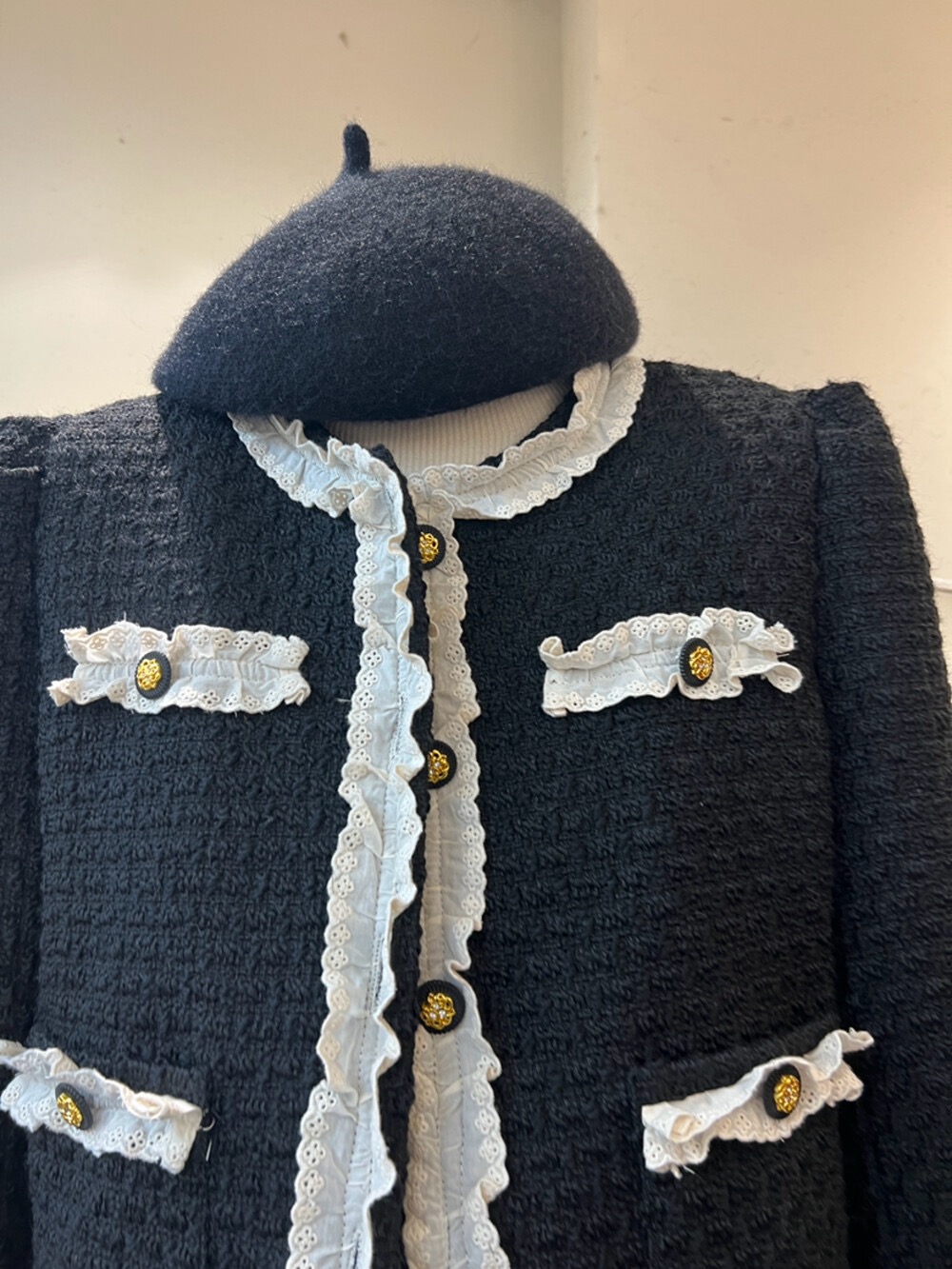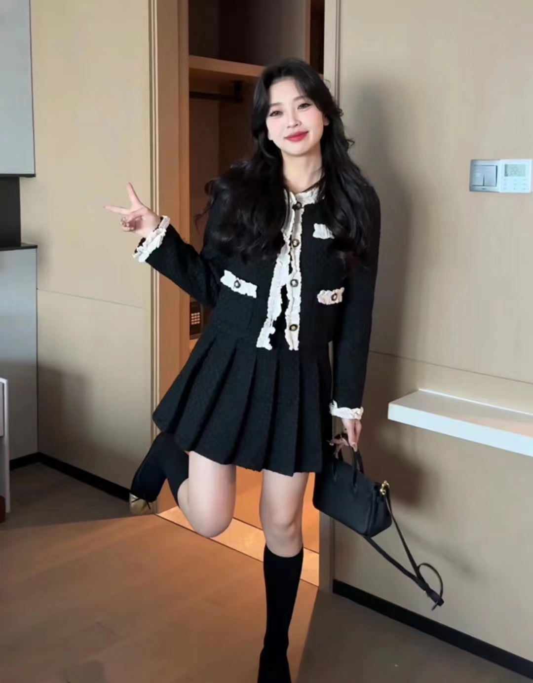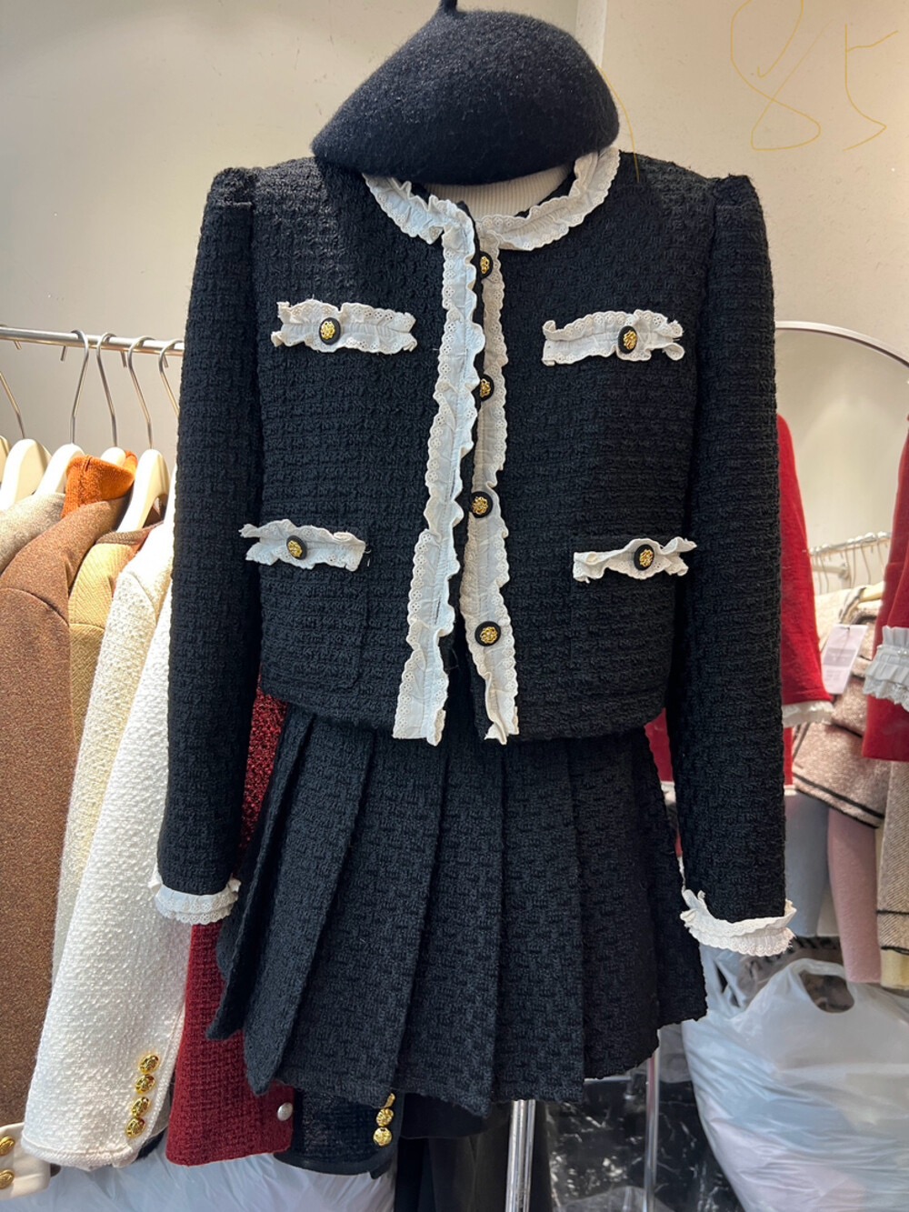 【YW】无忧购法式小香风拼接花边羽绒外套(含90%白鸭绒)+半身裙套装5767(截单后7天发货)25年清仓捡漏