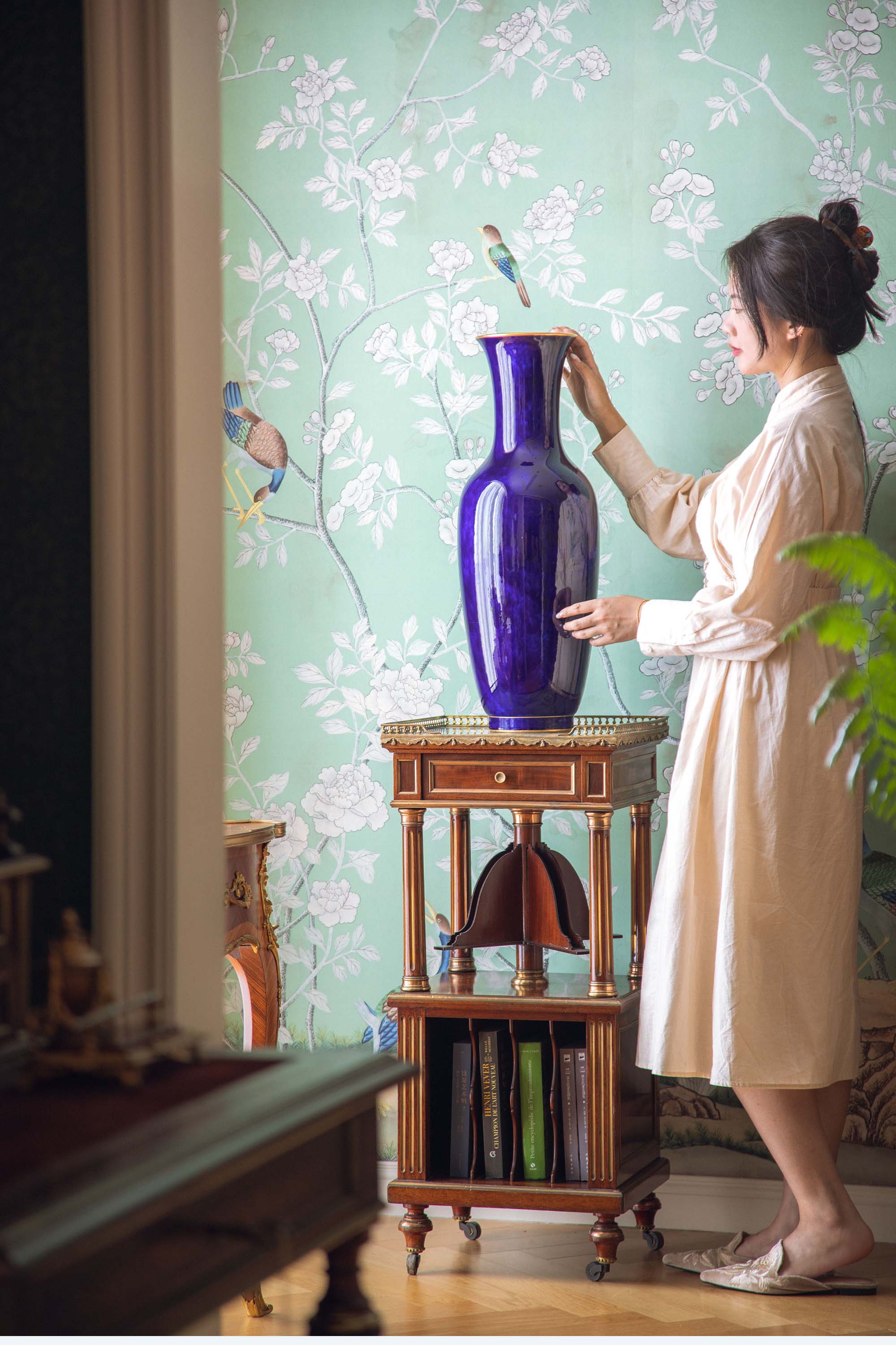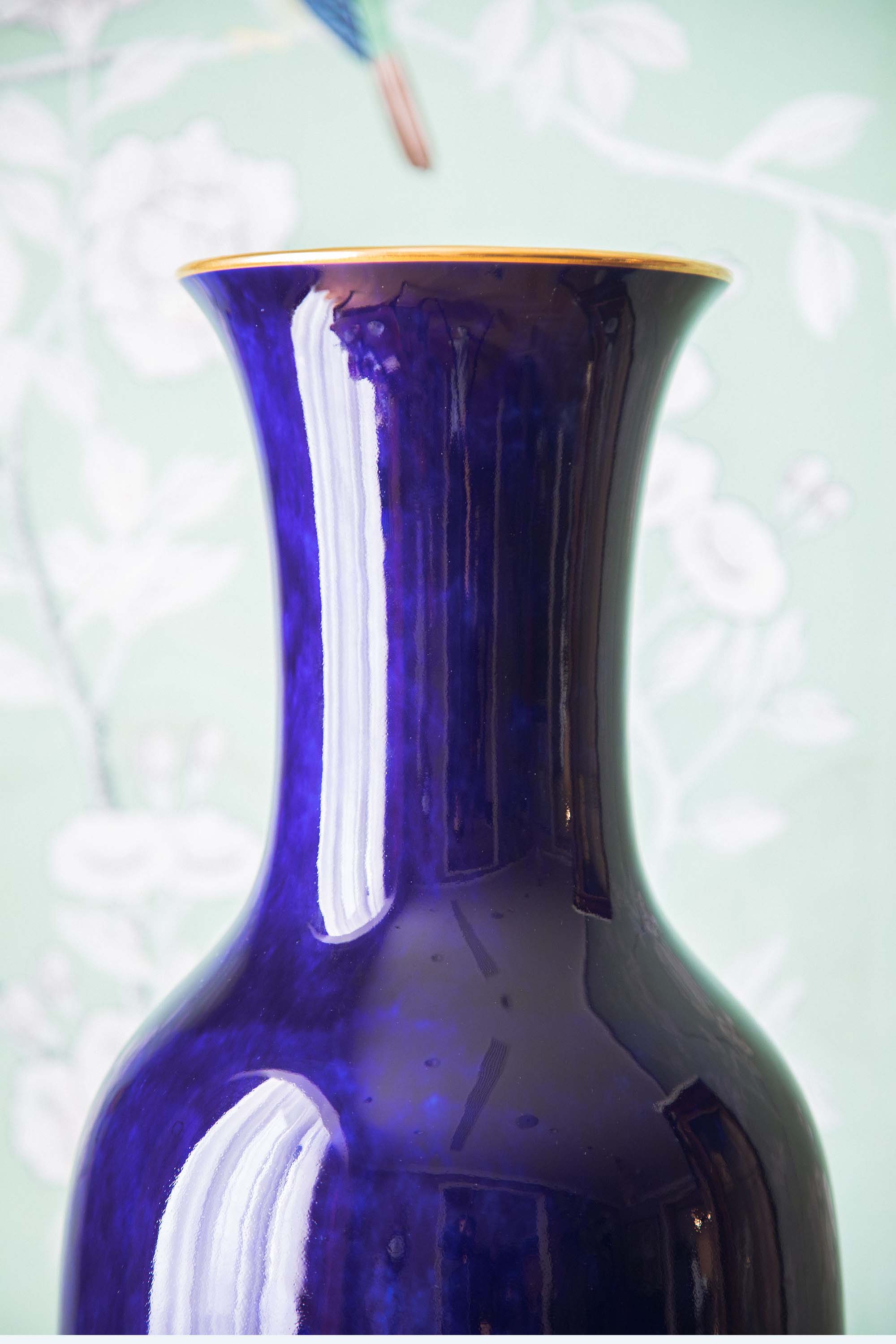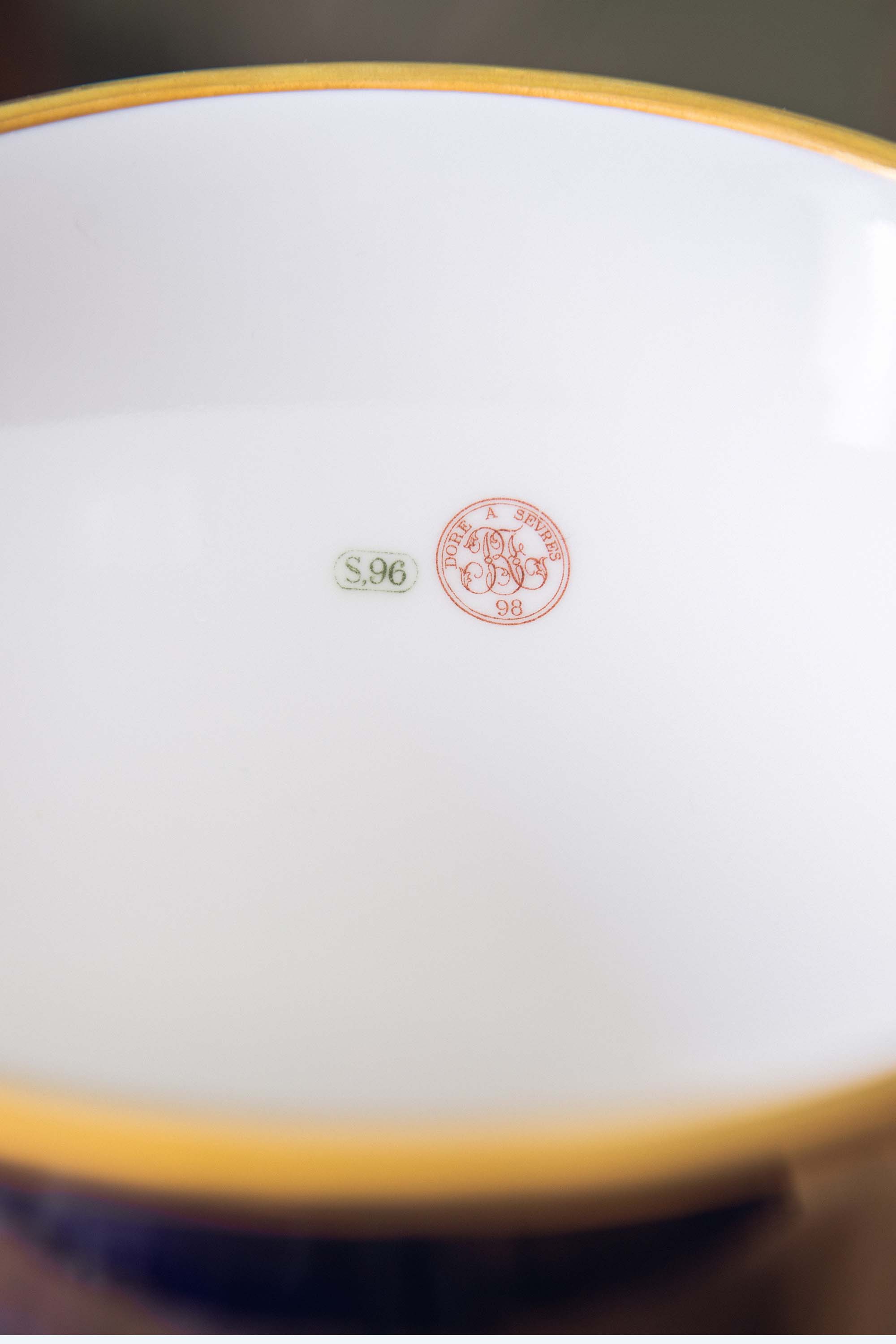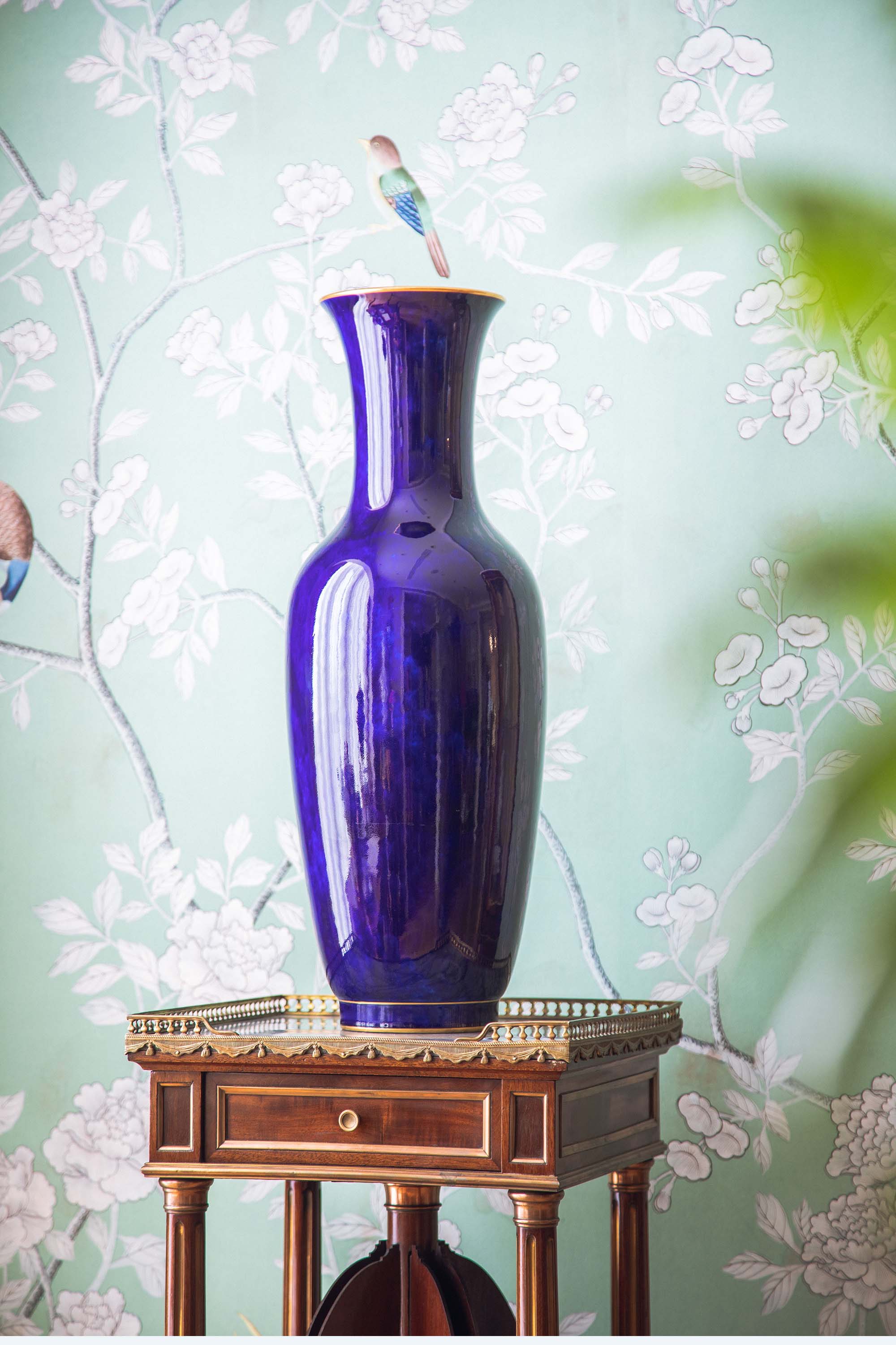 1896-1898年法国御窑塞弗尔出品手绘描金装饰云朵蓝釉瓷花瓶