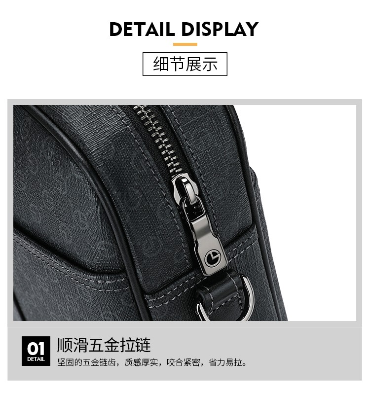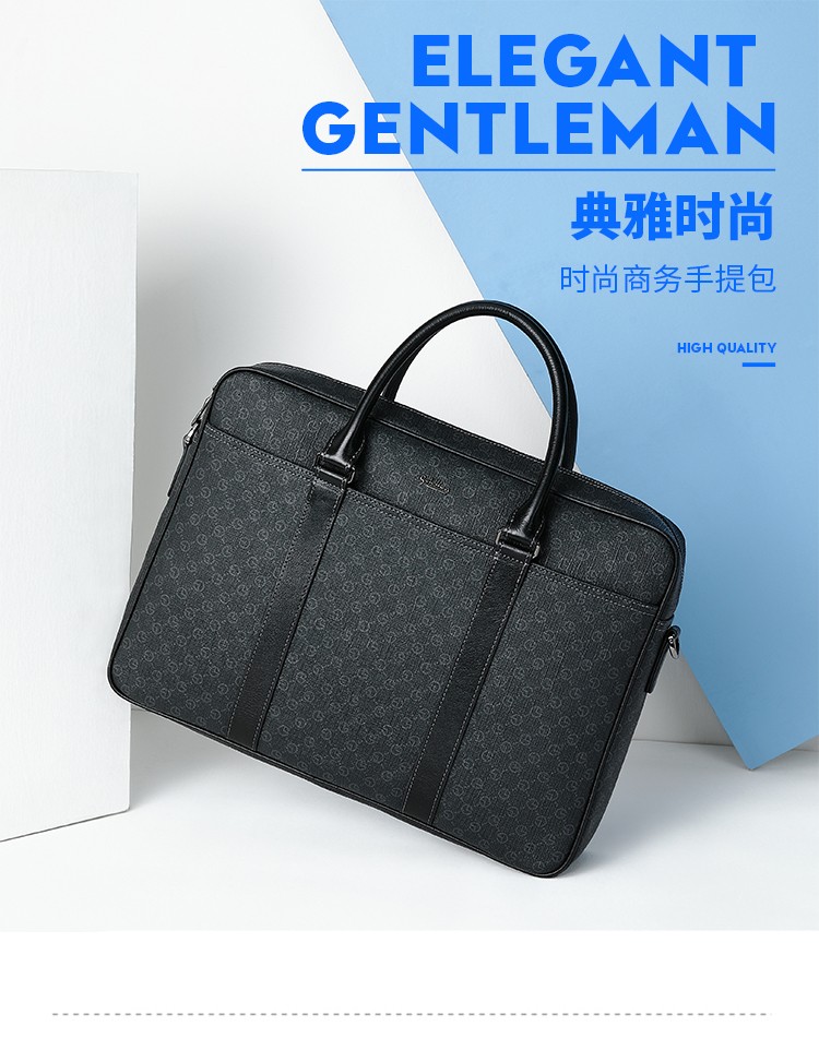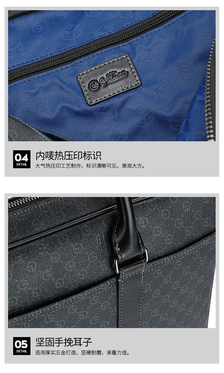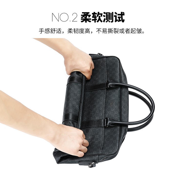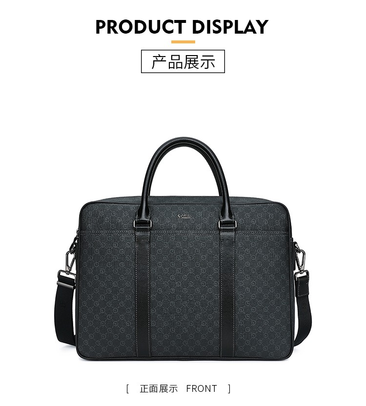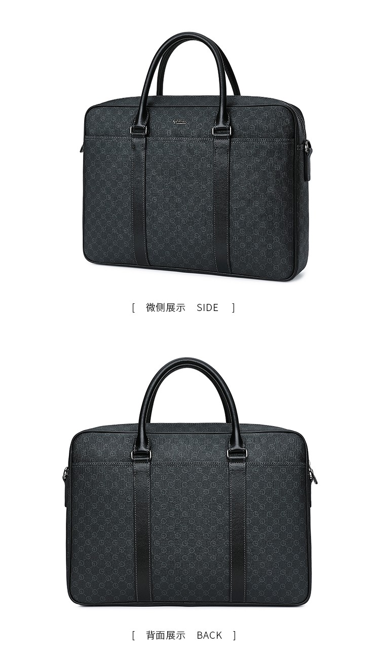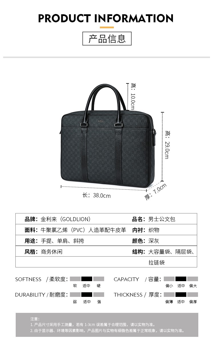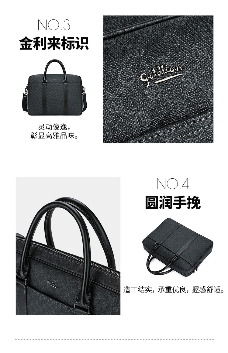 金利来(Goldlion)男士公文包 休闲商务单肩包大容量电脑包横款PVC手提包公文包 FC192005-265 深灰 礼物送男友