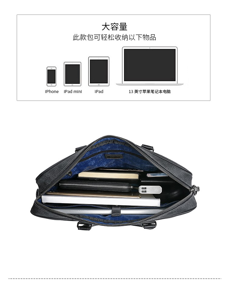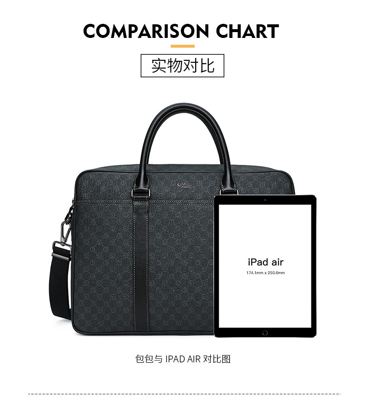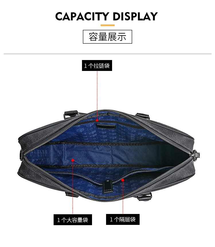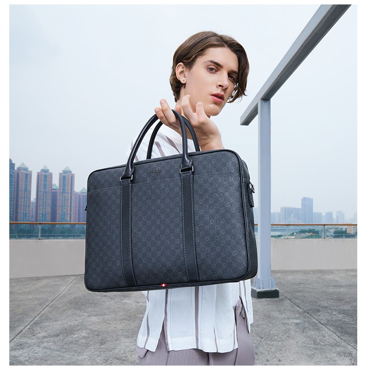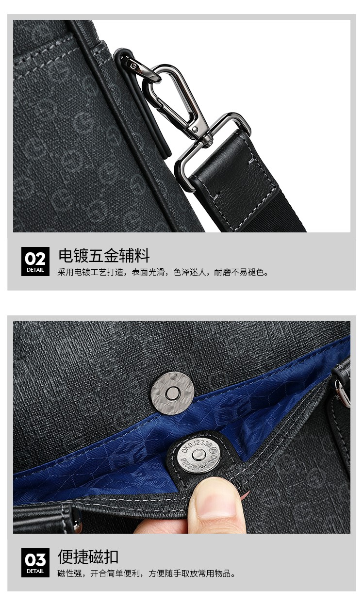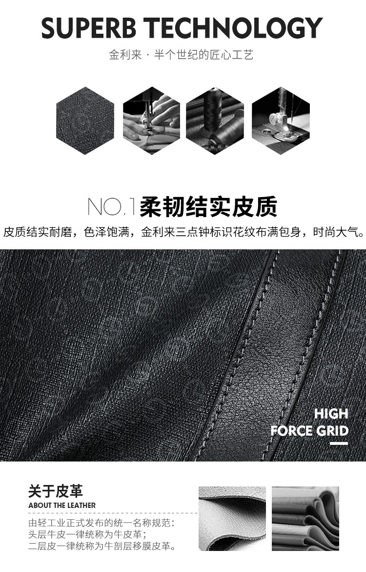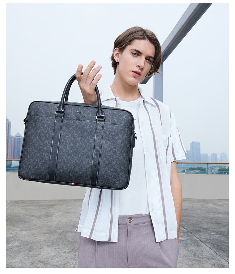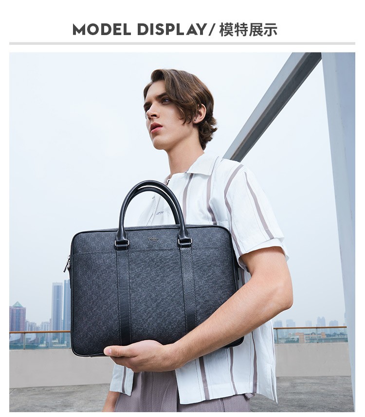 金利来(Goldlion)男士公文包 休闲商务单肩包大容量电脑包横款PVC手提包公文包 FC192005-265 深灰 礼物送男友