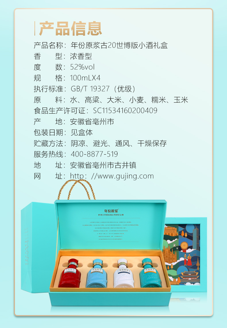 古井贡酒年份原浆世博小酒礼盒(内含4瓶100ml小酒)