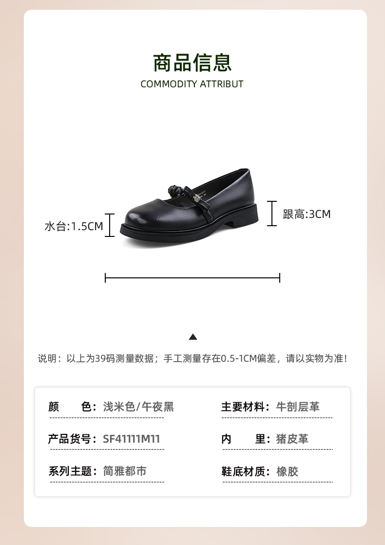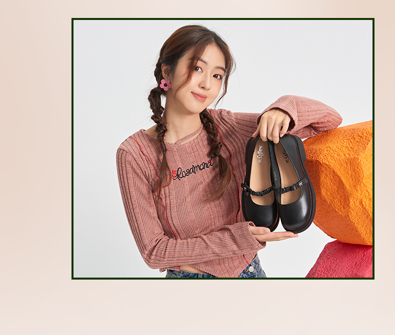 Safiya/索菲娅2024春季学院风娃娃头一字带百搭浅口玛丽珍单鞋 SF41111411