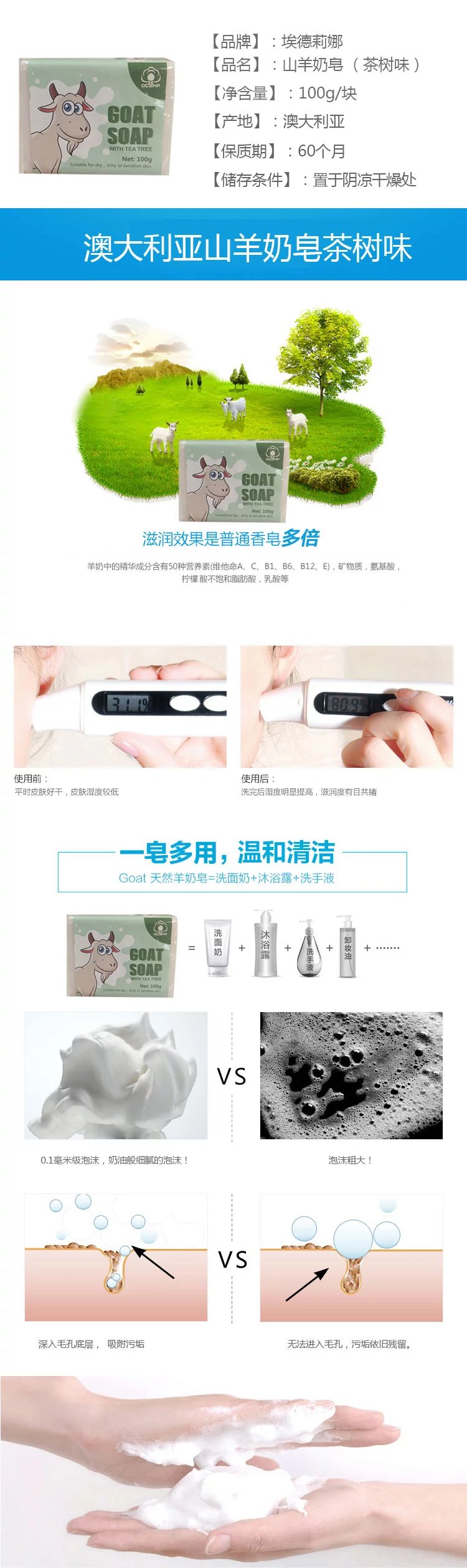 澳大利亚进口 埃德莉娜 洁面滋养控油补水手工羊奶皂 (茶树味)100g/块