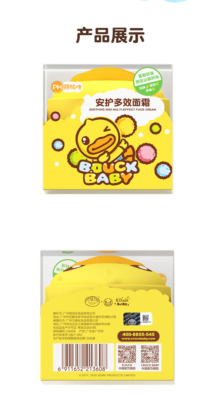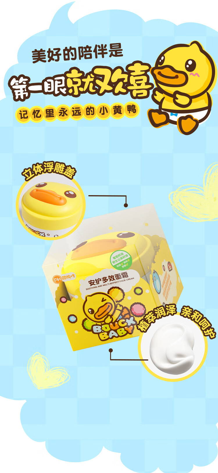 【25年10月】B.Duck Baby小黄鸭儿童面霜倍护滋润面霜婴幼儿保湿润肤霜儿童干燥起皮补水面霜 安护多效面霜50g