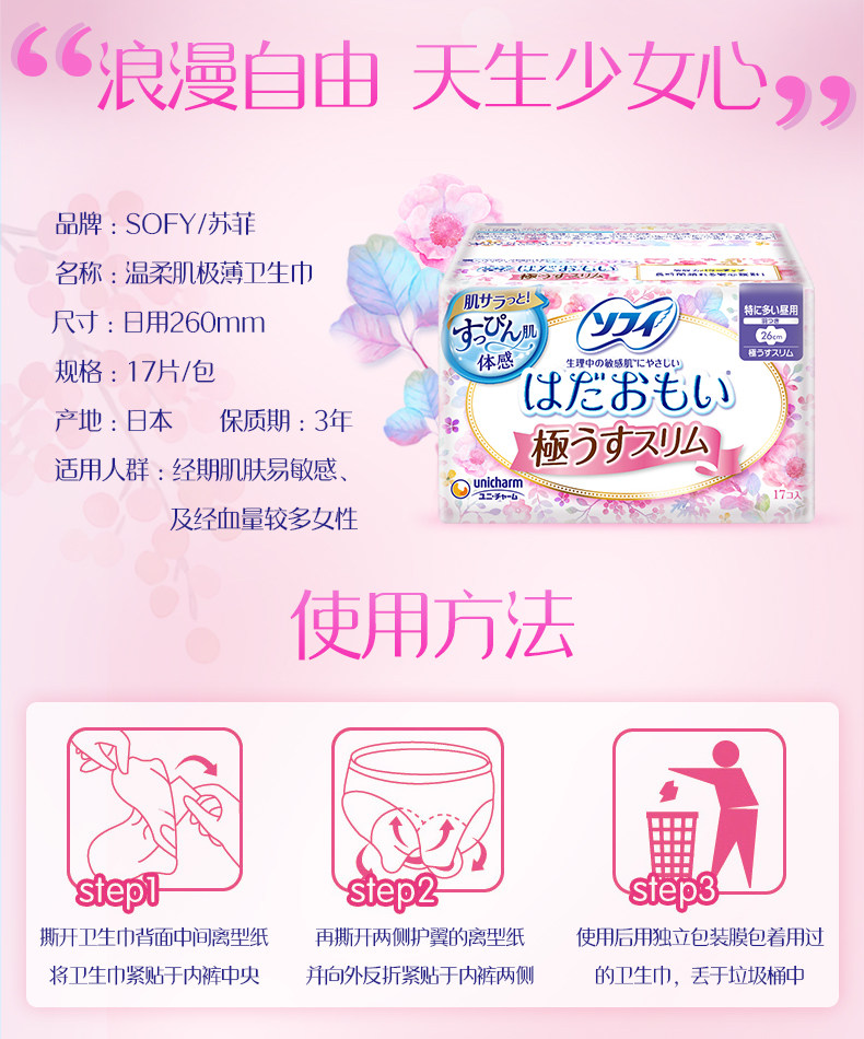苏菲温柔肌极薄26cm日用卫生巾 17片