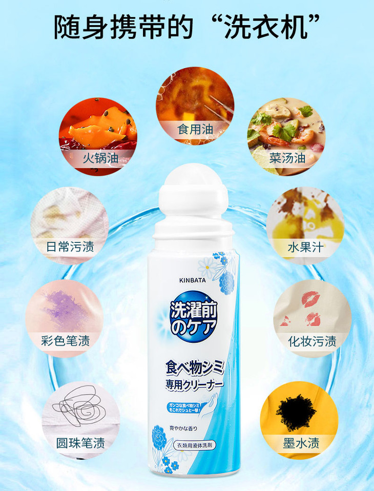 买1送1【即时去油神器】KINBATA衣物去油净 油渍干洗剂 去油王 快速去油 易清洗 温和无刺激 不伤衣物 滚珠涂抹 便携去污 100ml/瓶