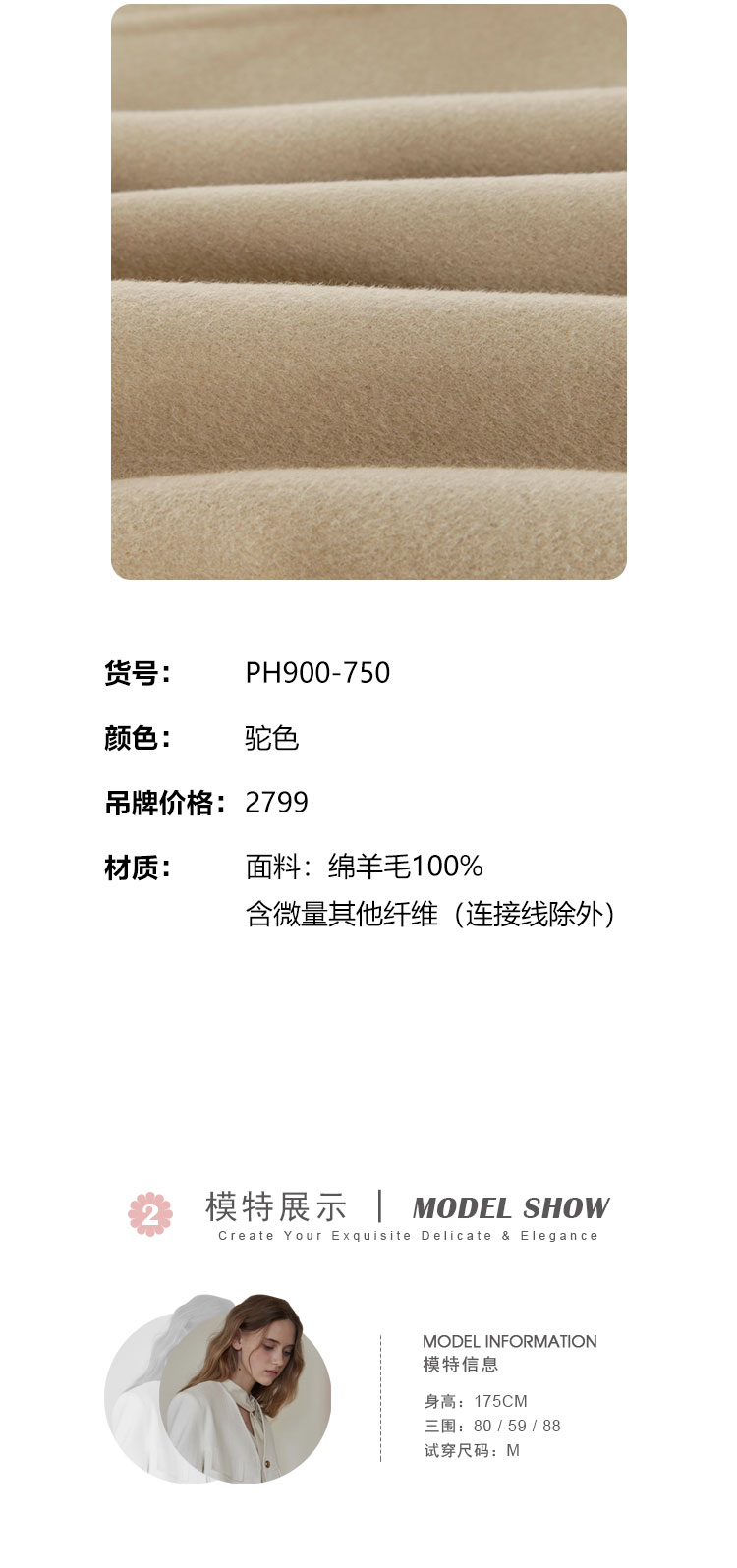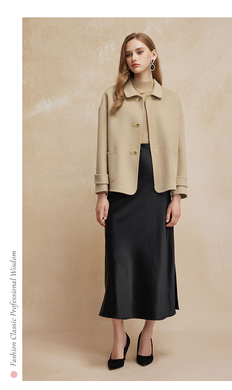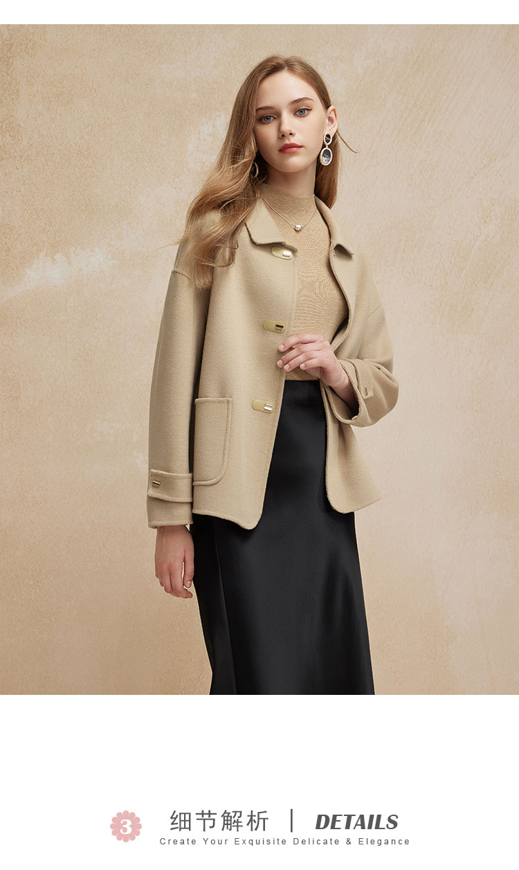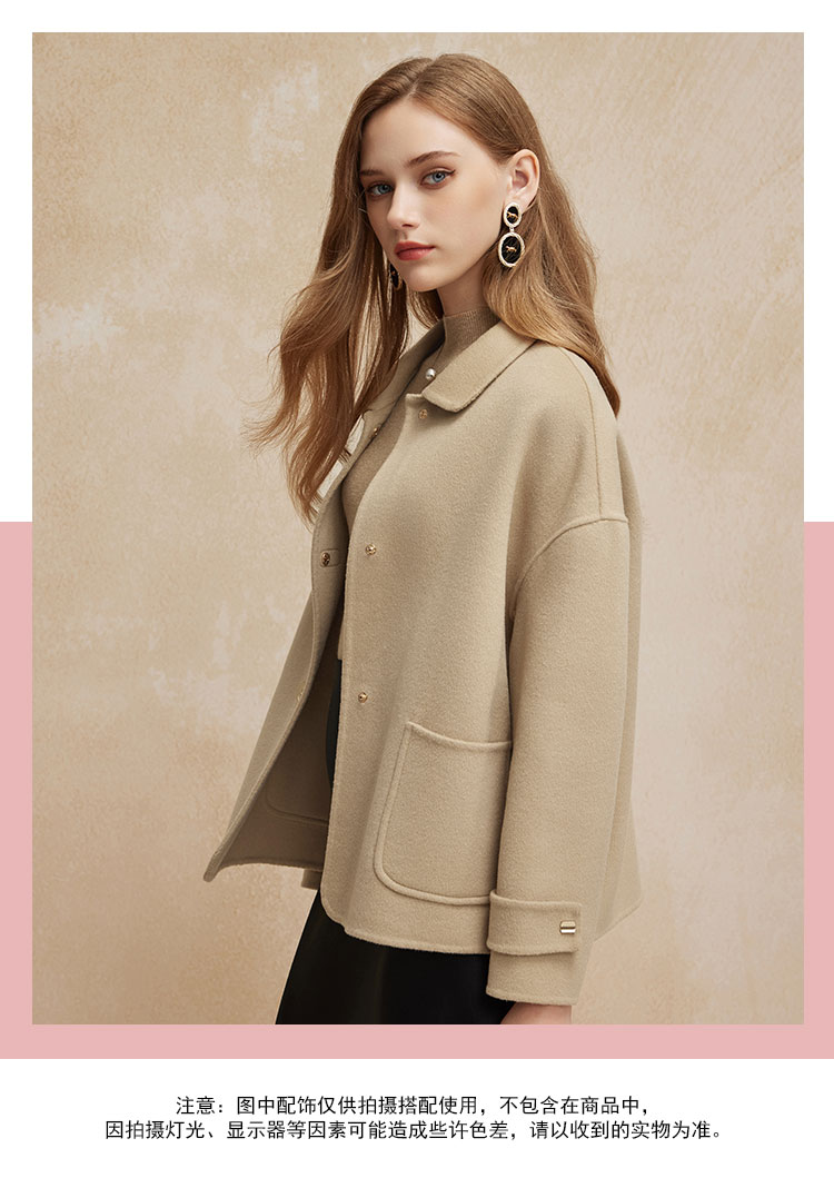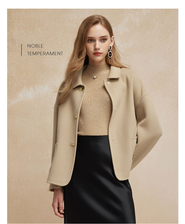 PH90024新款双面呢小翻领短款小个子气质减龄女式羊毛大衣