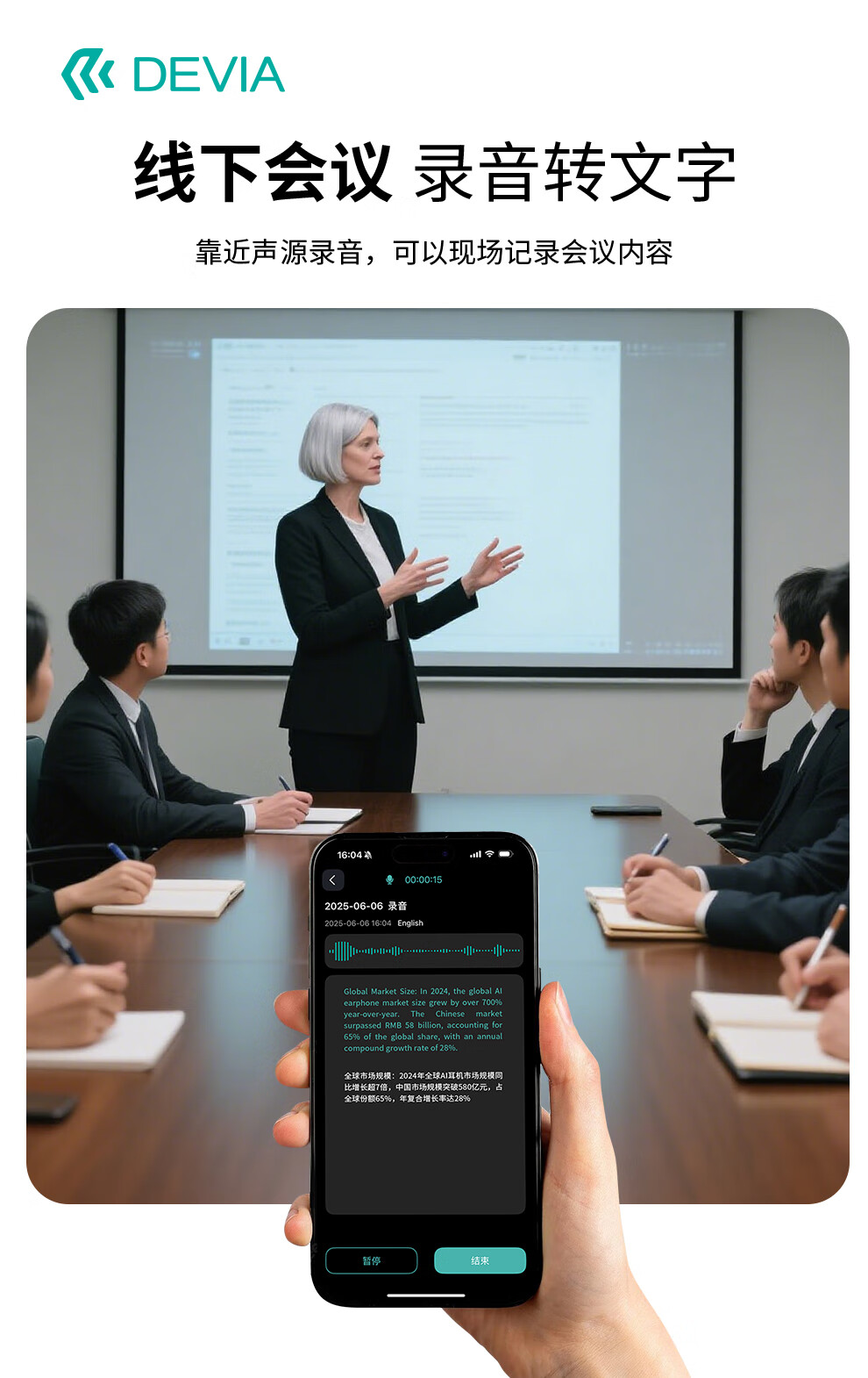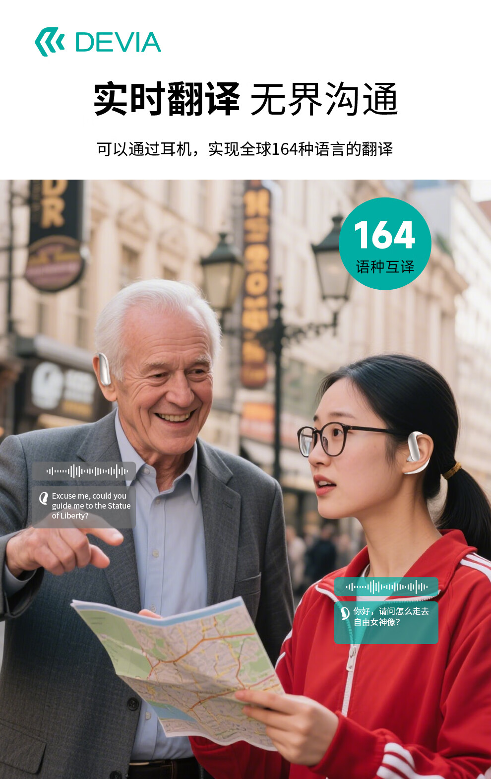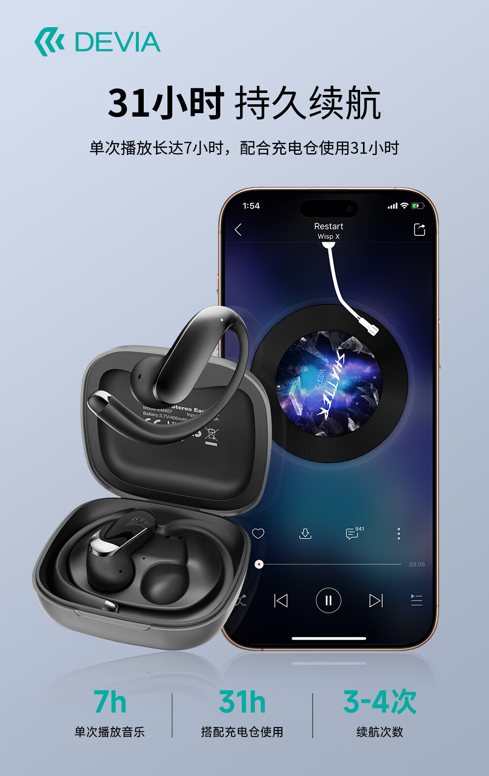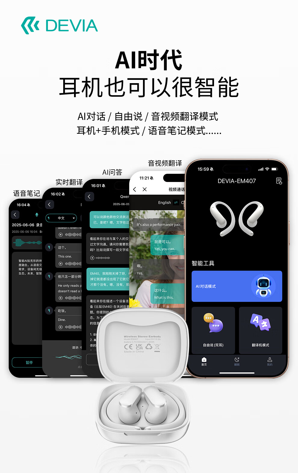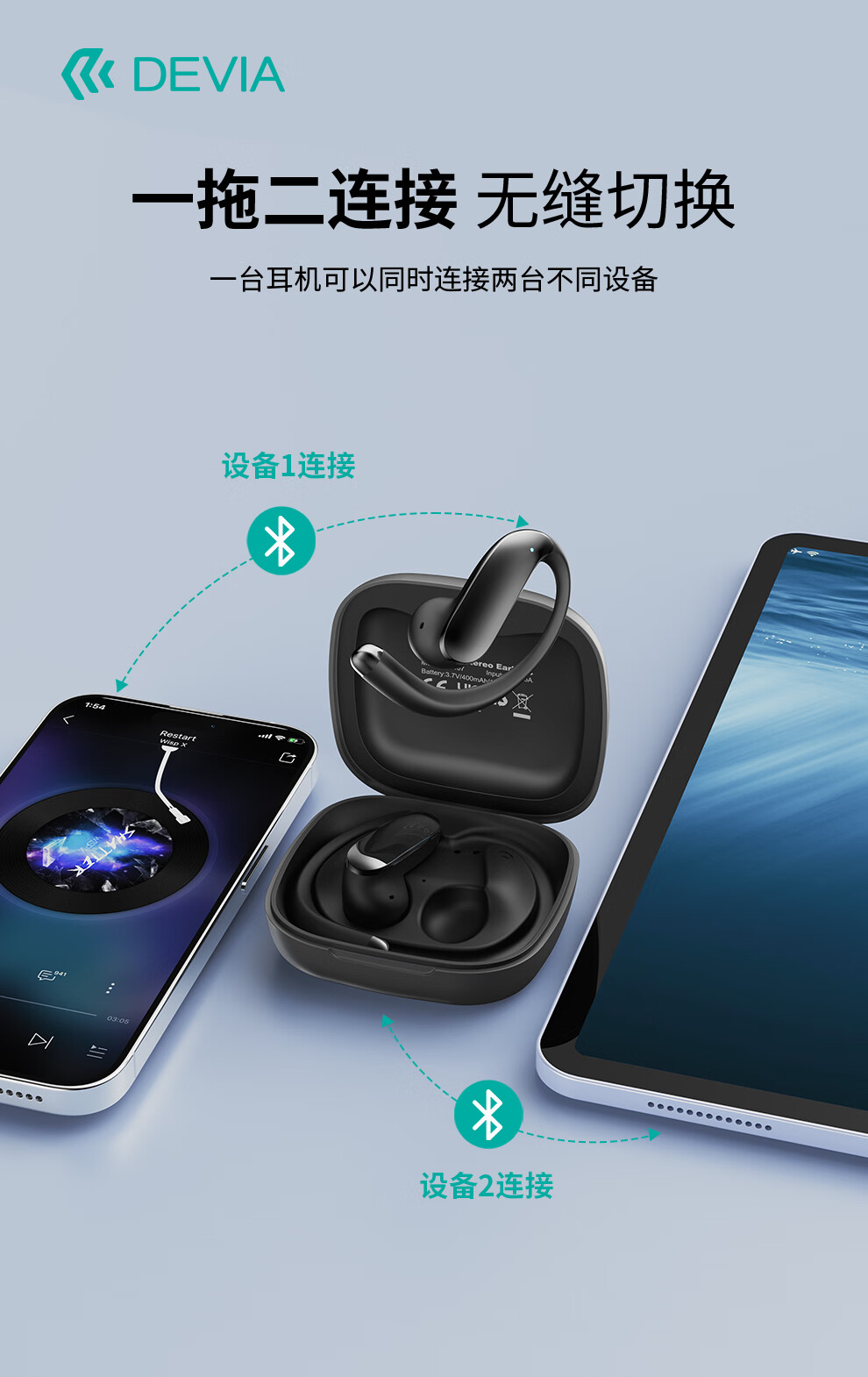 迪沃DEVIA蓝牙耳机OWS AI开放式翻译耳机天机500挂耳式无线长续航