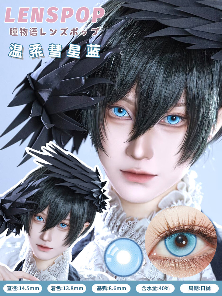【试戴片】LENSPOP日抛 特价爆款 温柔彗星/溏心珠/冰茶汽水/新月池/游仙系列 温柔彗星红/蓝紫/溏心珠蓝绿/冰茶汽水浅蓝/新月池蓝/游仙粉 COS款 咒术回战五条悟/初音/魔卡少女樱 显色美瞳