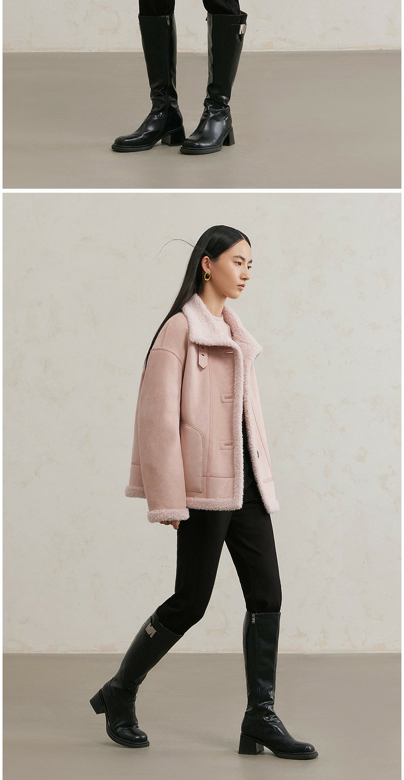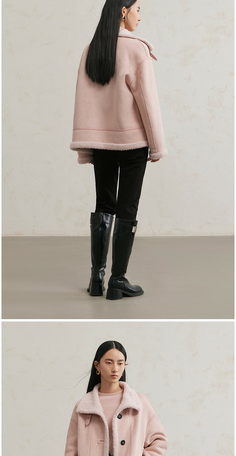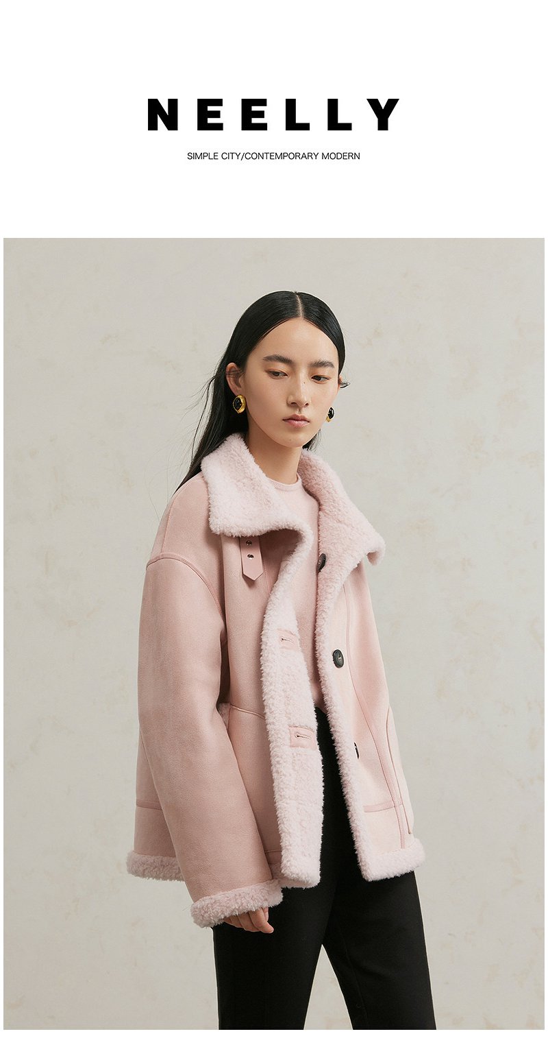 NEELLY纳俪商场同款冬季新款羊毛翻领外套女百搭直筒时尚保暖上衣N25114C04560