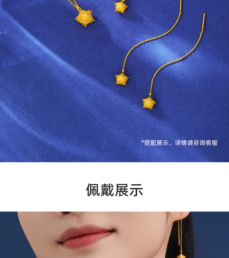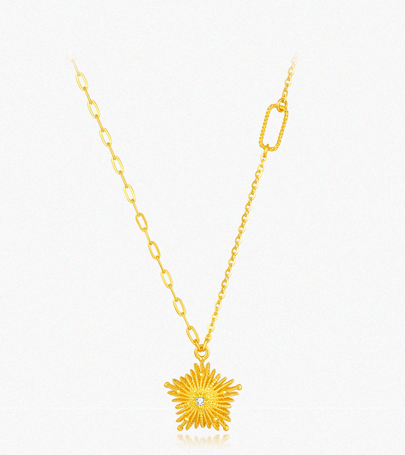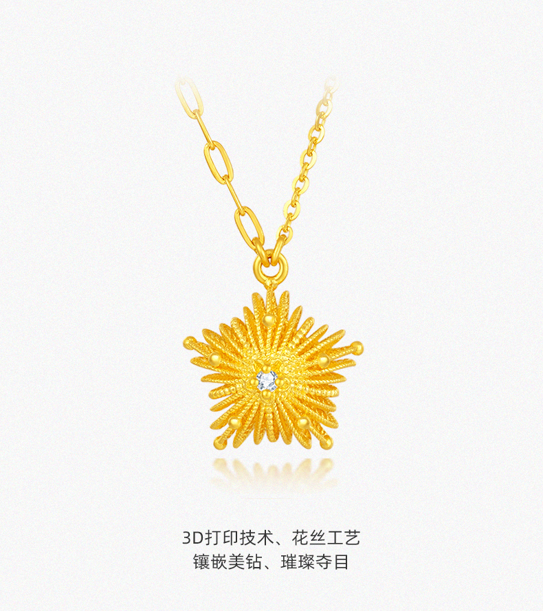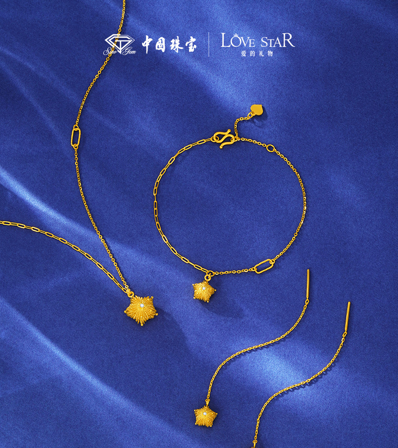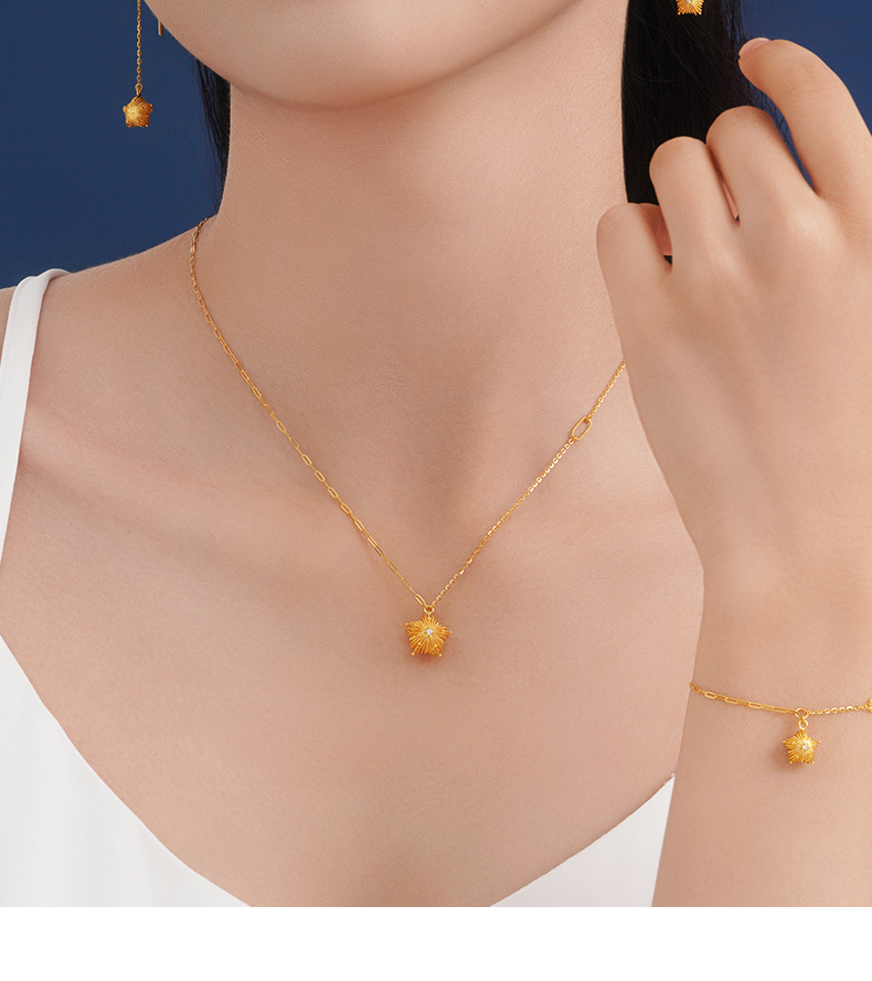 「LOVESTAR-爱的礼物」炽爱星芒黄金套链 钻石星星花丝工艺足金项链【Y】