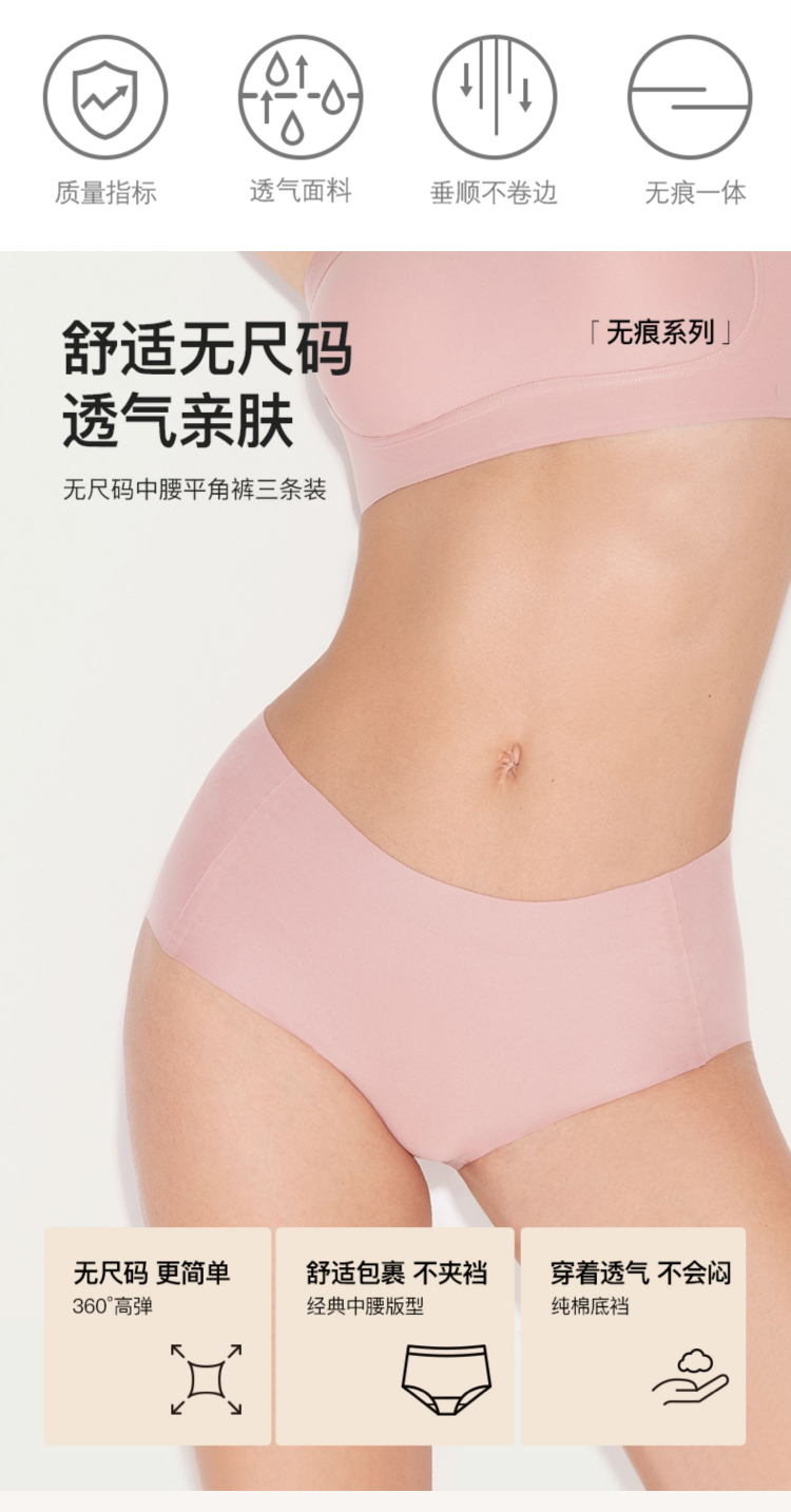 《买4送1 不退换》哈瓦塔无尺码中腰纯棉底裆舒适透气高弹平角裤内裤女
