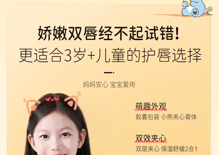 戴可思小熊夹心儿童润唇双层双效秋冬保湿滋润宝宝唇膏♥