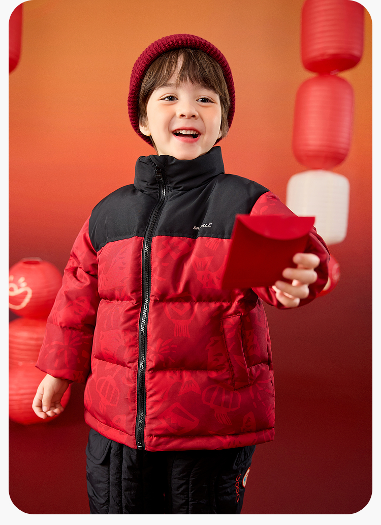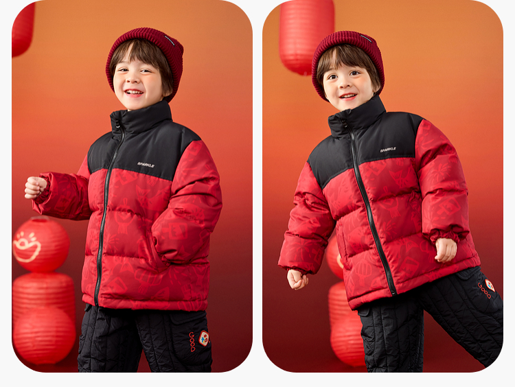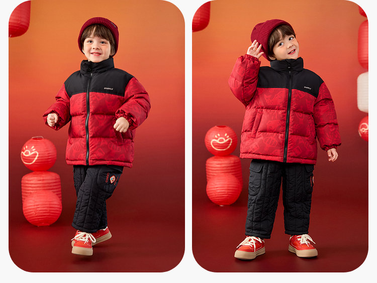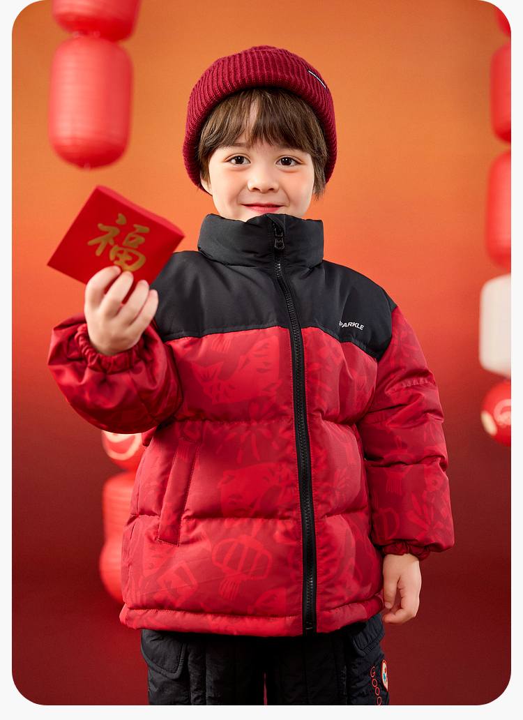 【轻量三防】嘟嘟家儿童羽绒服冬季男童女童新年羽绒衣拜年服冬款喜庆冬装T5DBN072★