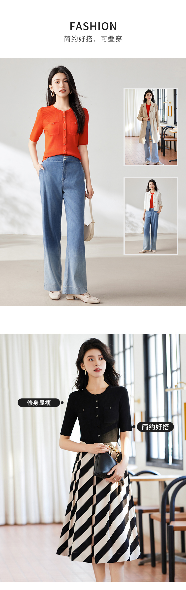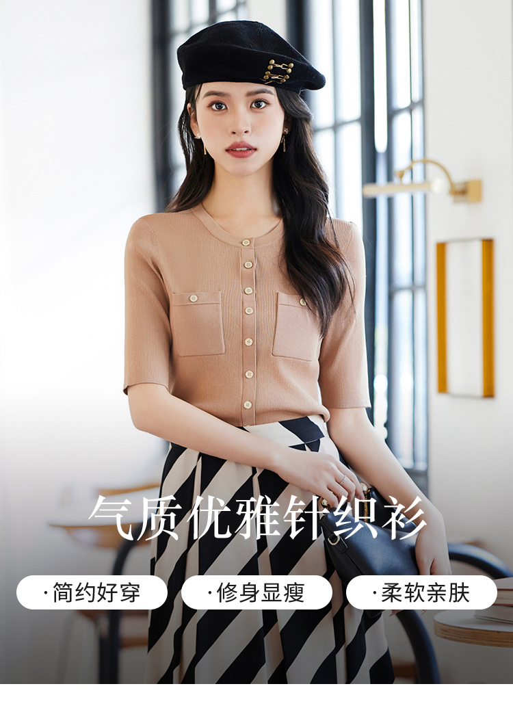 【商场同款】CJKJ314 “醋纤针织衫” 经典H廓形上身自然收身 雅致小圆领 对称贴袋设计好穿显瘦 三色常穿色 职场休闲搭配基础单品