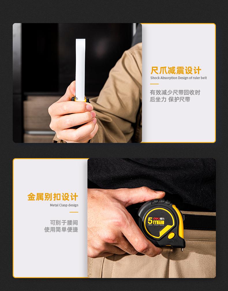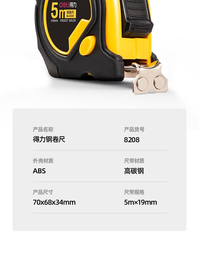 得力8208 5米钢卷尺测量卷尺5m钢卷尺子5m×19mm加宽型全包胶批发