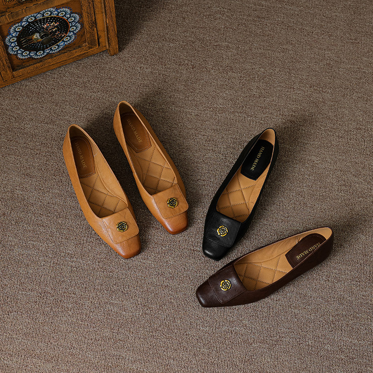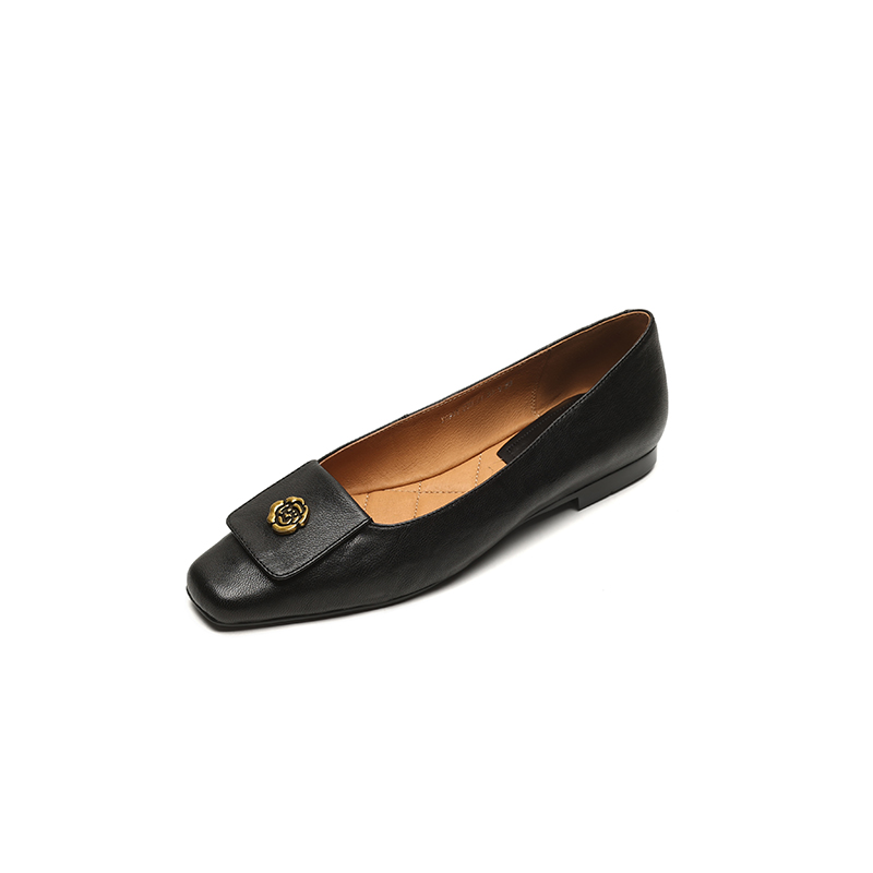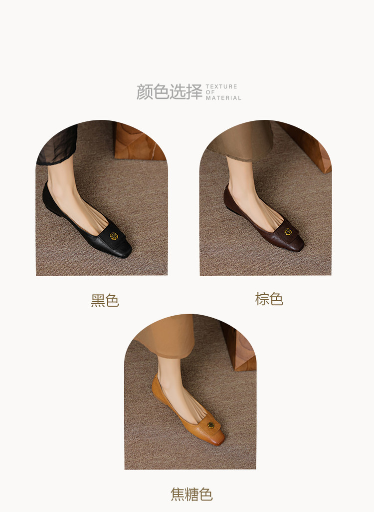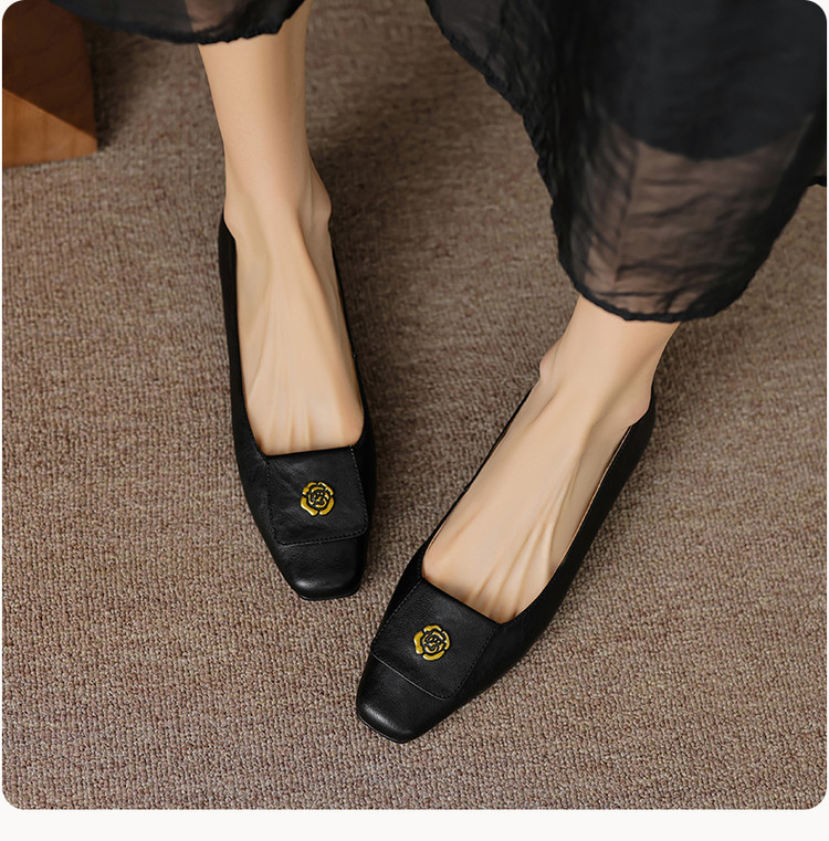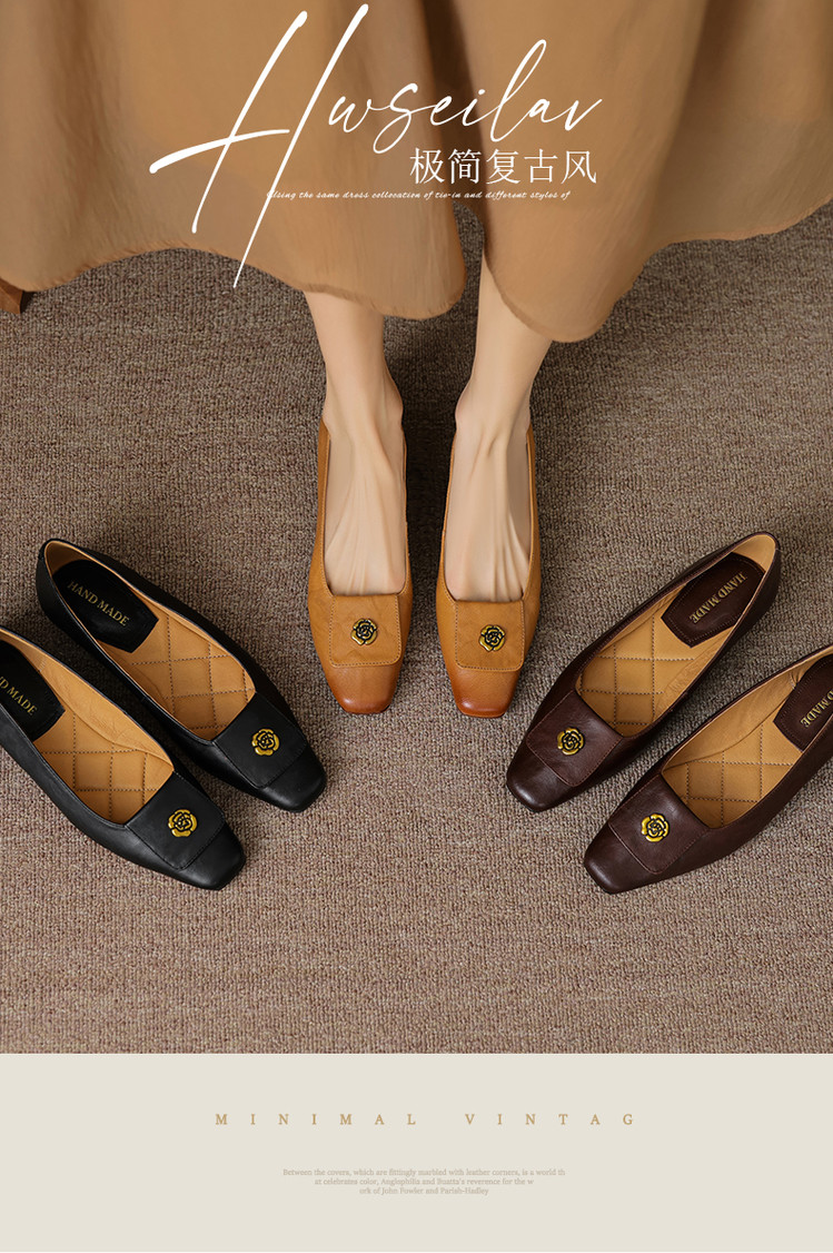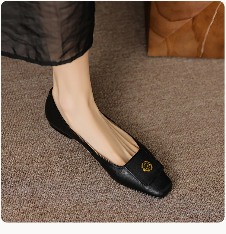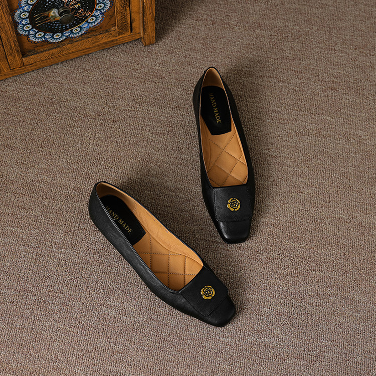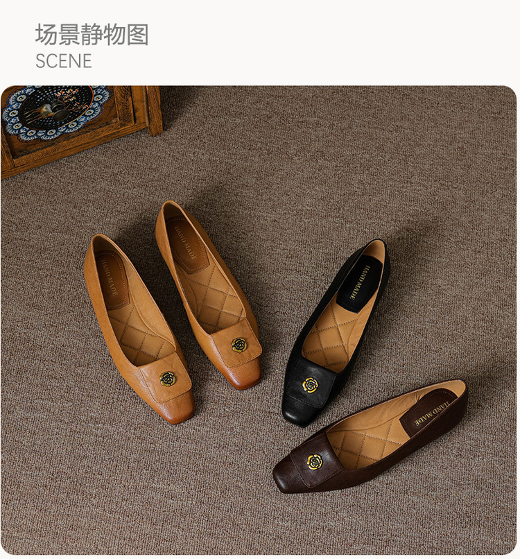 【预售5天】简约舒适复古法式浅口山茶花小方头平底超软羊皮小单鞋女OFSM&OFSM6931