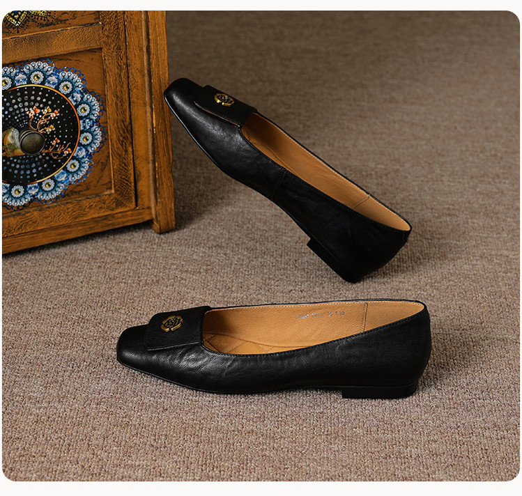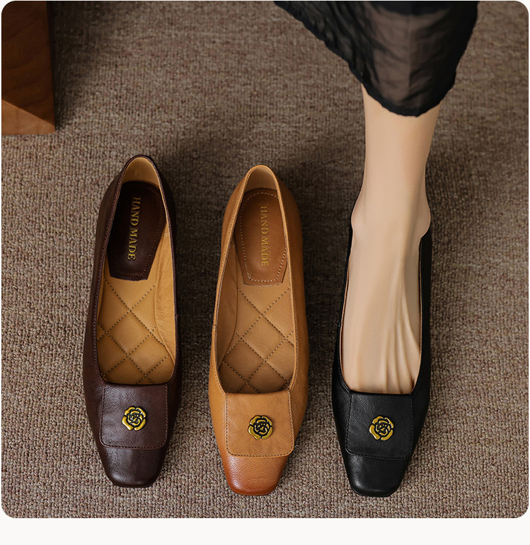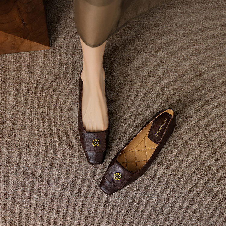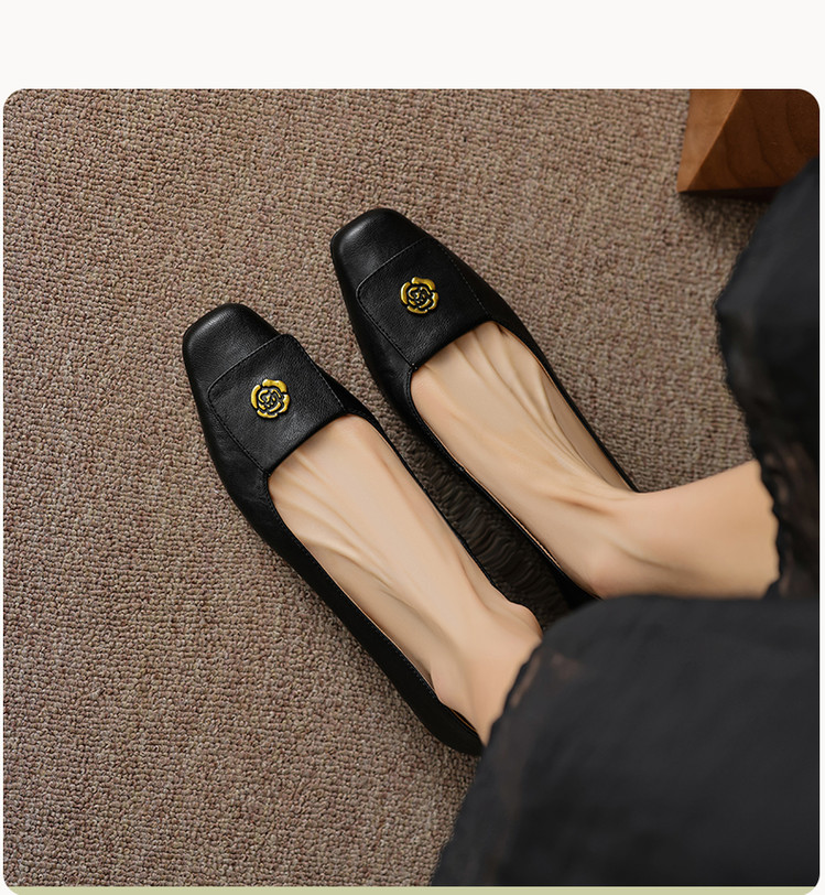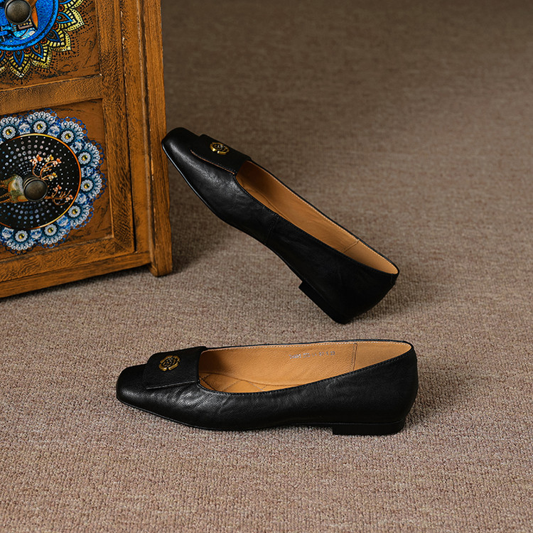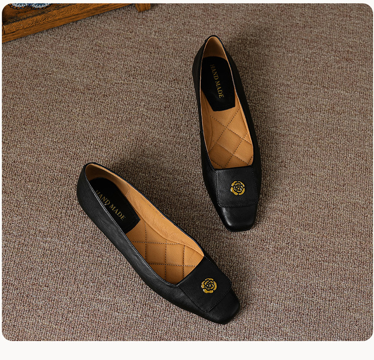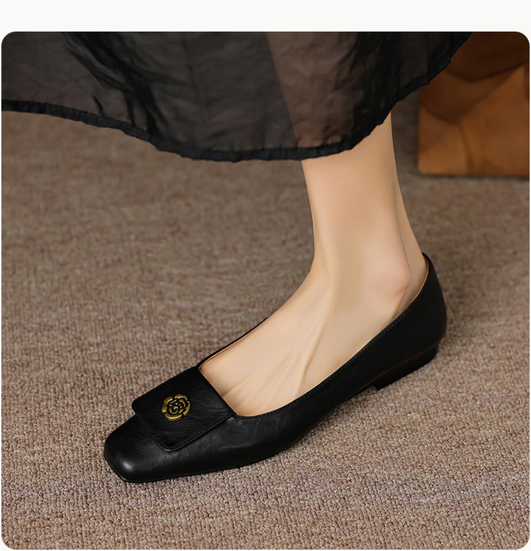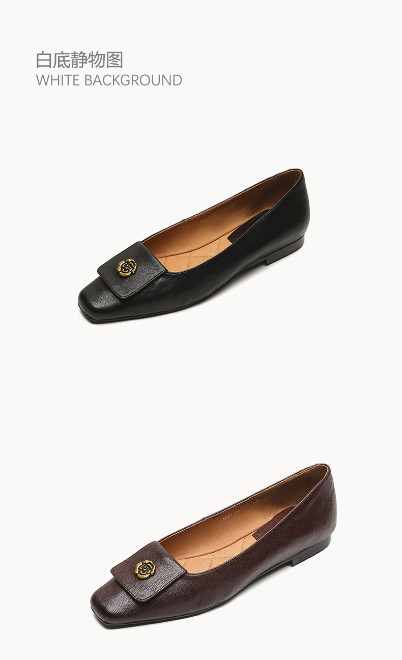 【预售5天】简约舒适复古法式浅口山茶花小方头平底超软羊皮小单鞋女OFSM&OFSM6931