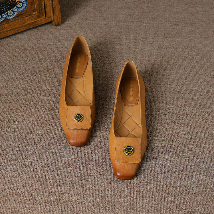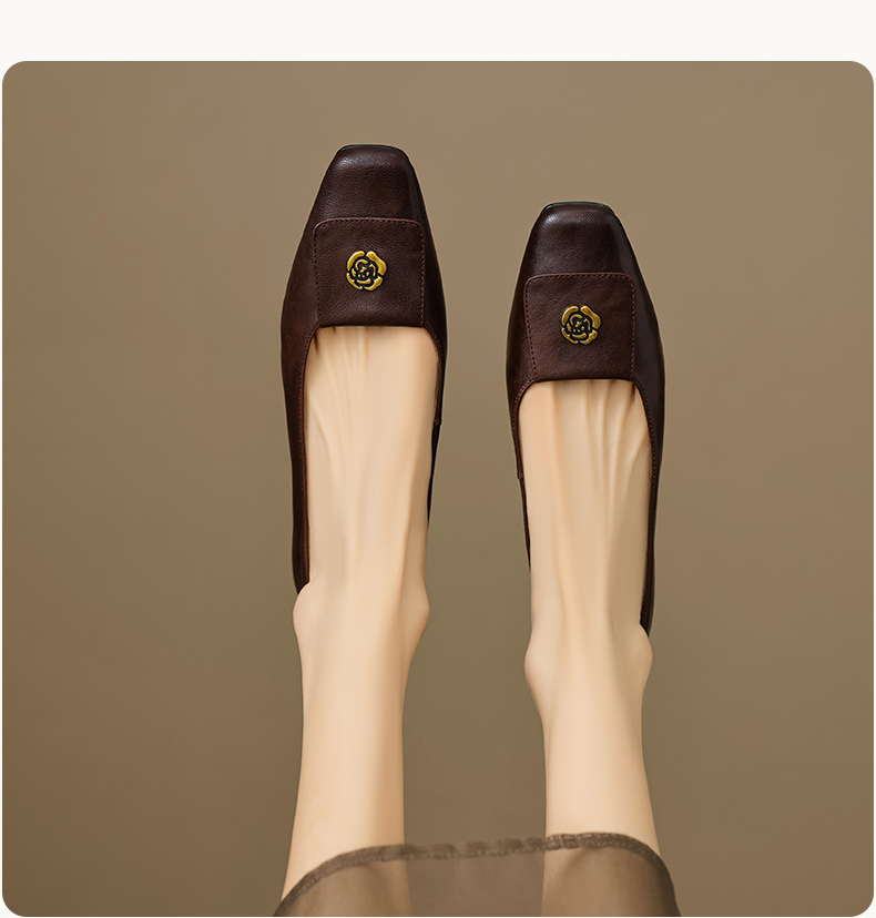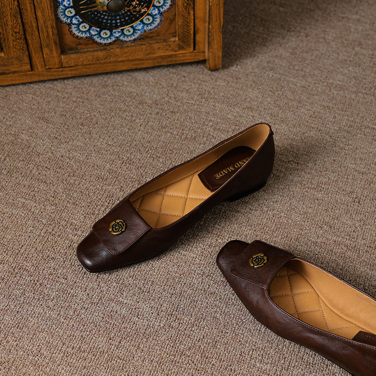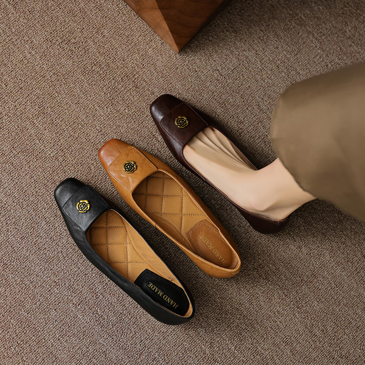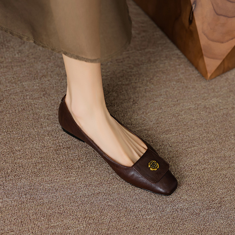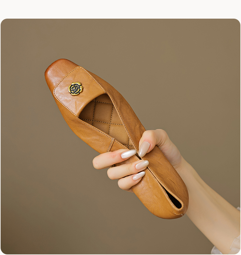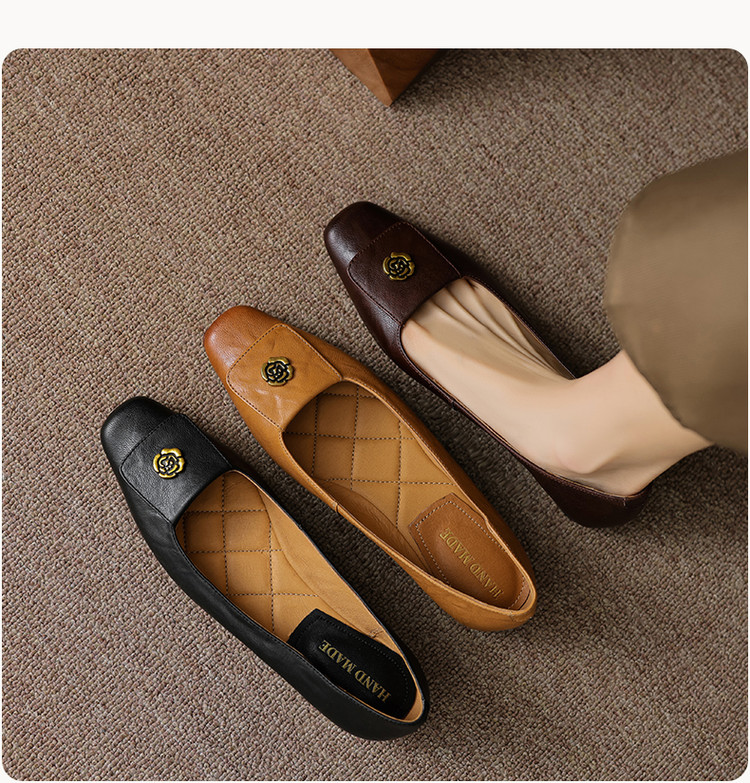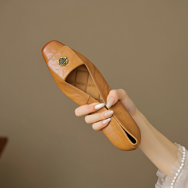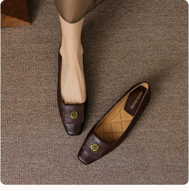 【预售5天】简约舒适复古法式浅口山茶花小方头平底超软羊皮小单鞋女OFSM&OFSM6931