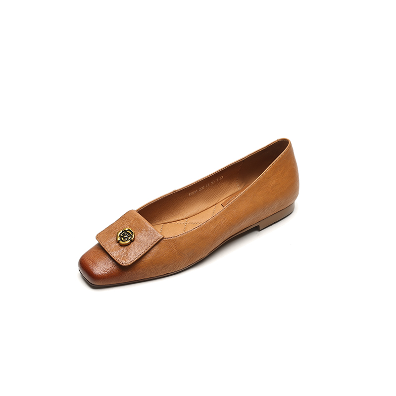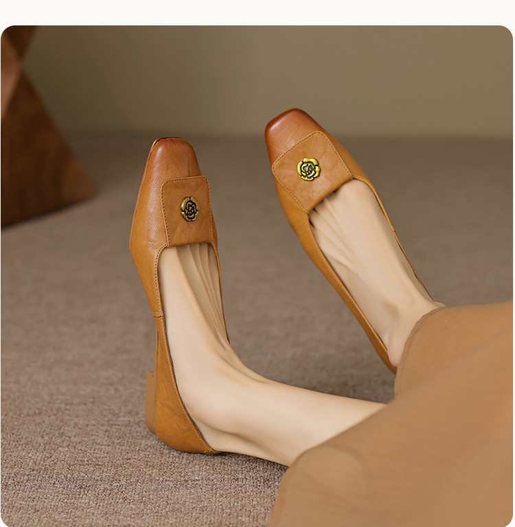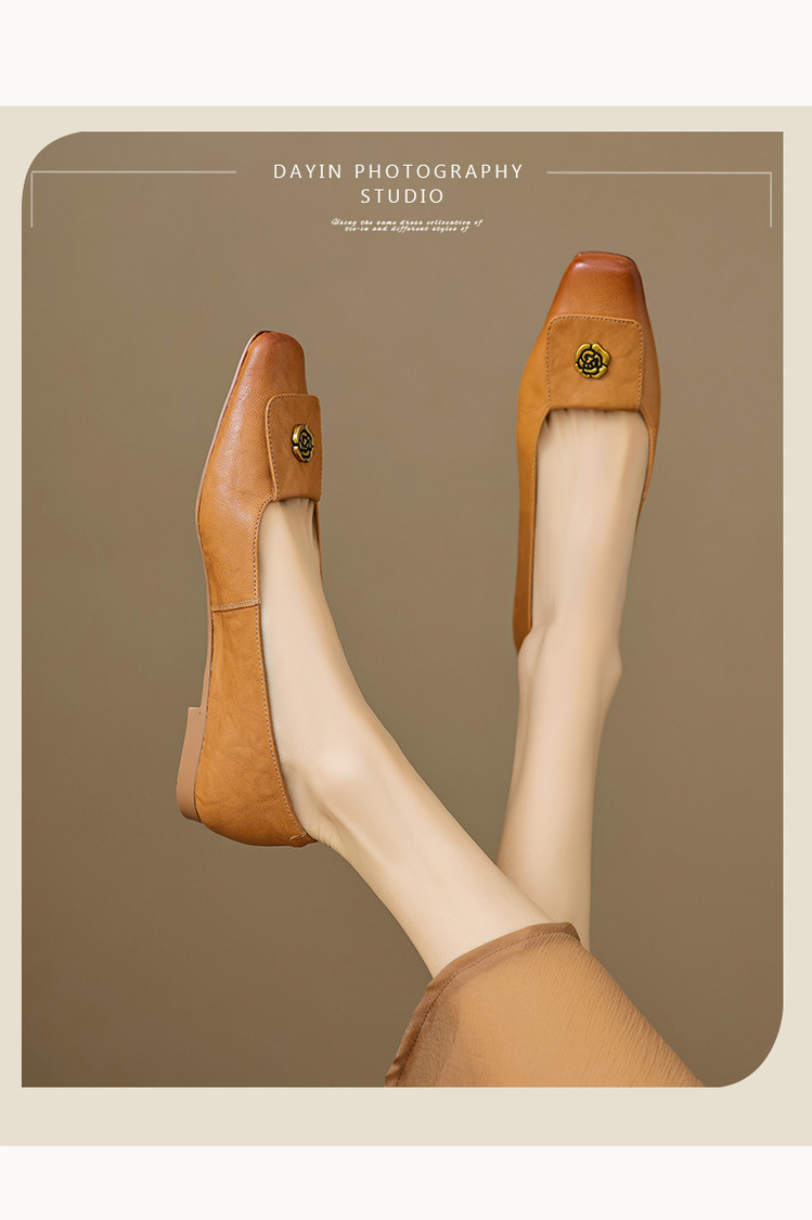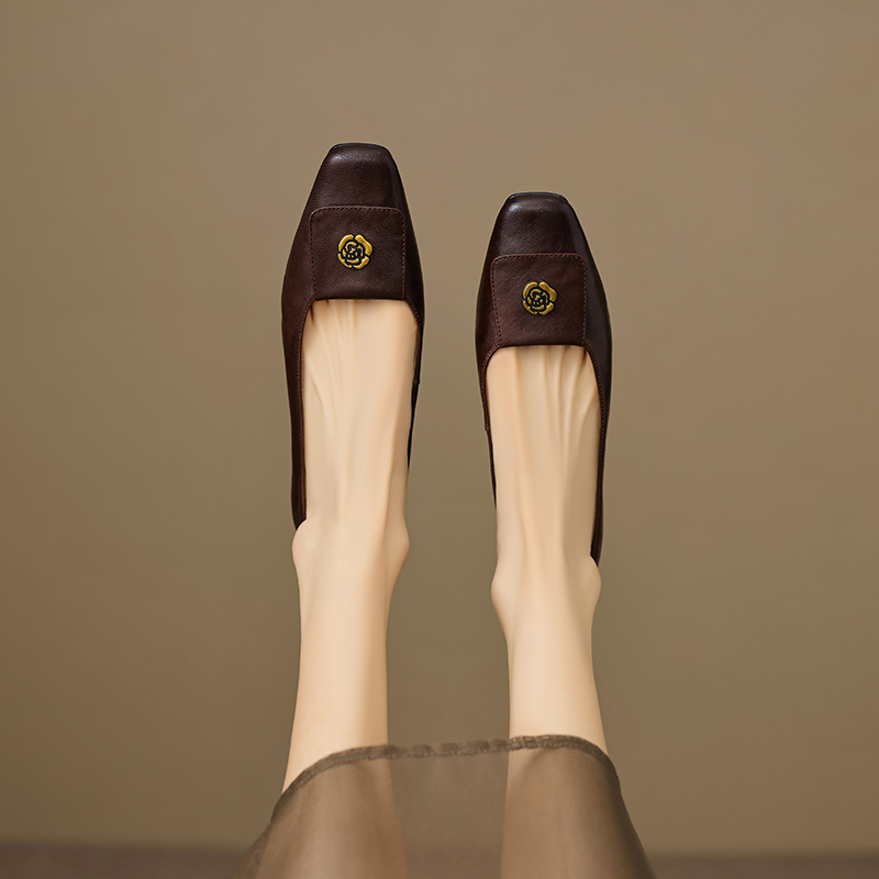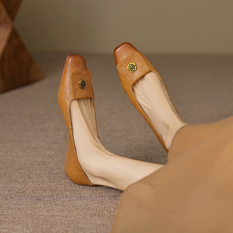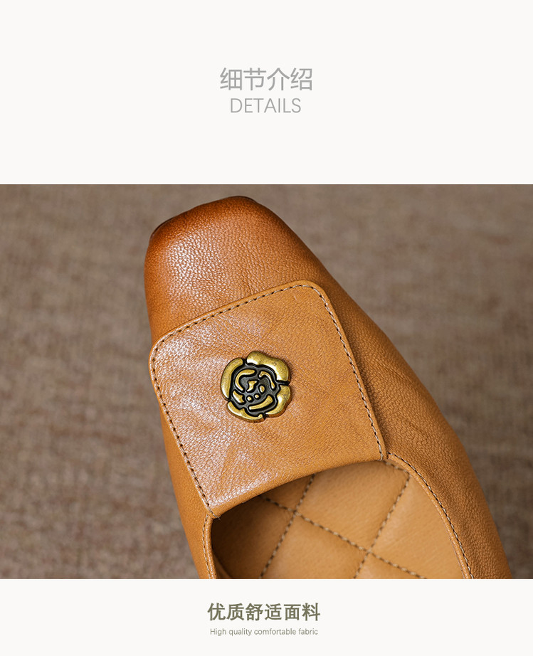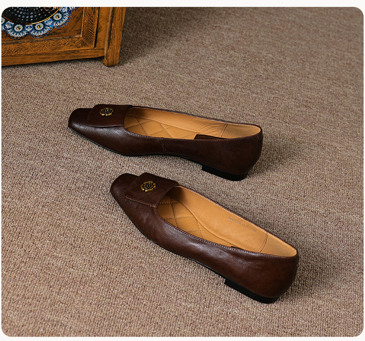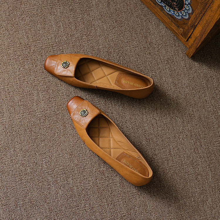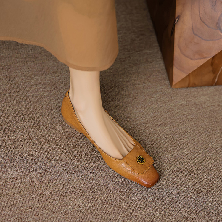 【预售5天】简约舒适复古法式浅口山茶花小方头平底超软羊皮小单鞋女OFSM&OFSM6931