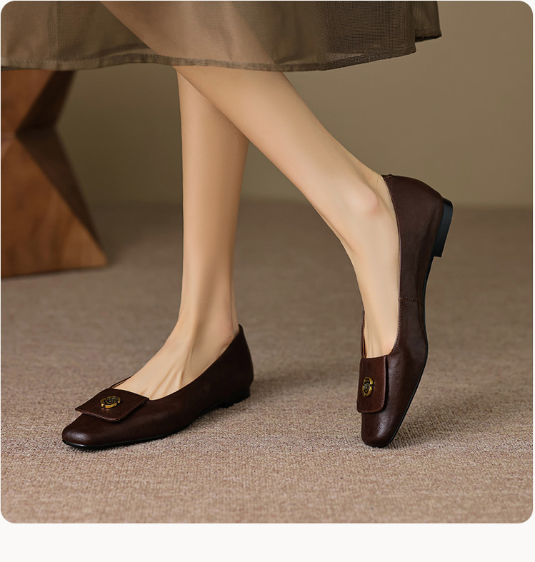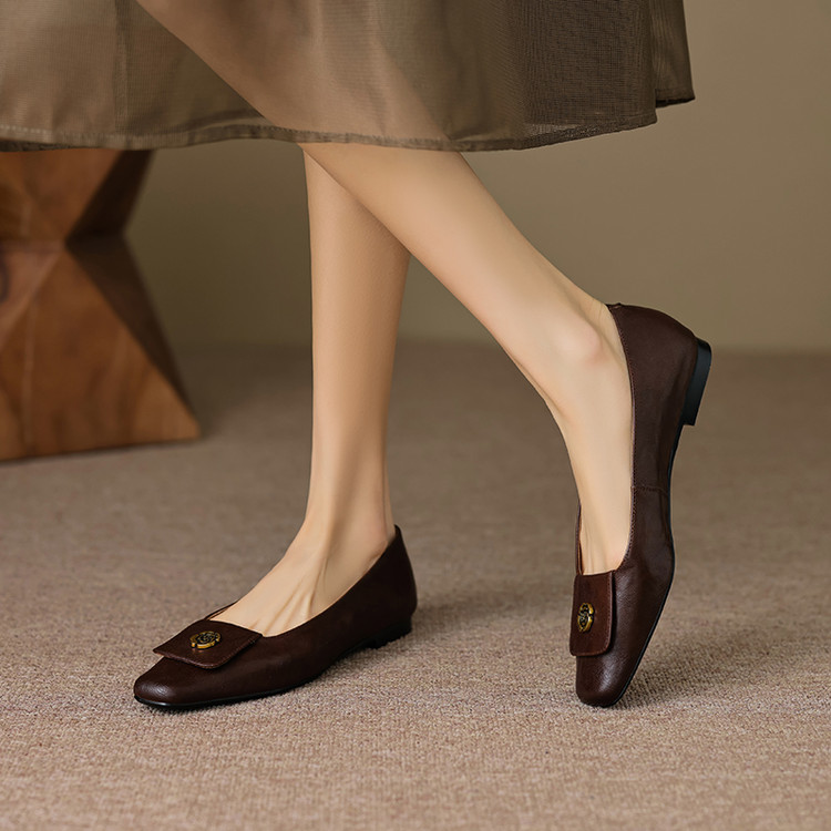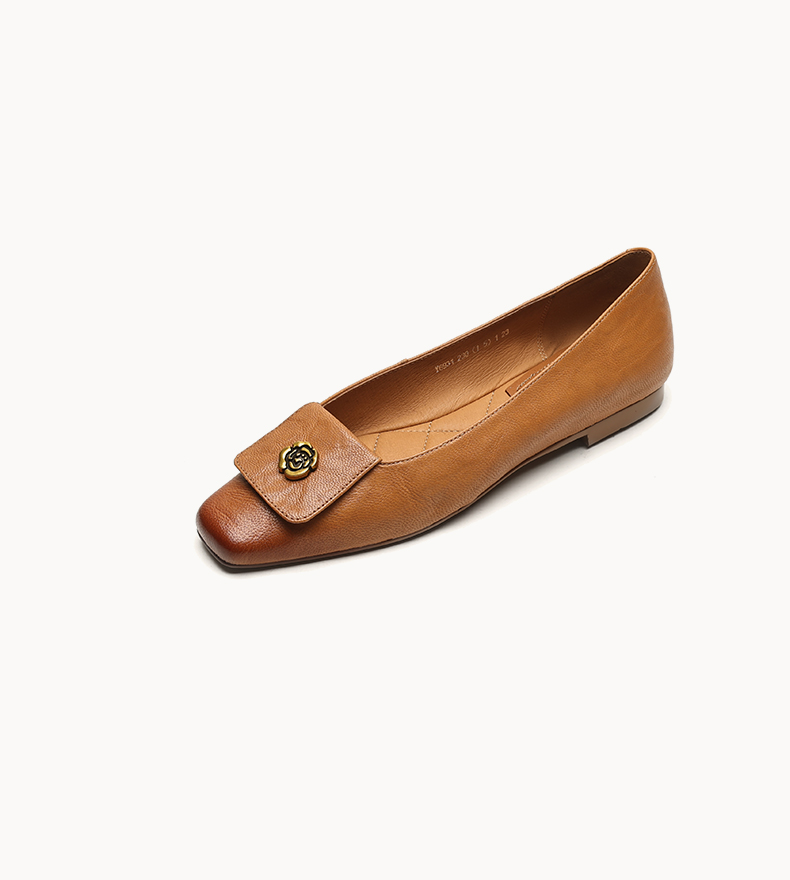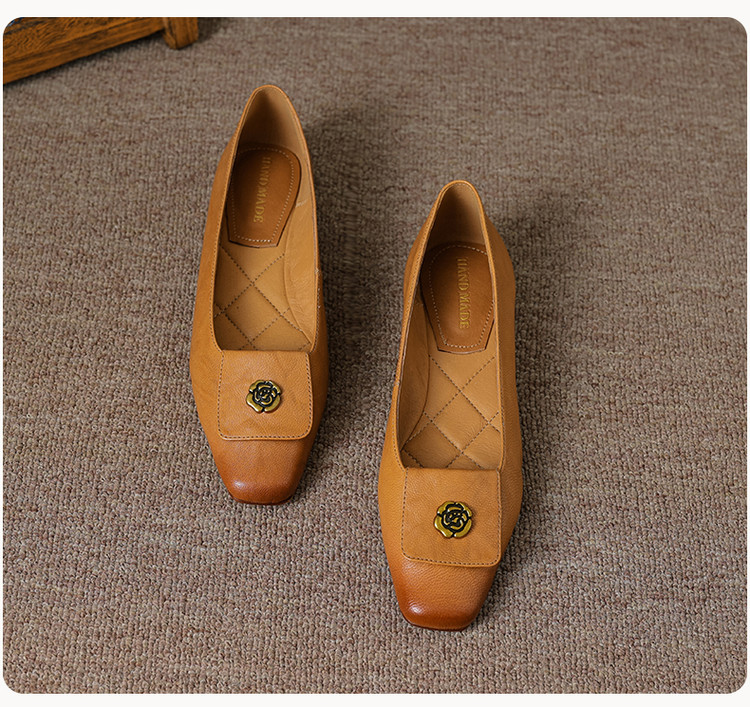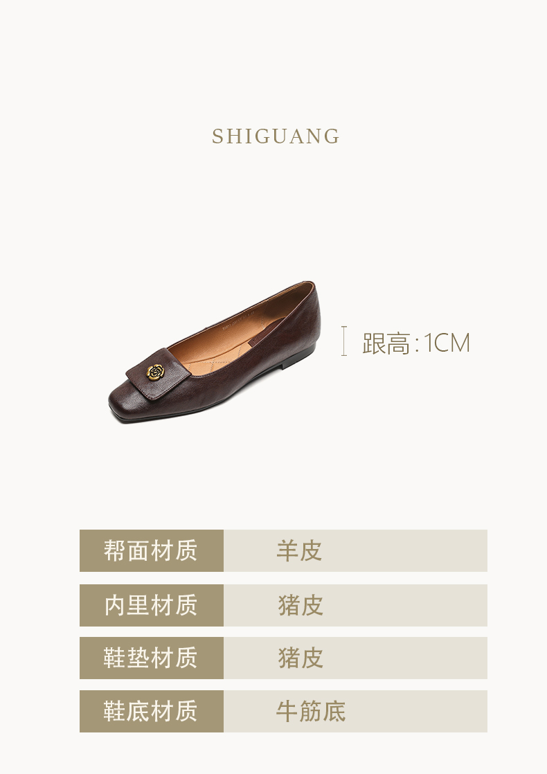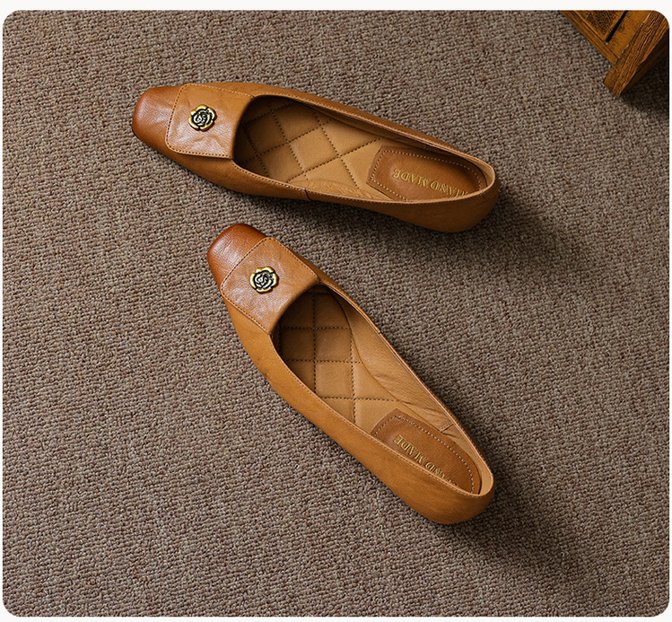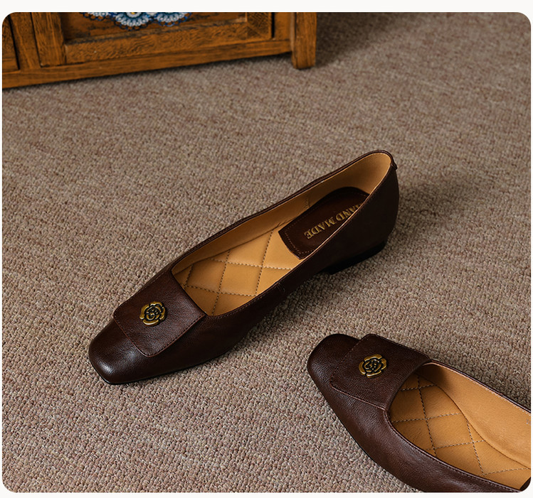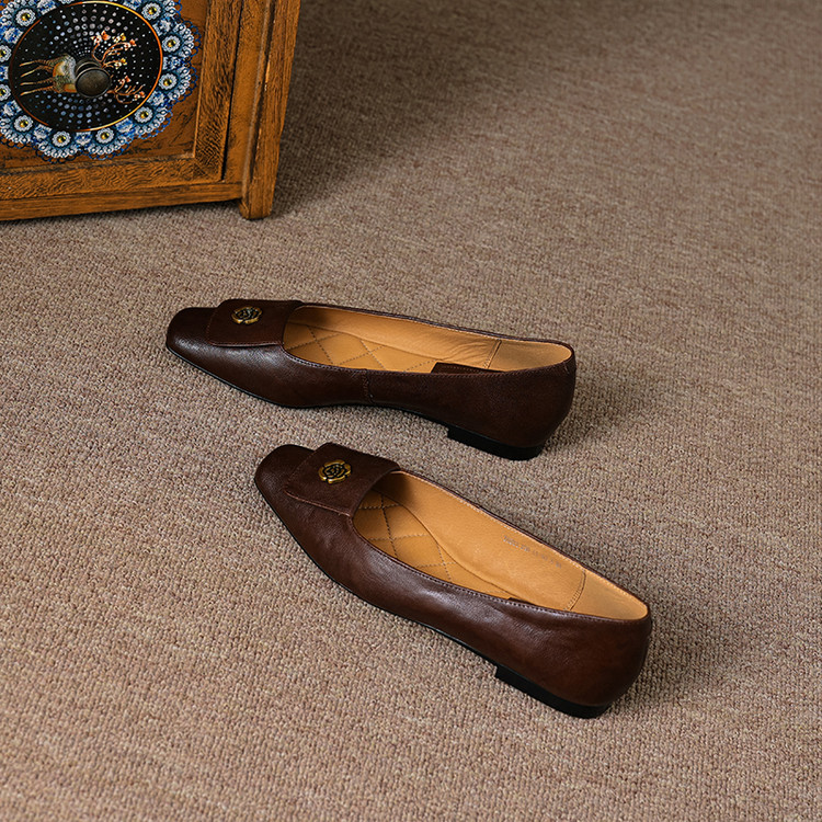 【预售5天】简约舒适复古法式浅口山茶花小方头平底超软羊皮小单鞋女OFSM&OFSM6931