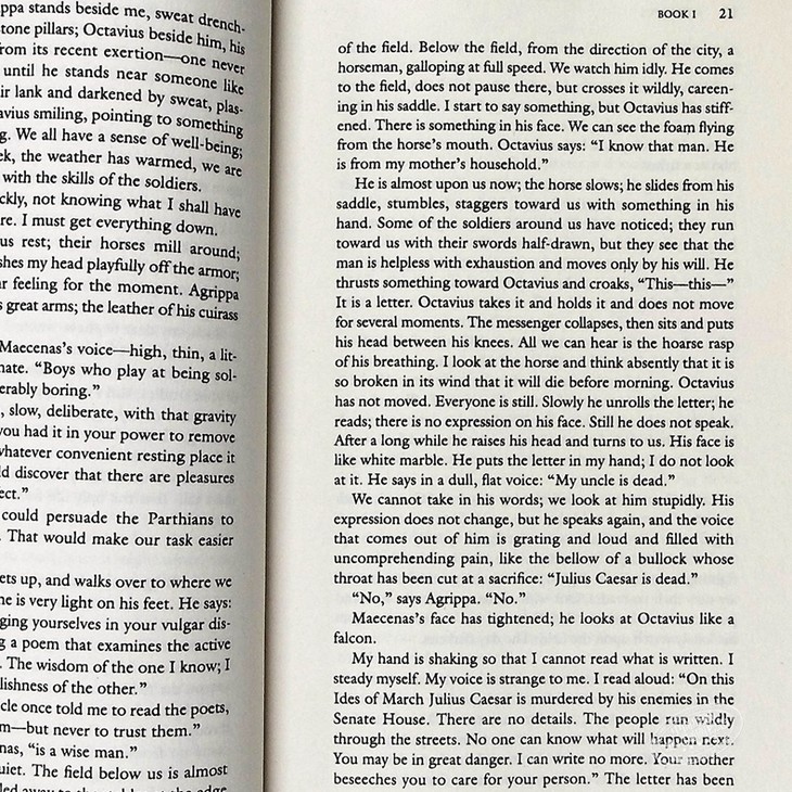 威廉斯重新创造了罗马帝国——从尤利乌斯·恺撒之死到奥古斯都的生命终点,从一个病弱的男孩到一个在远征中险些送命的病弱男人再到一个貌似冷酷无情的统治者,宫廷、元老院和人们尔虞我诈。他采用书信体和多视角,末了所有的声音如拼贴画一般融汇于主人公身边。——美国国家图书基金会
