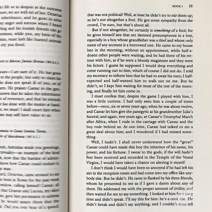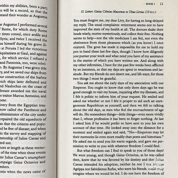 全书以书信体的形式,笔调朴实,不同角色各种立场轮番登场,夹杂回忆录、日记、书信、私人便笺、军令、请愿书、会议记录、传单等,藉各人物之口侧写奥古斯都的一生,也同时建构出罗马的风土民情,展演帝国与帝王的真实。最后,小说终于七十五岁的奥古斯都自述,回望走过的岁月,完全奉献挚爱的罗马,以及曾被他称作「我的小罗马」的女儿茱莉亚⋯⋯