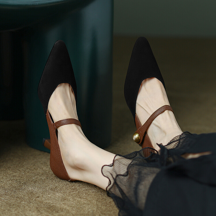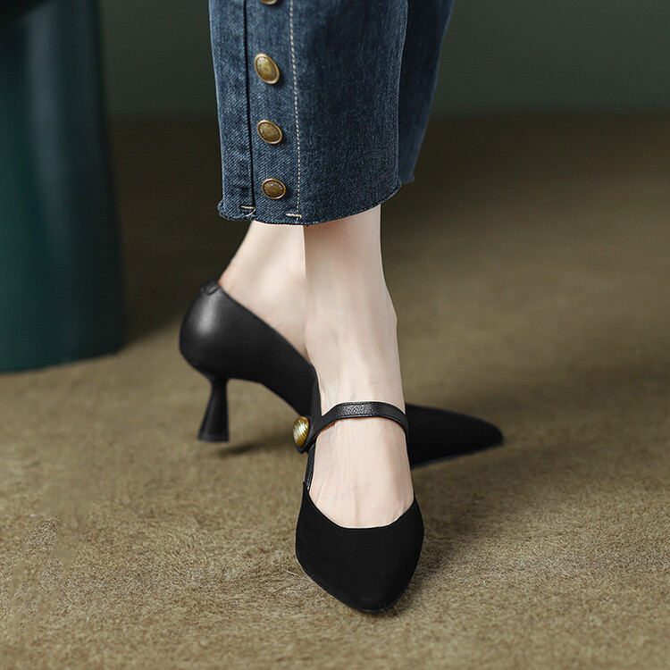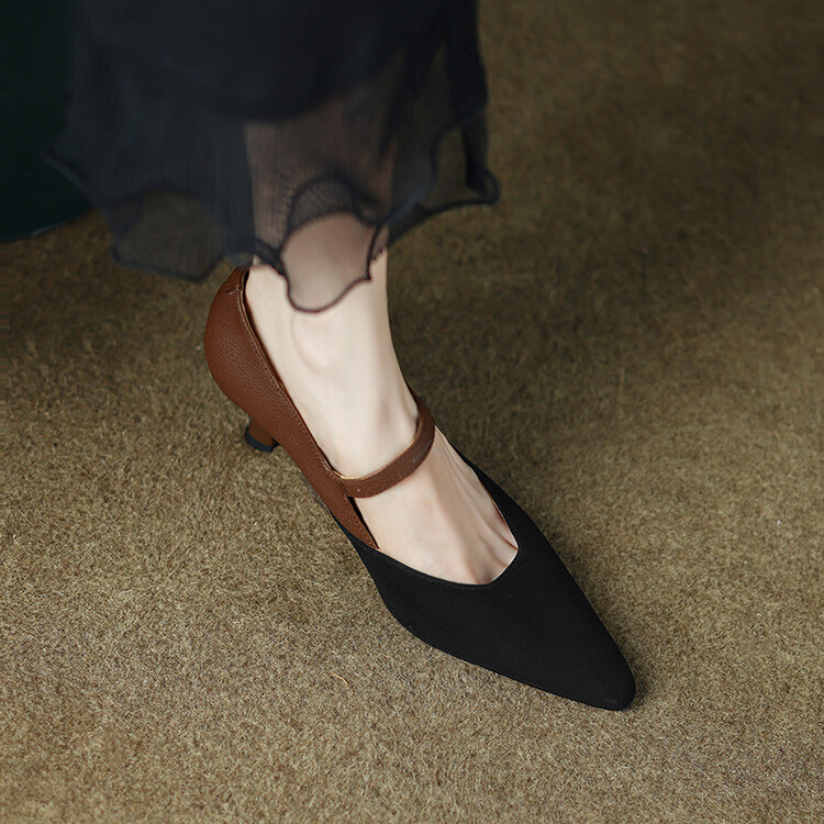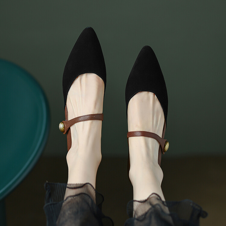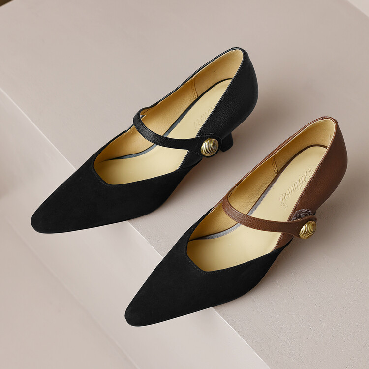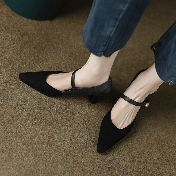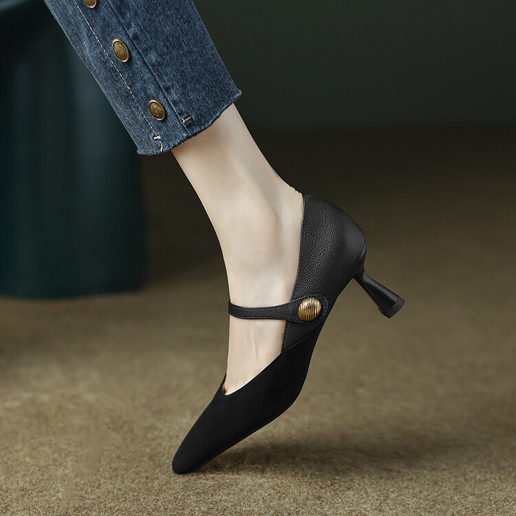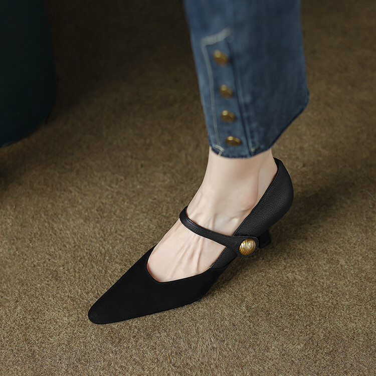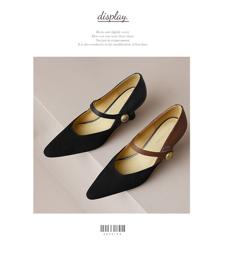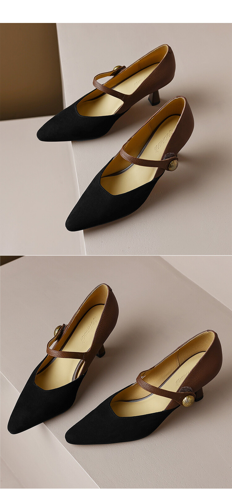 【货号】ZF051D【帮面材质】羊皮+羊猄皮【内里材质】头层猪皮【鞋垫材质】羊皮【鞋底材质】牛筋底【颜色】黑色 棕色【跟高】6.5CM【掌宽】8CM【尺码】34-39
