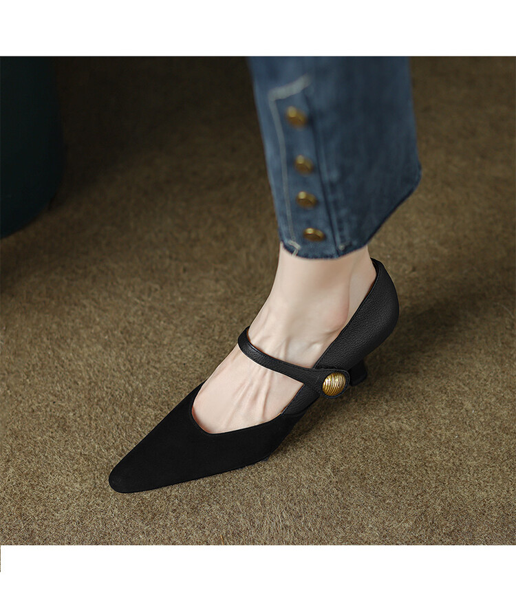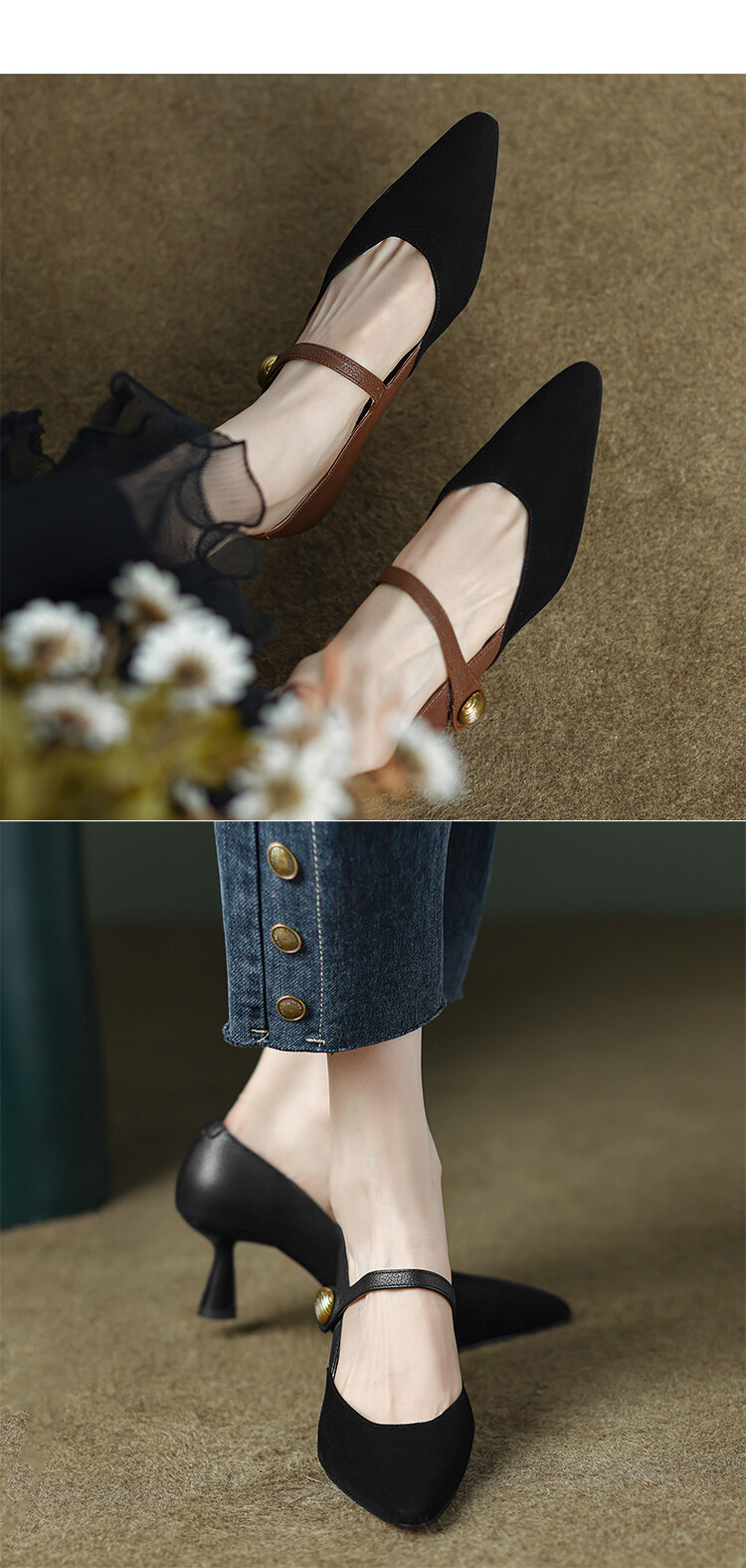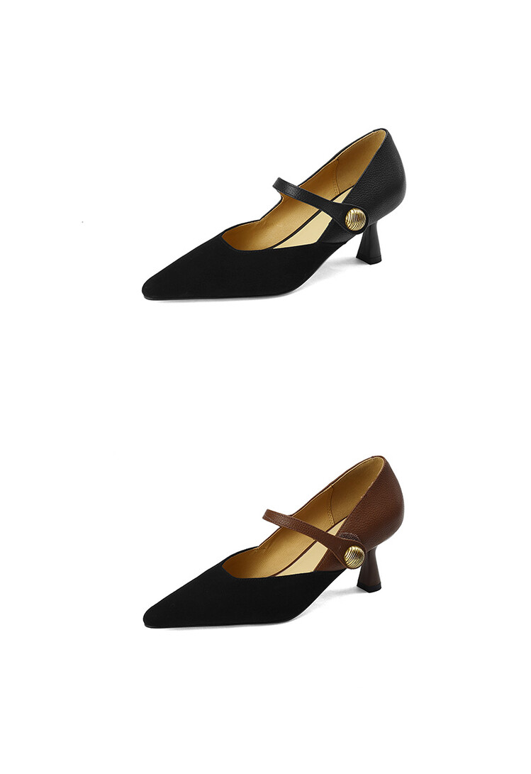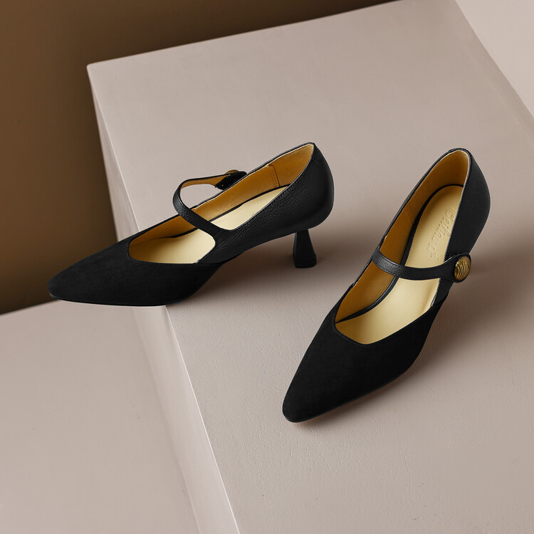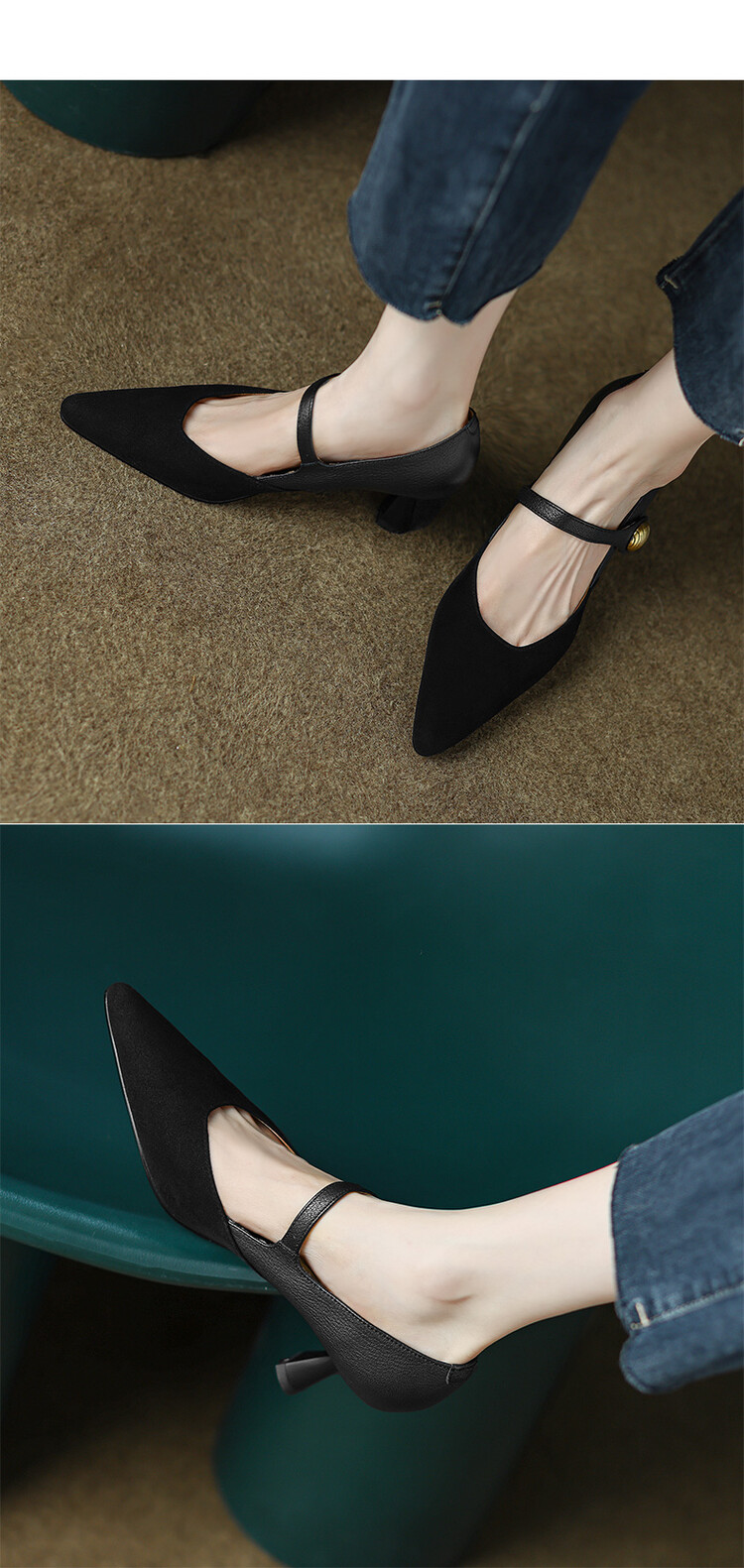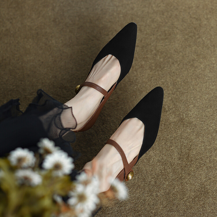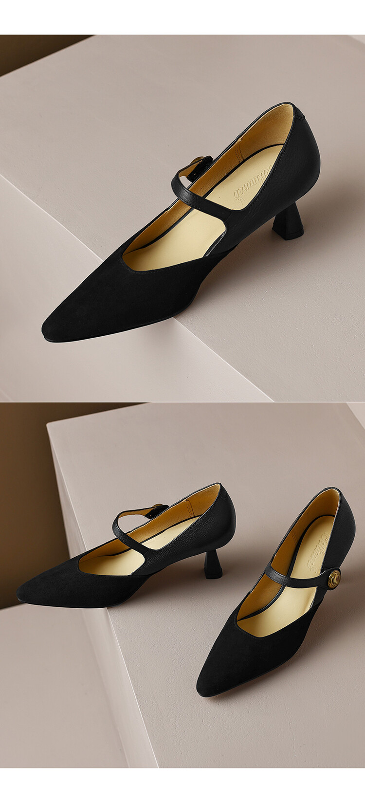 【货号】ZF051D【帮面材质】羊皮+羊猄皮【内里材质】头层猪皮【鞋垫材质】羊皮【鞋底材质】牛筋底【颜色】黑色 棕色【跟高】6.5CM【掌宽】8CM【尺码】34-39