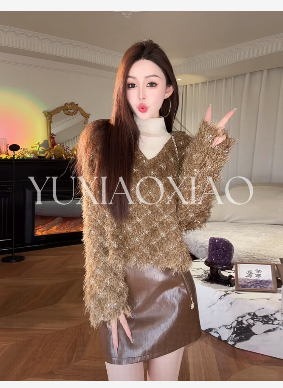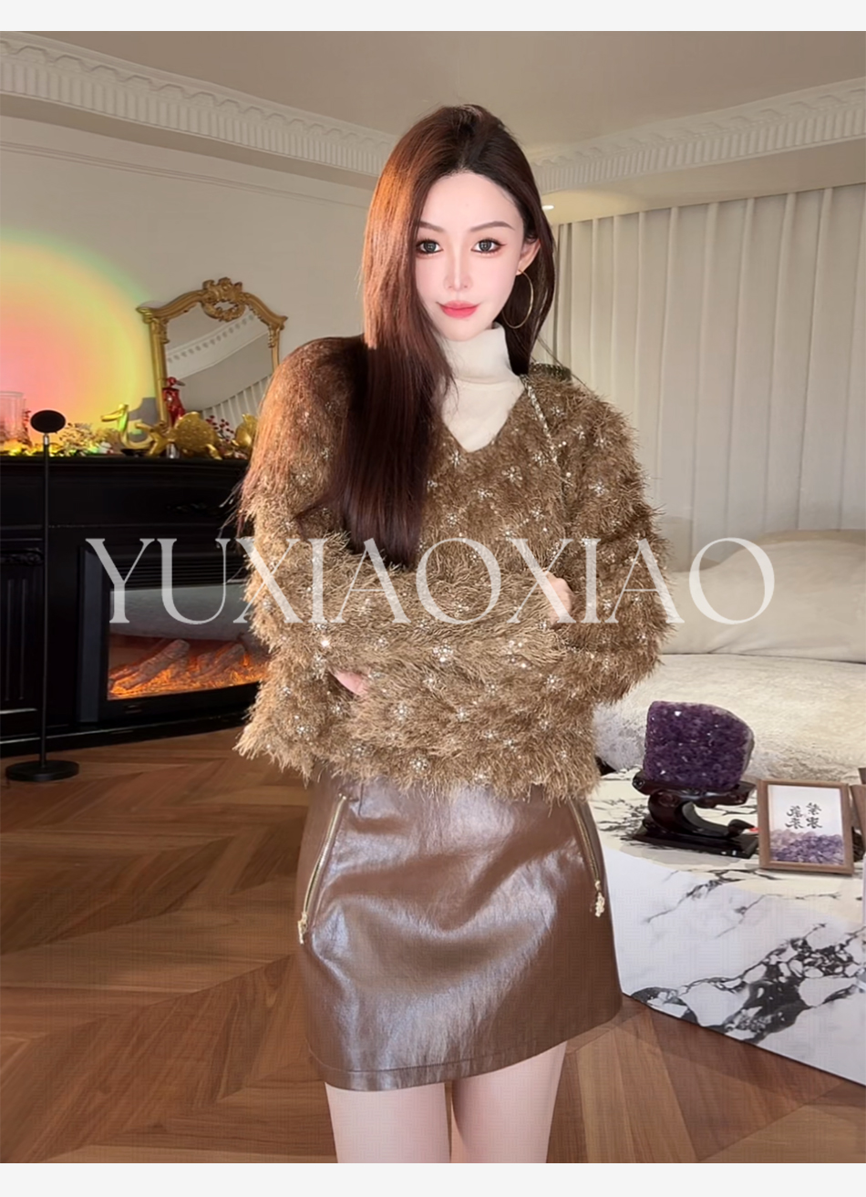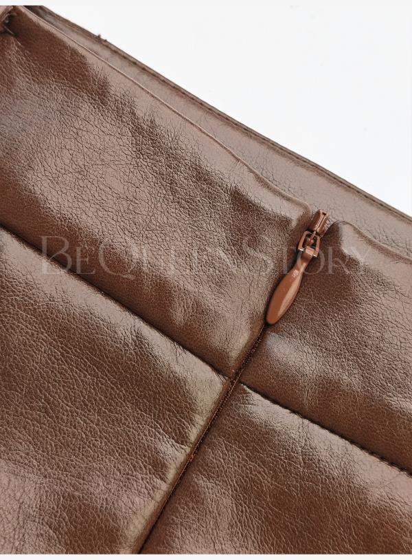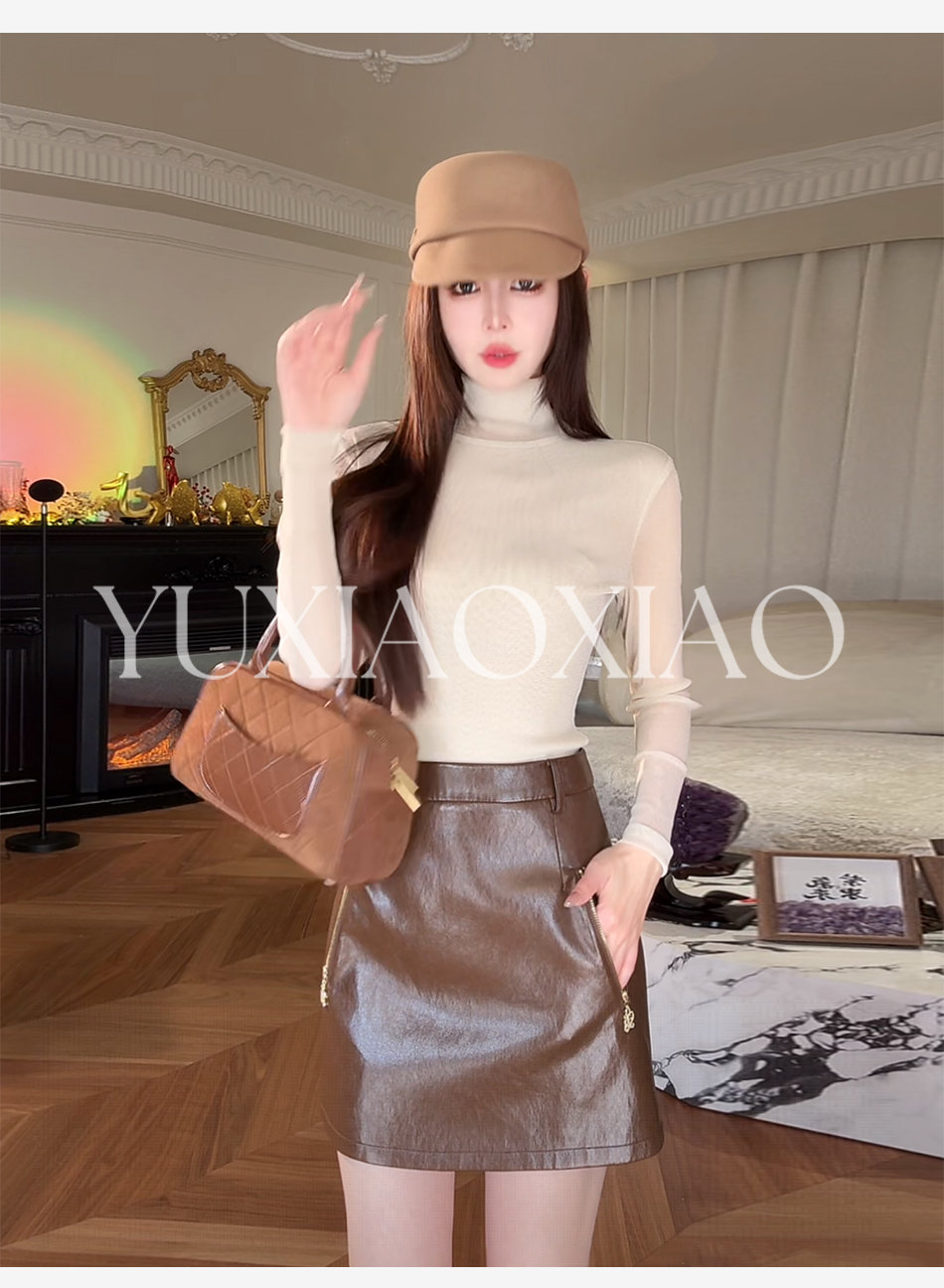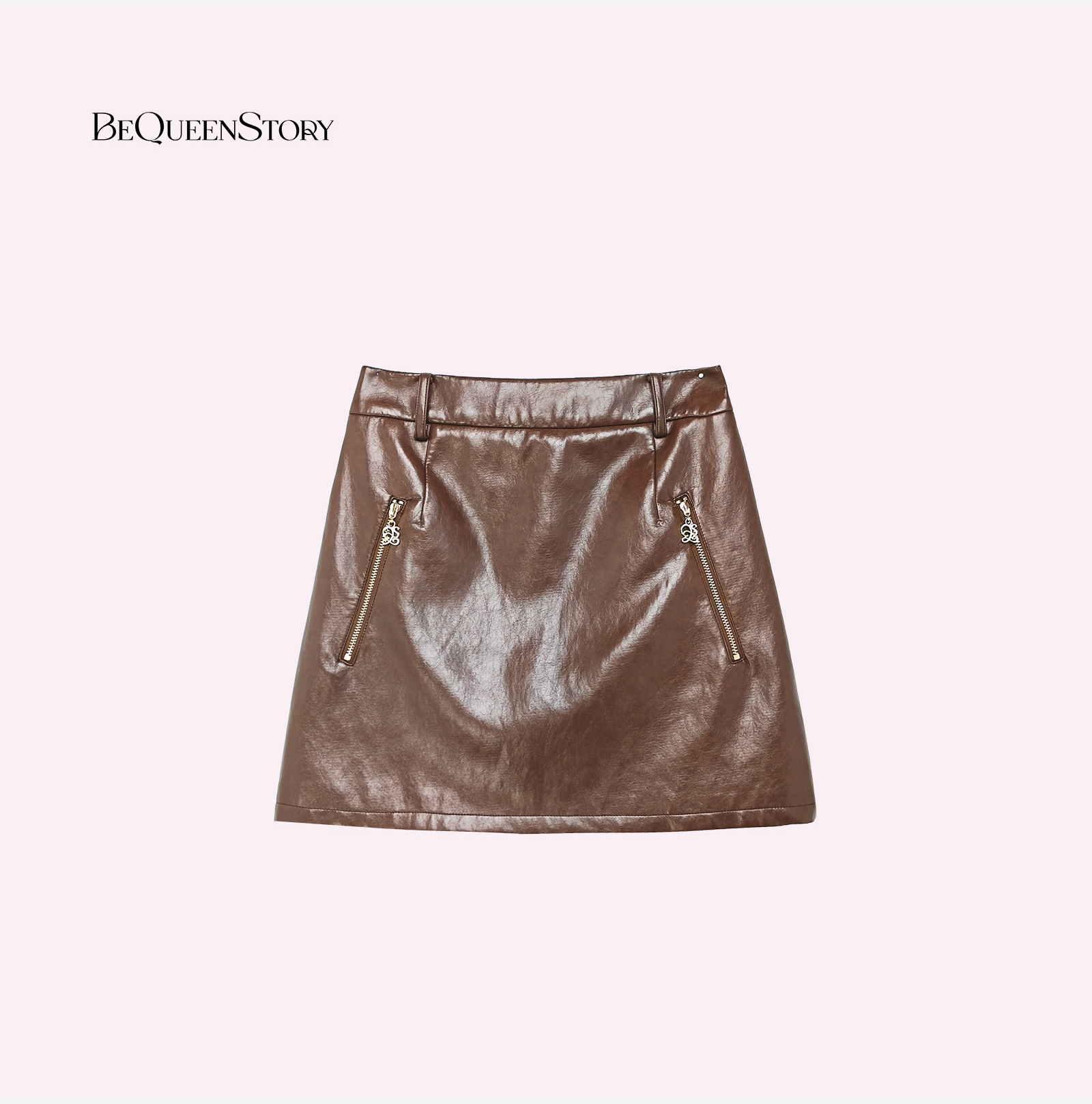 余潇潇【摇滚假日】复古层次感纹理A字高腰显瘦短款皮半裙秋日穿搭