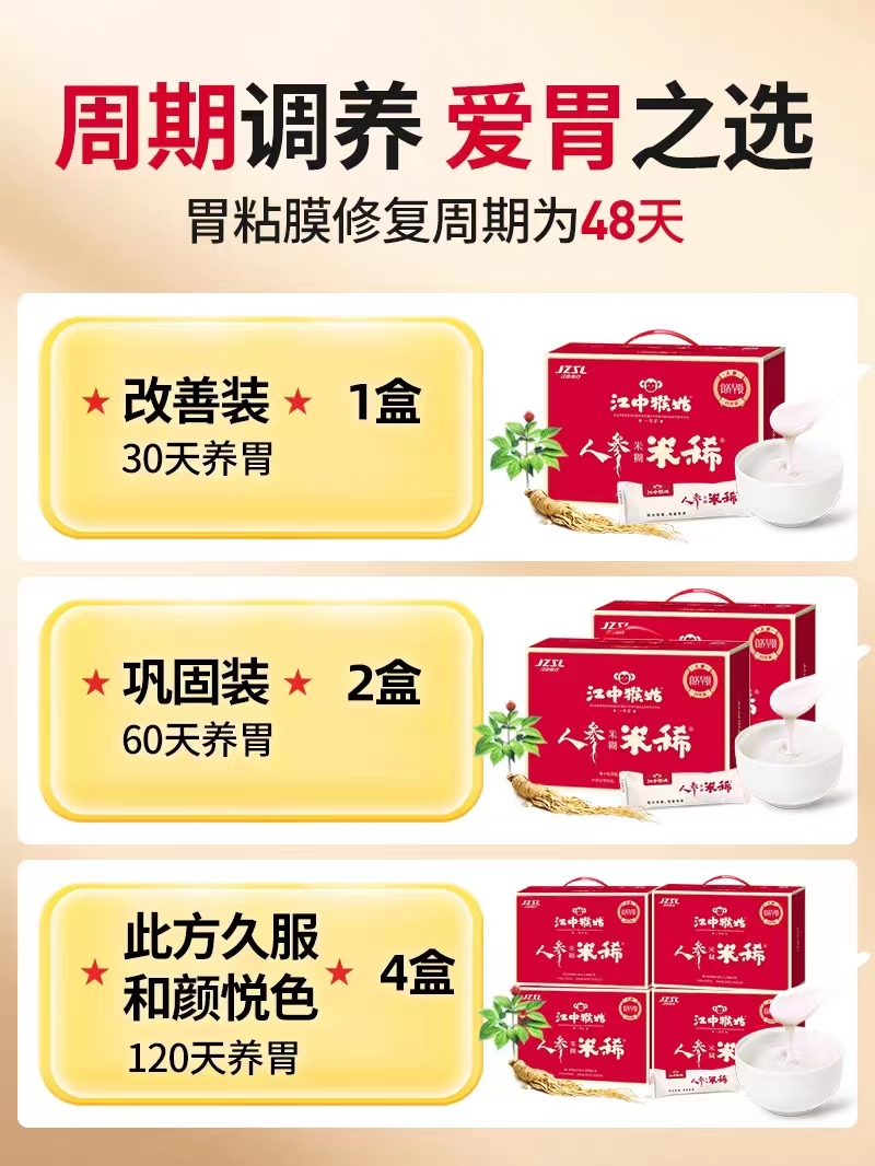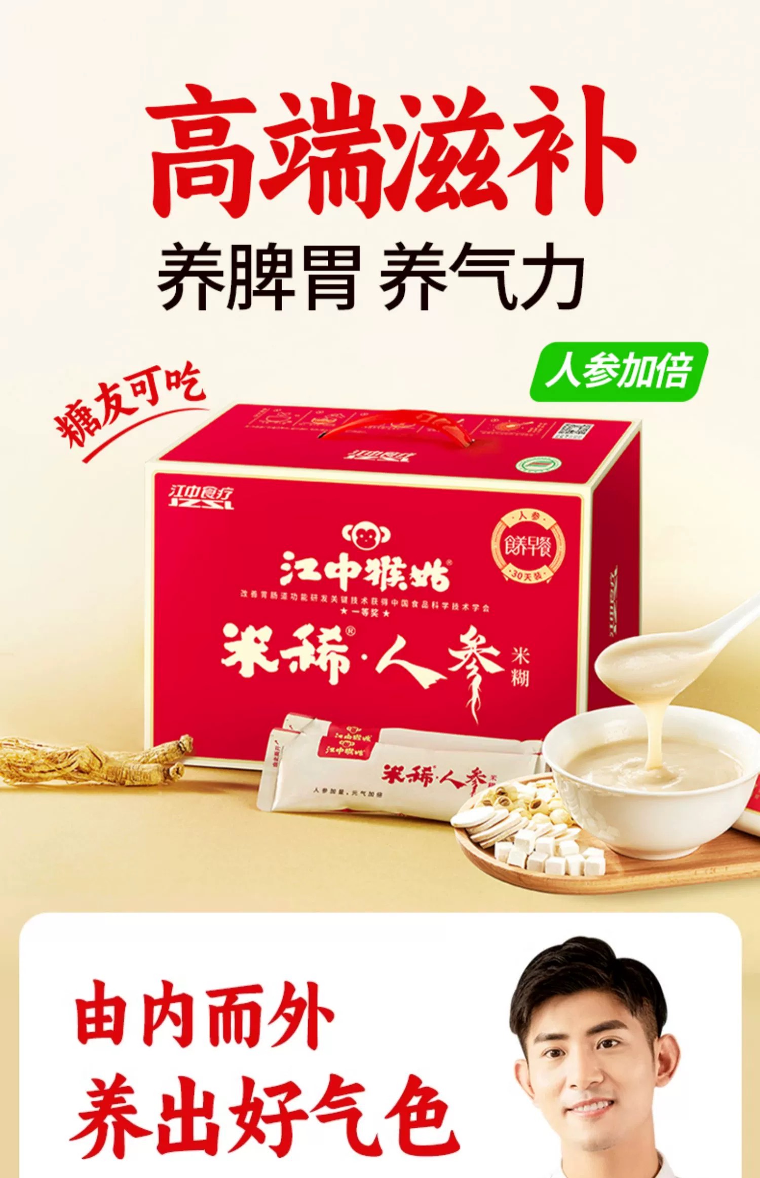 【双11 | 先充值再购物 享折上折】江中猴姑米稀·人参米糊30天装 30包/900克/盒 营养早餐 2025年9月生产/保质期12个月