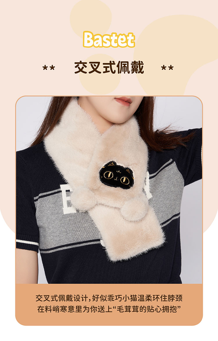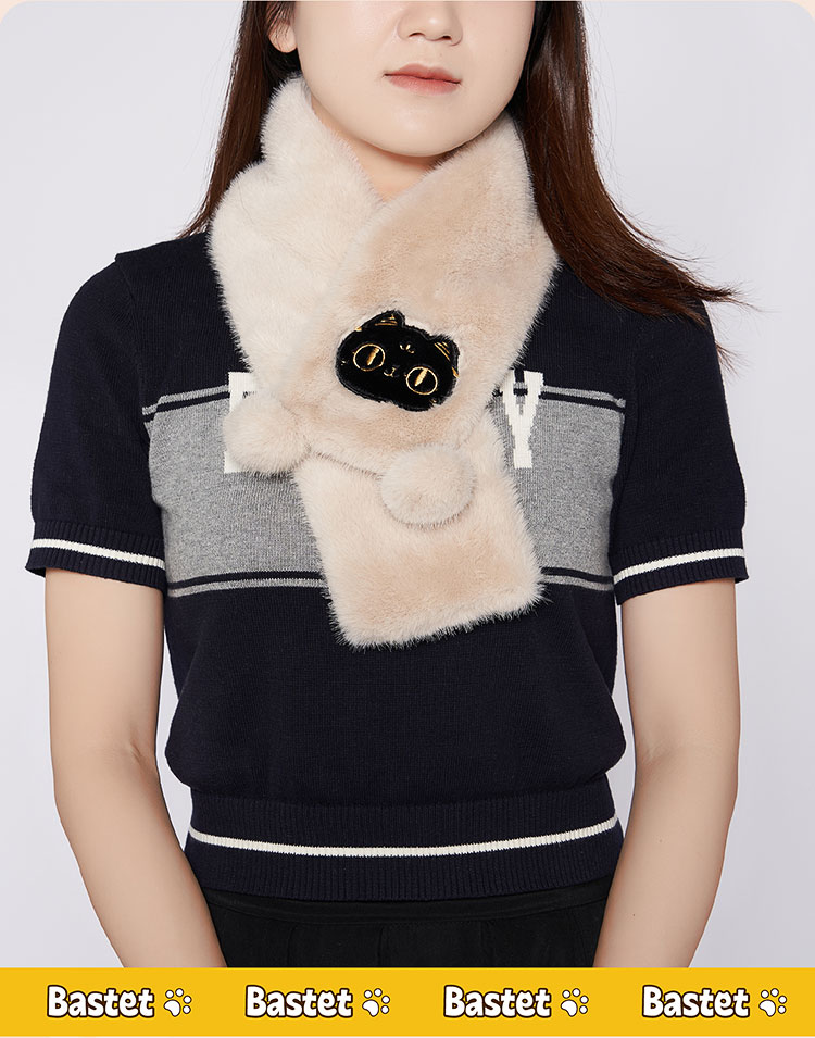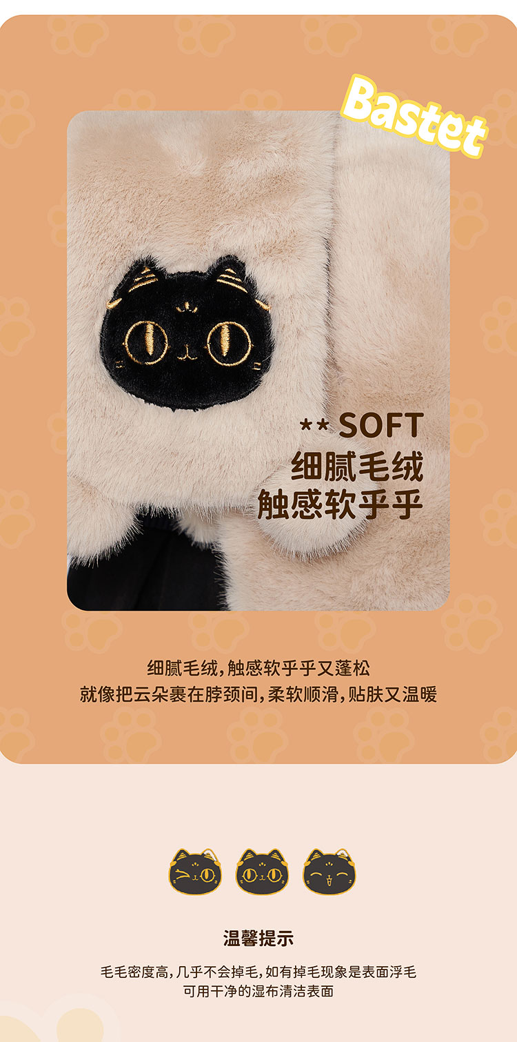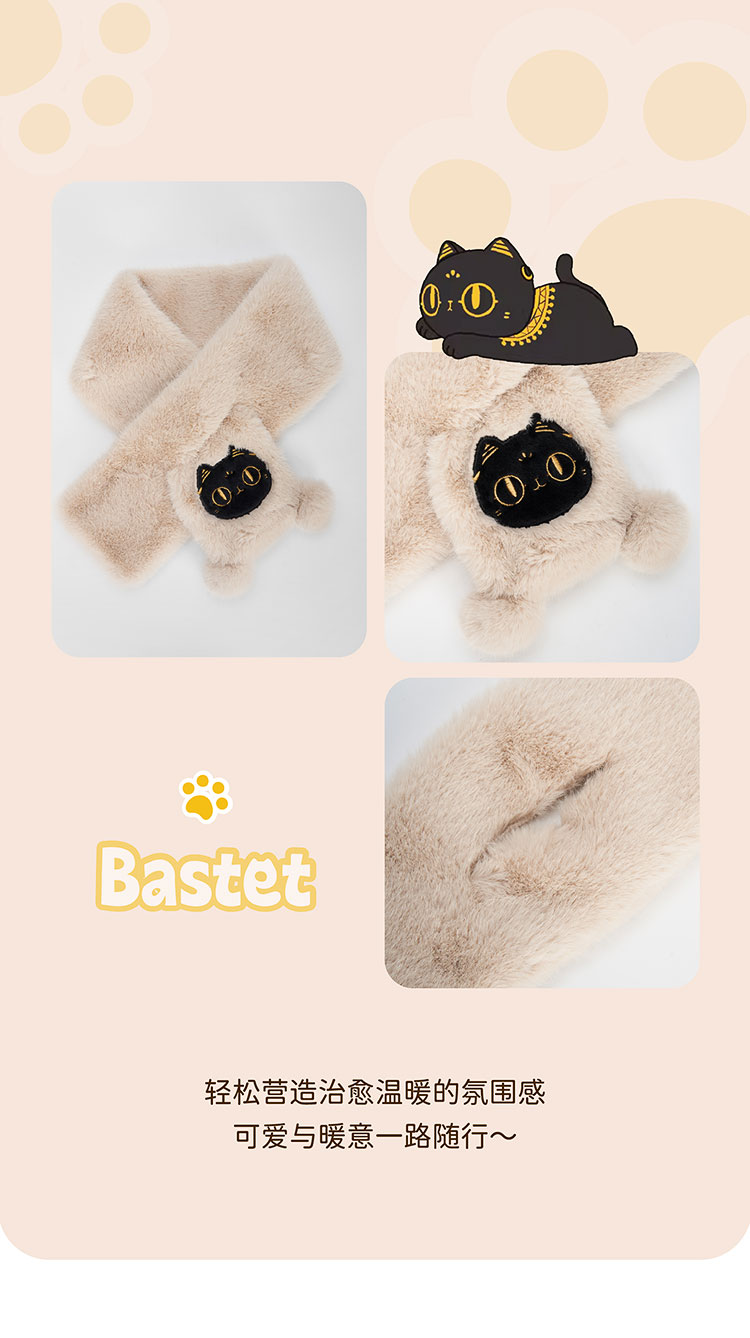 大英博物馆 盖亚·巴斯特系列 萌猫刺绣 交叉毛绒围巾