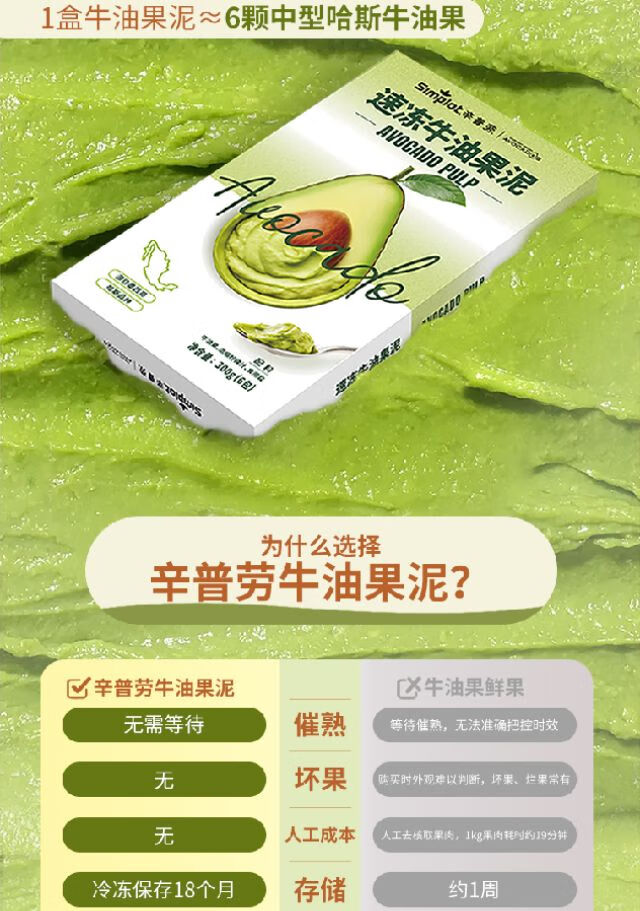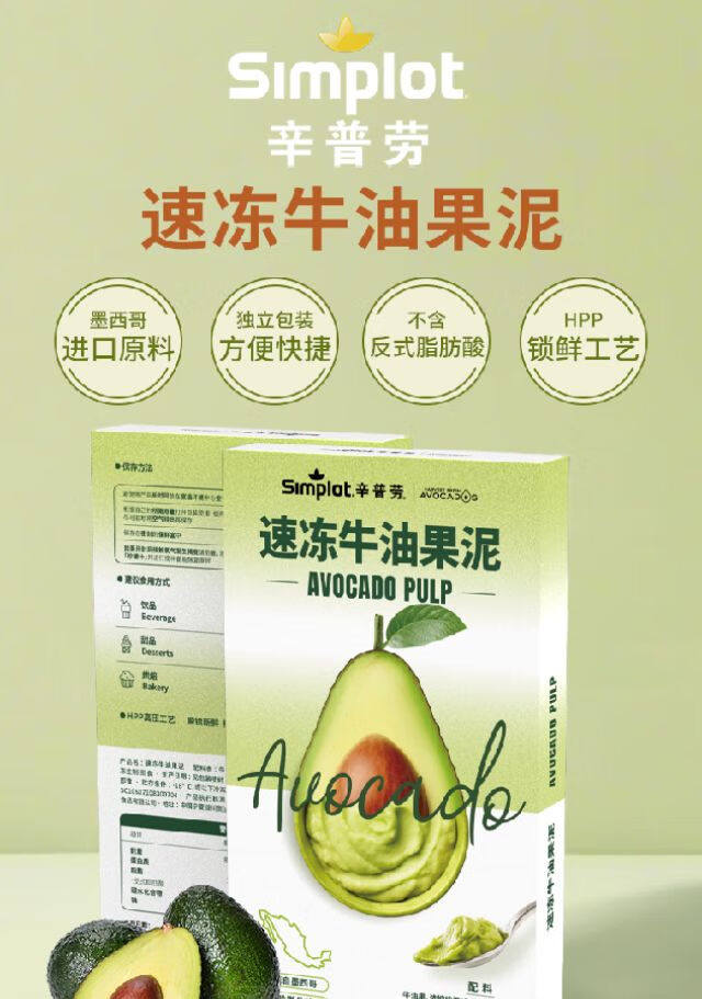 辛普劳 速冻牛油果泥300g/盒