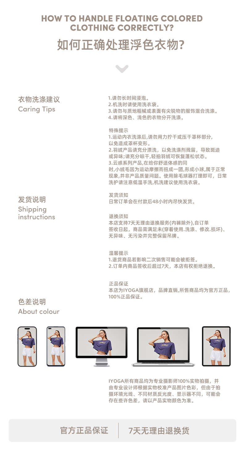 IYOGA品牌的产生源于对瑜伽以及各种运动的热爱, 并努力把瑜伽运动的理念,融入于服装的每一个细节与每一个工艺之中。我们的设计结合了瑜伽运动,休闲时尚,健身跑步等因素,让服装对运动起到良好的保护。
