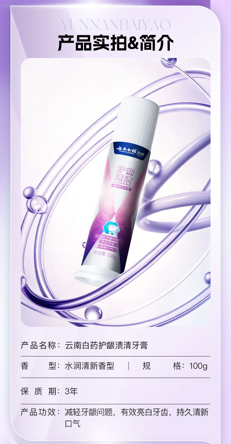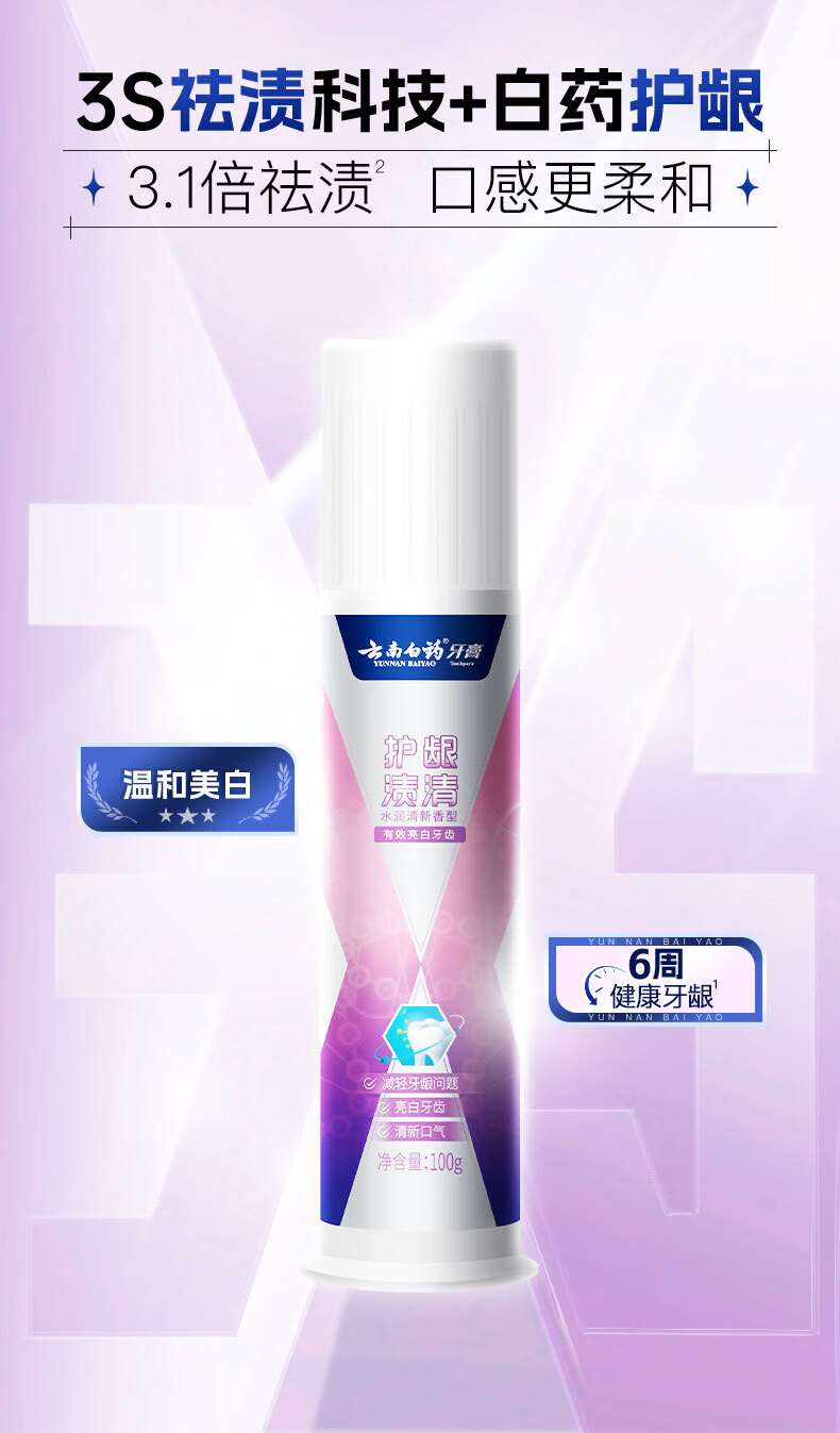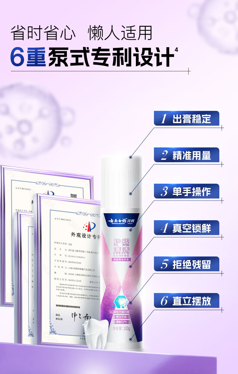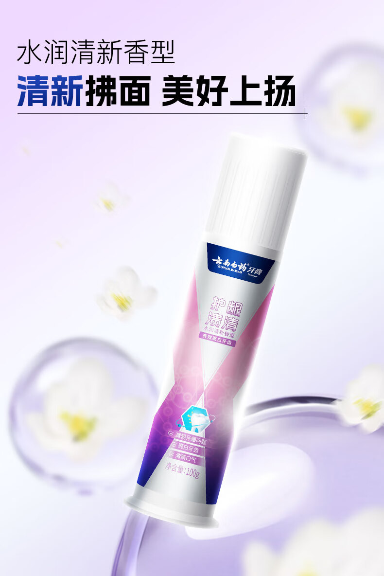 【官方正品】云南白药牙膏护龈渍清泵式直立牙膏祛渍美白减轻牙龈问题水润清新100g