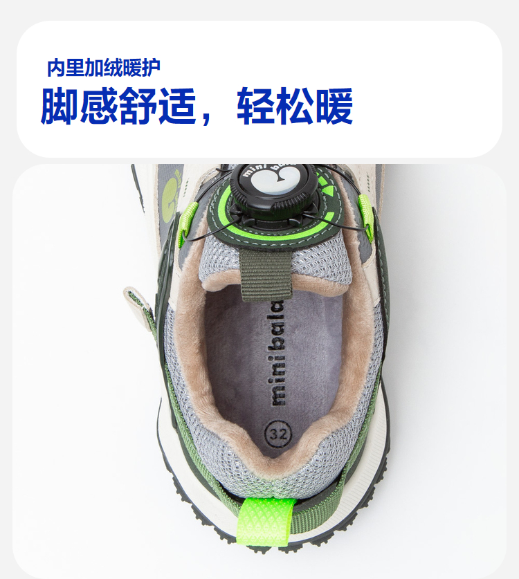 迷你巴拉加绒运动鞋男女童防湿滑防踢撞橡胶底免系带鞋子