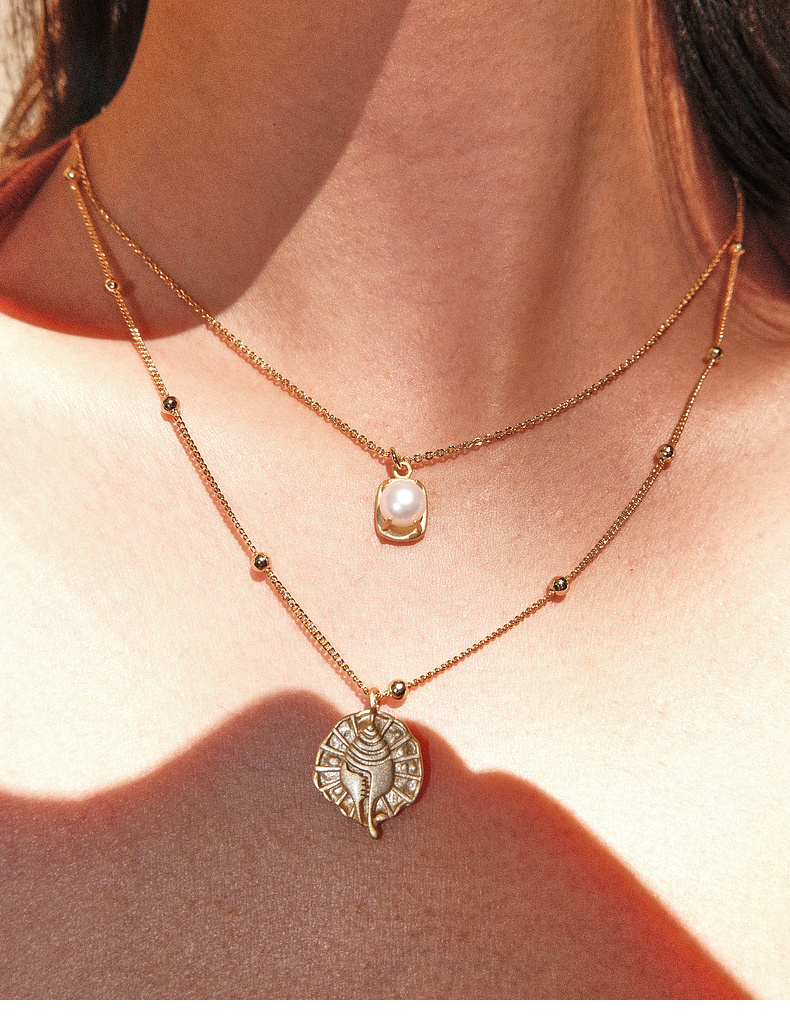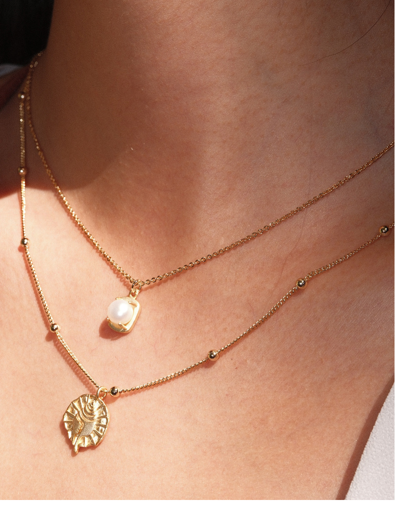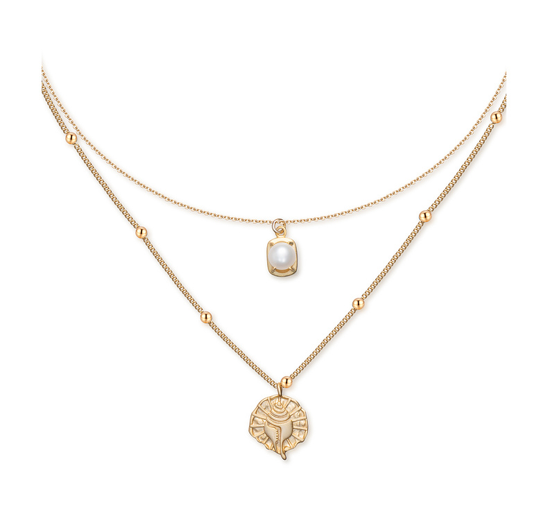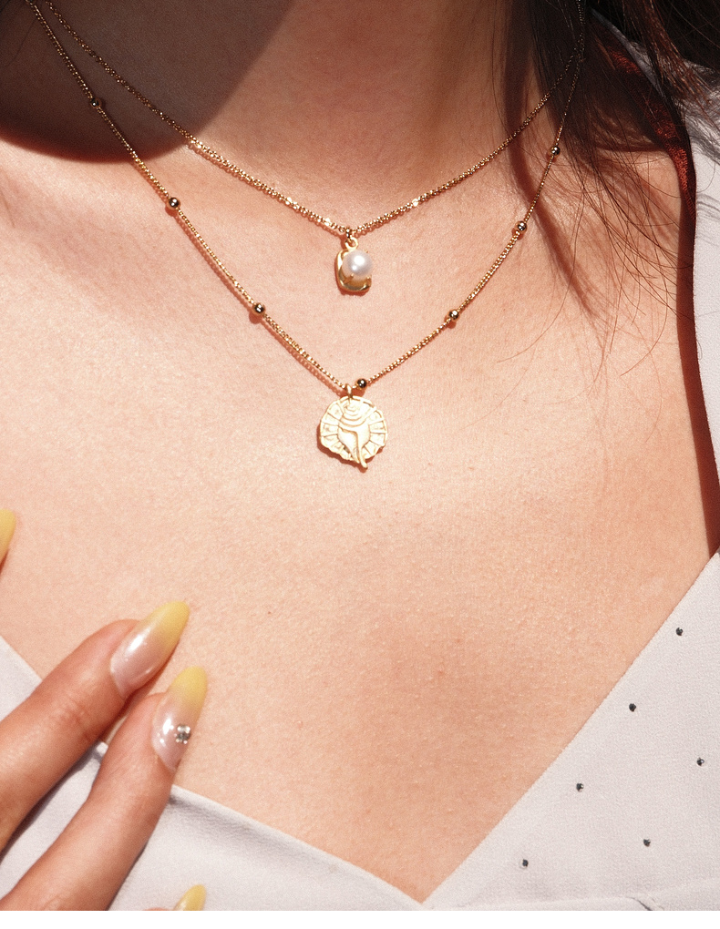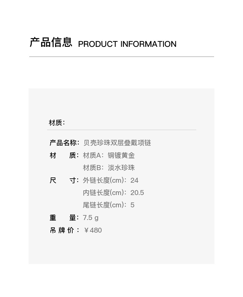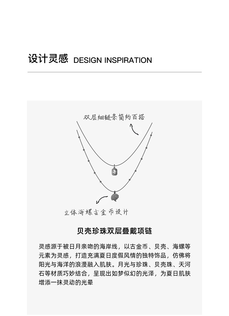 lost in echo2025夏季新款度假高级简约立体贝壳珍珠双层叠戴项链