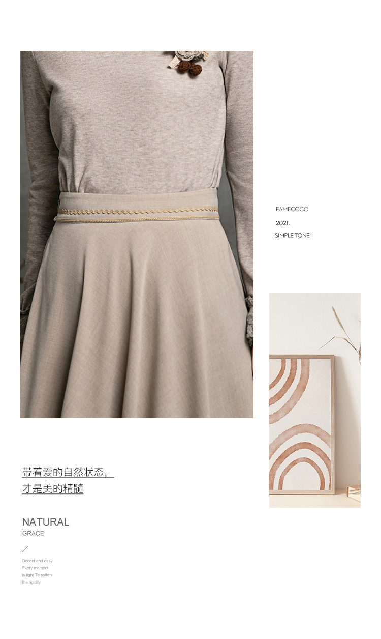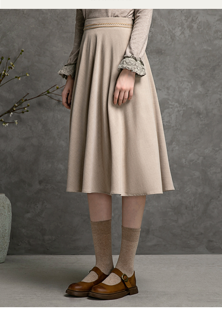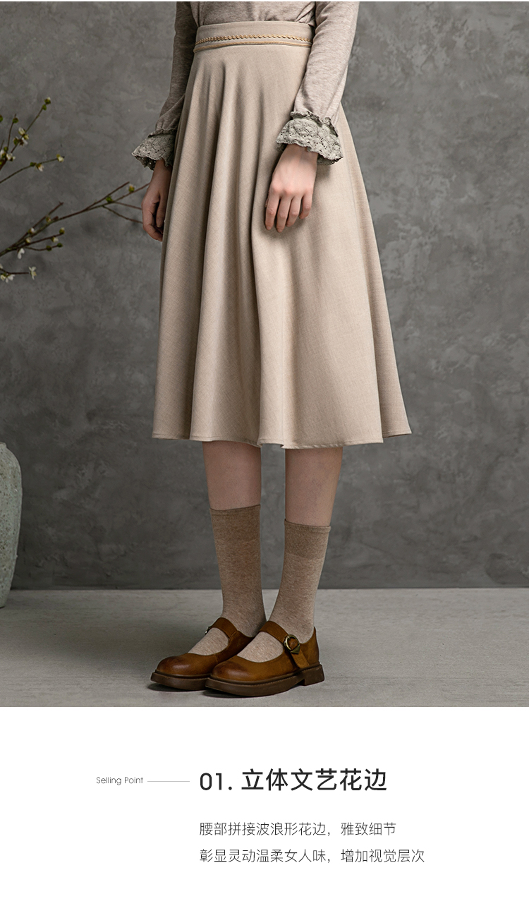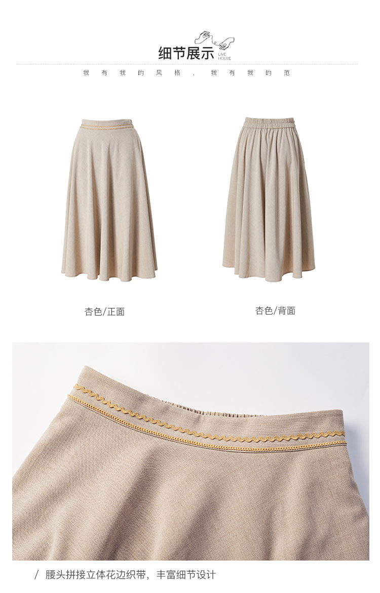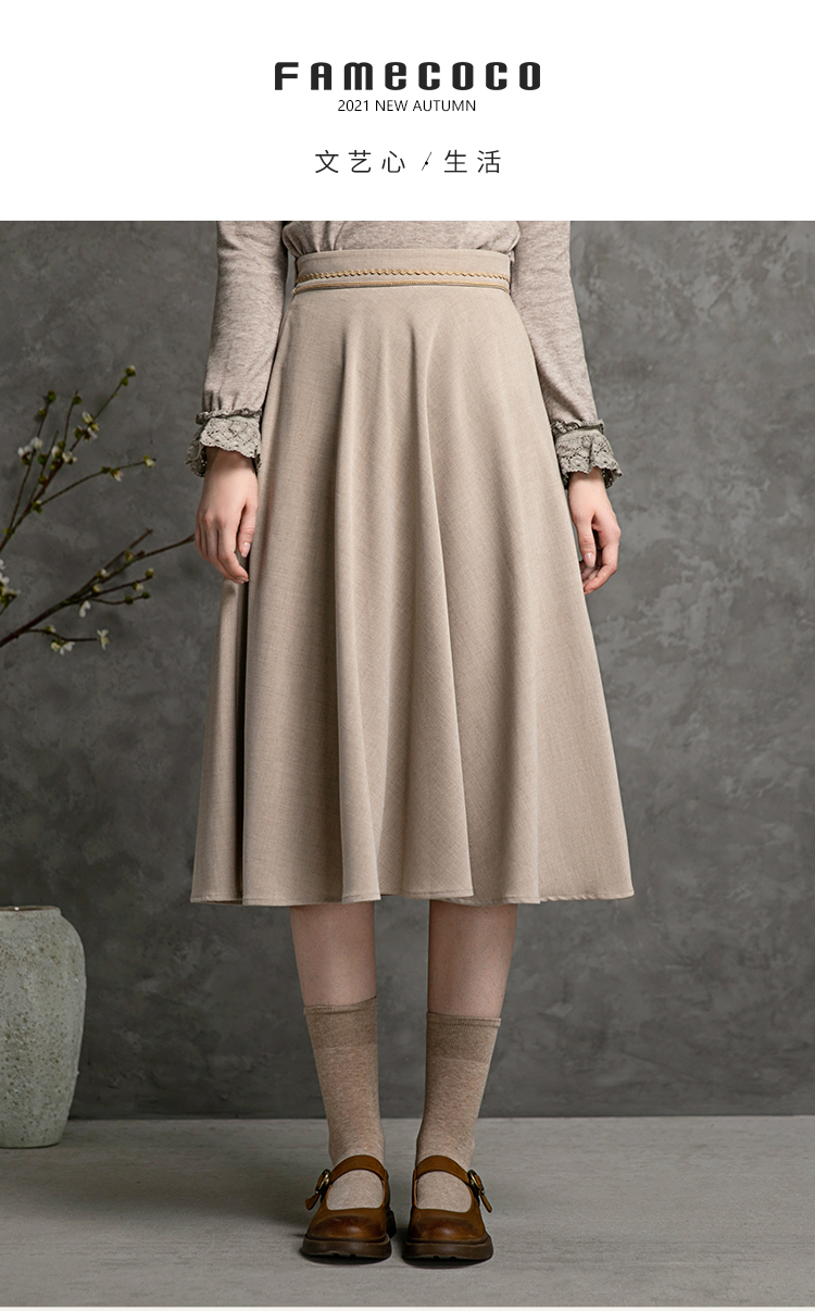 famecoco范可儿秋季显瘦花边半身裙女纯色中长款a字半裙DAB6HA003