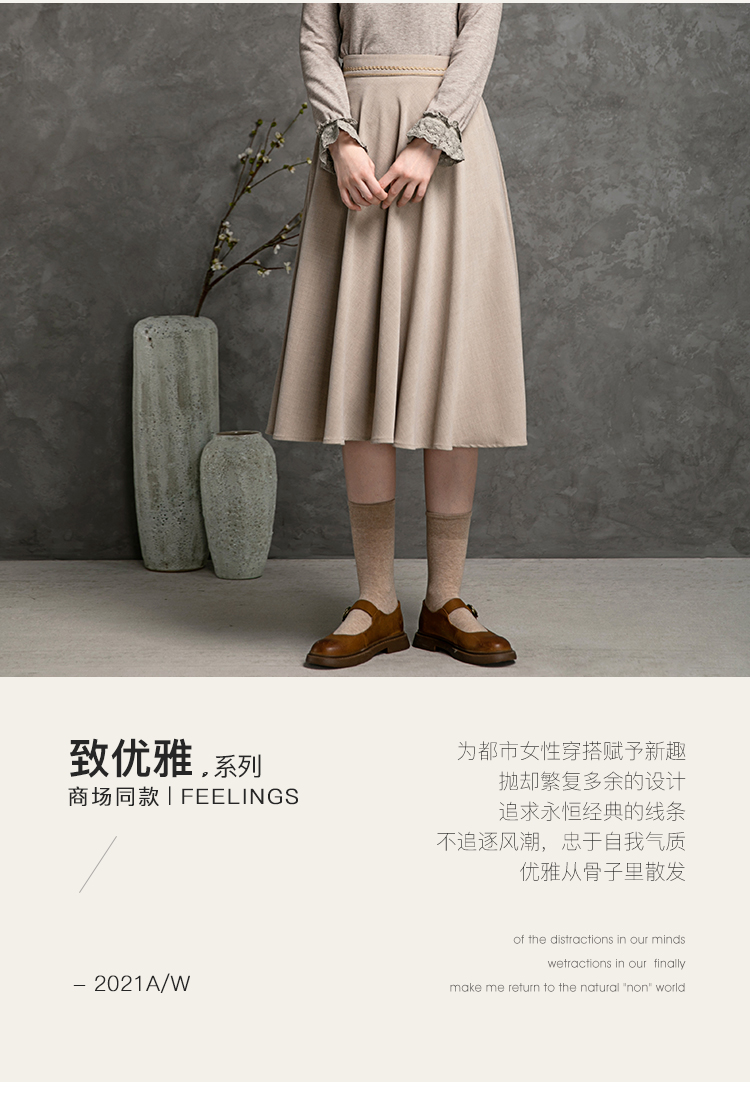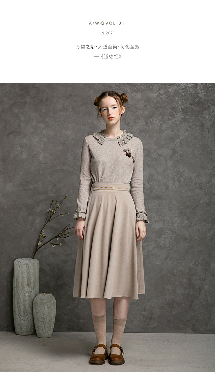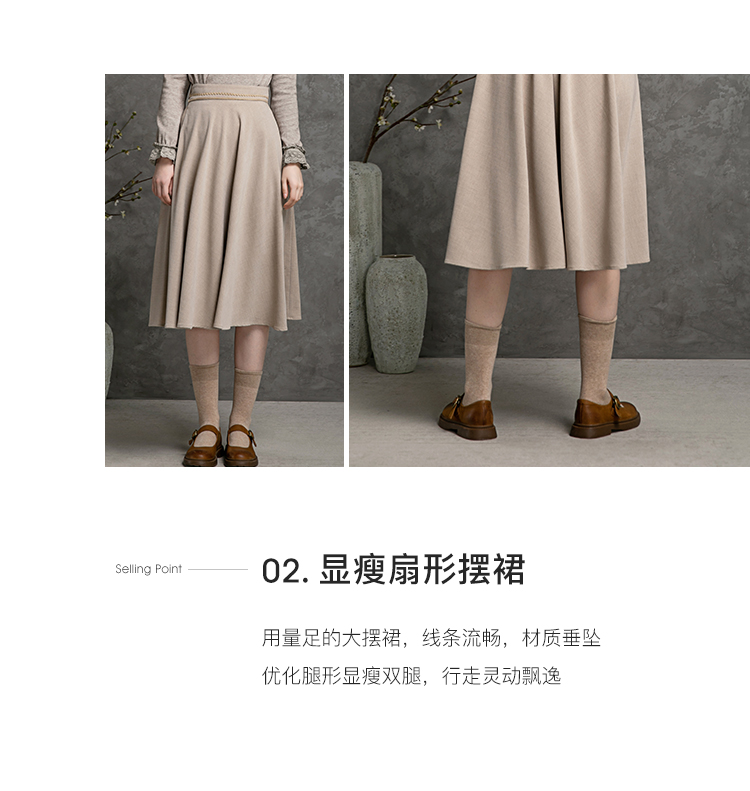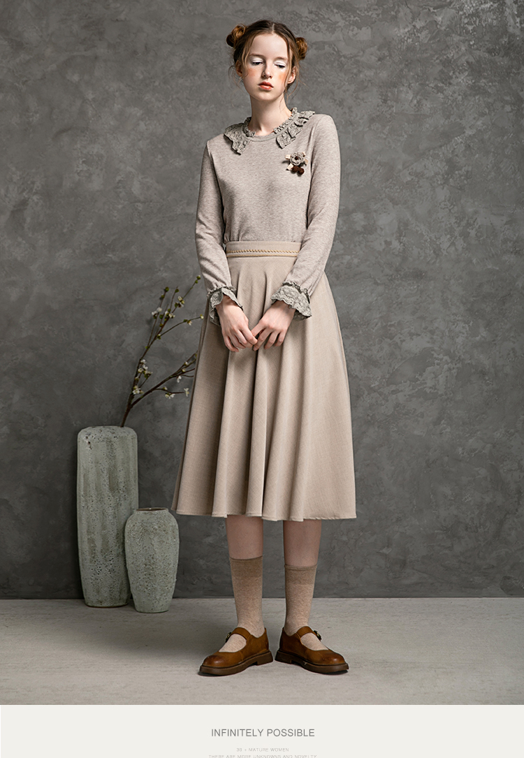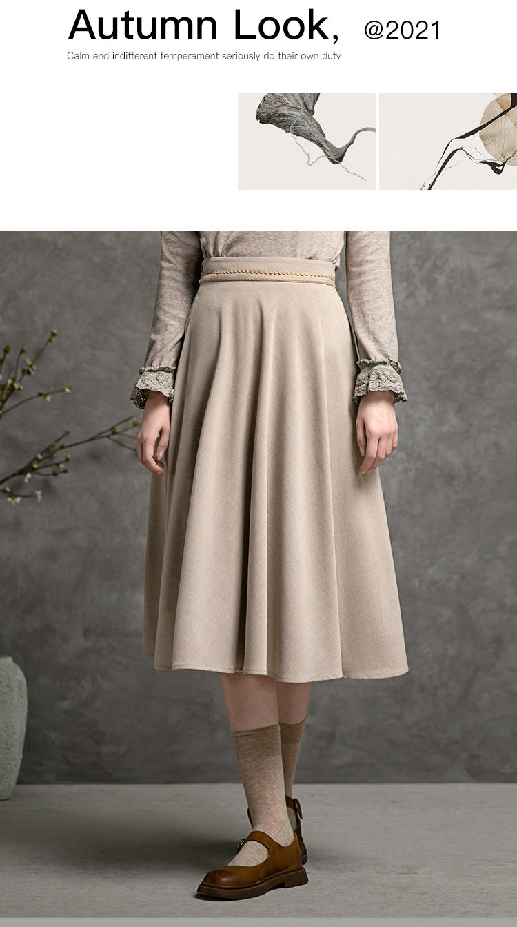 famecoco范可儿秋季显瘦花边半身裙女纯色中长款a字半裙DAB6HA003